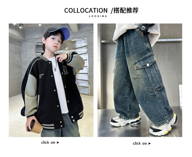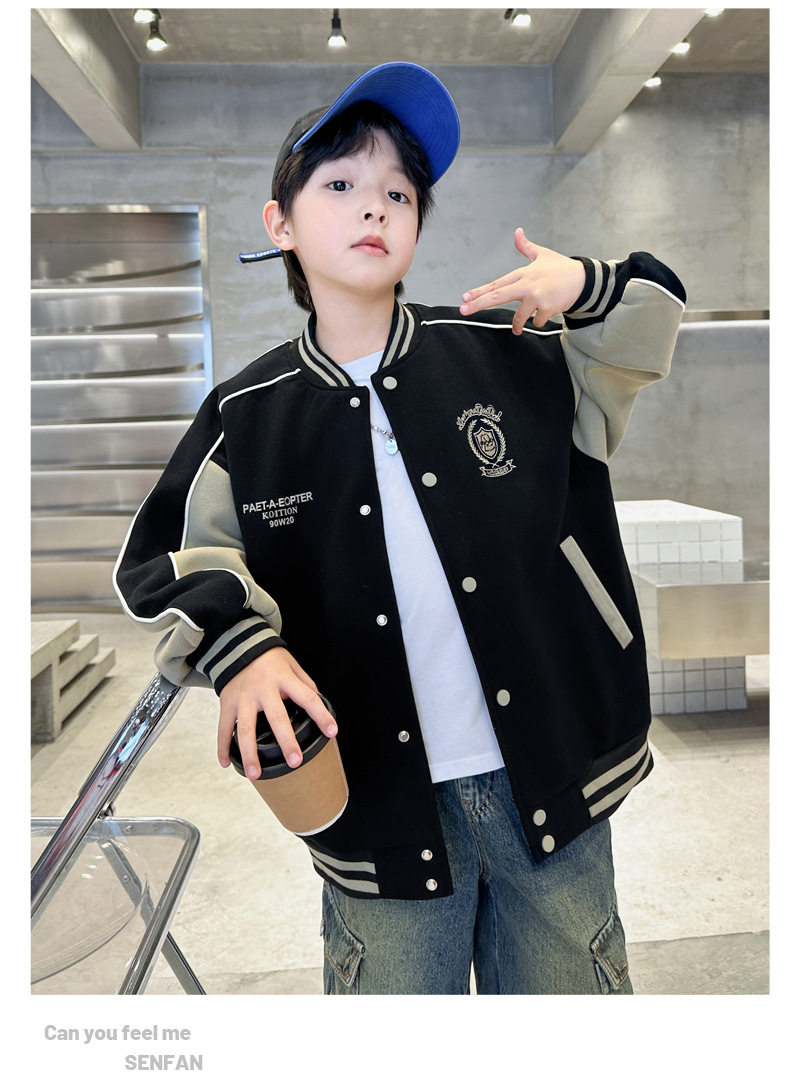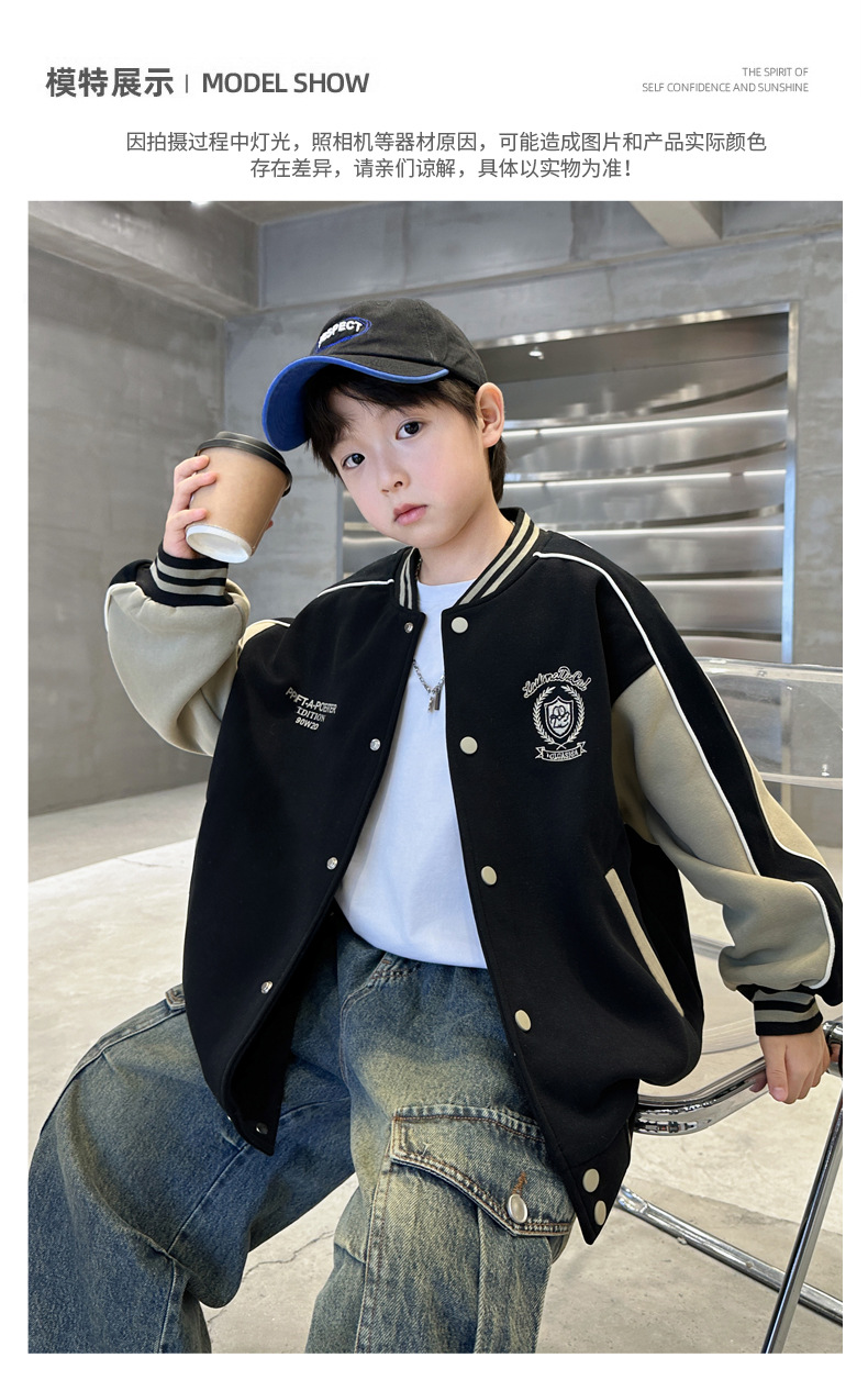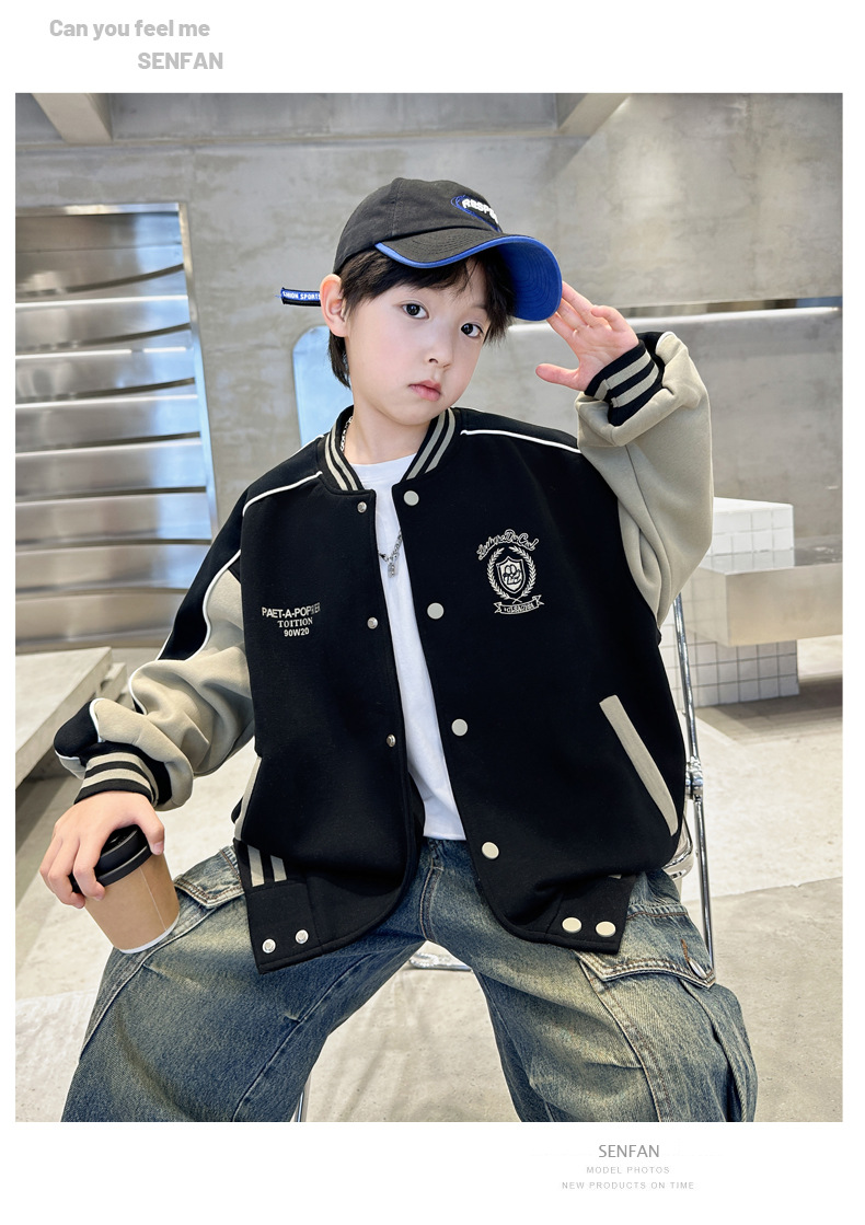 어린이 코트 2024 년 봄과 가을 새로운 도착 중다 소년의 세련된 소년 가을 야구 세트 가을 재킷스토어 가기