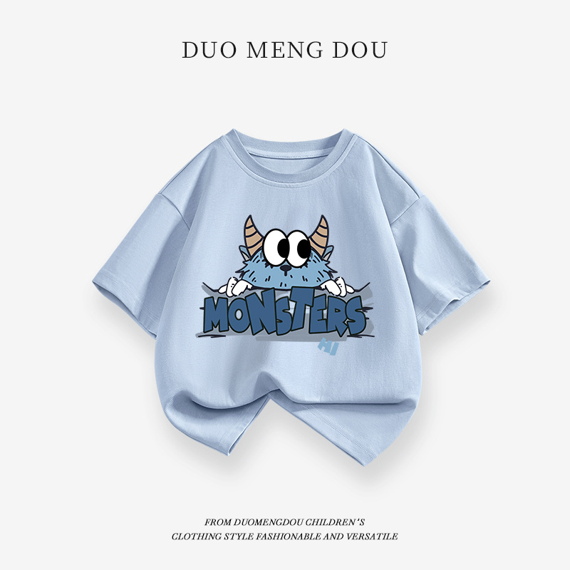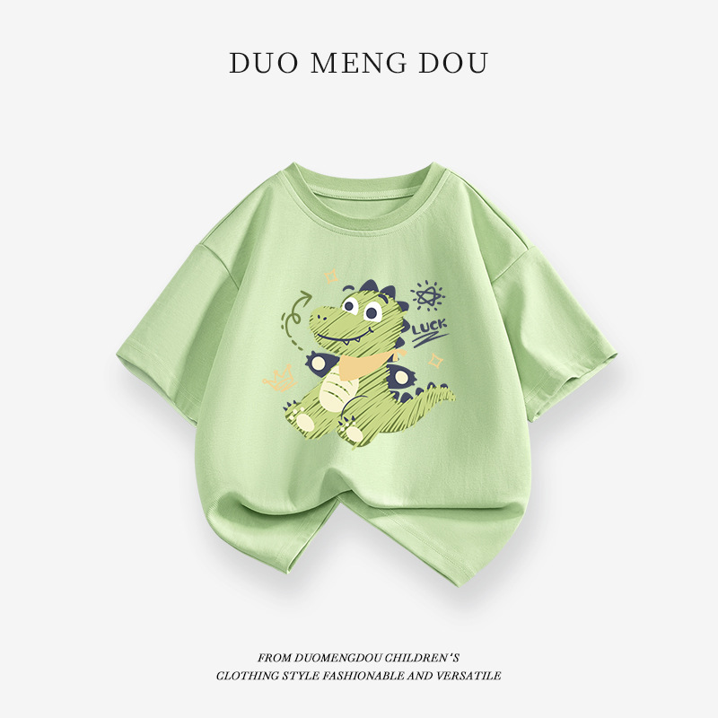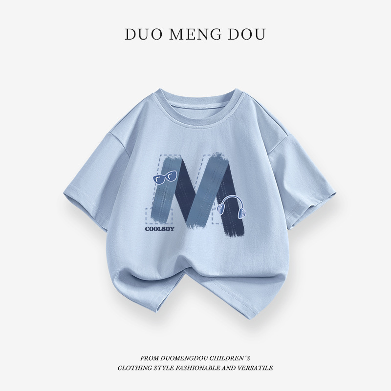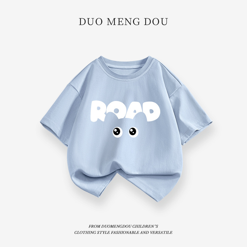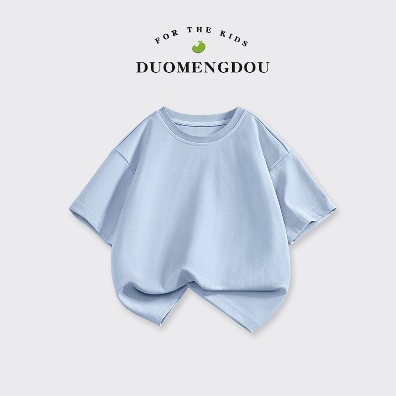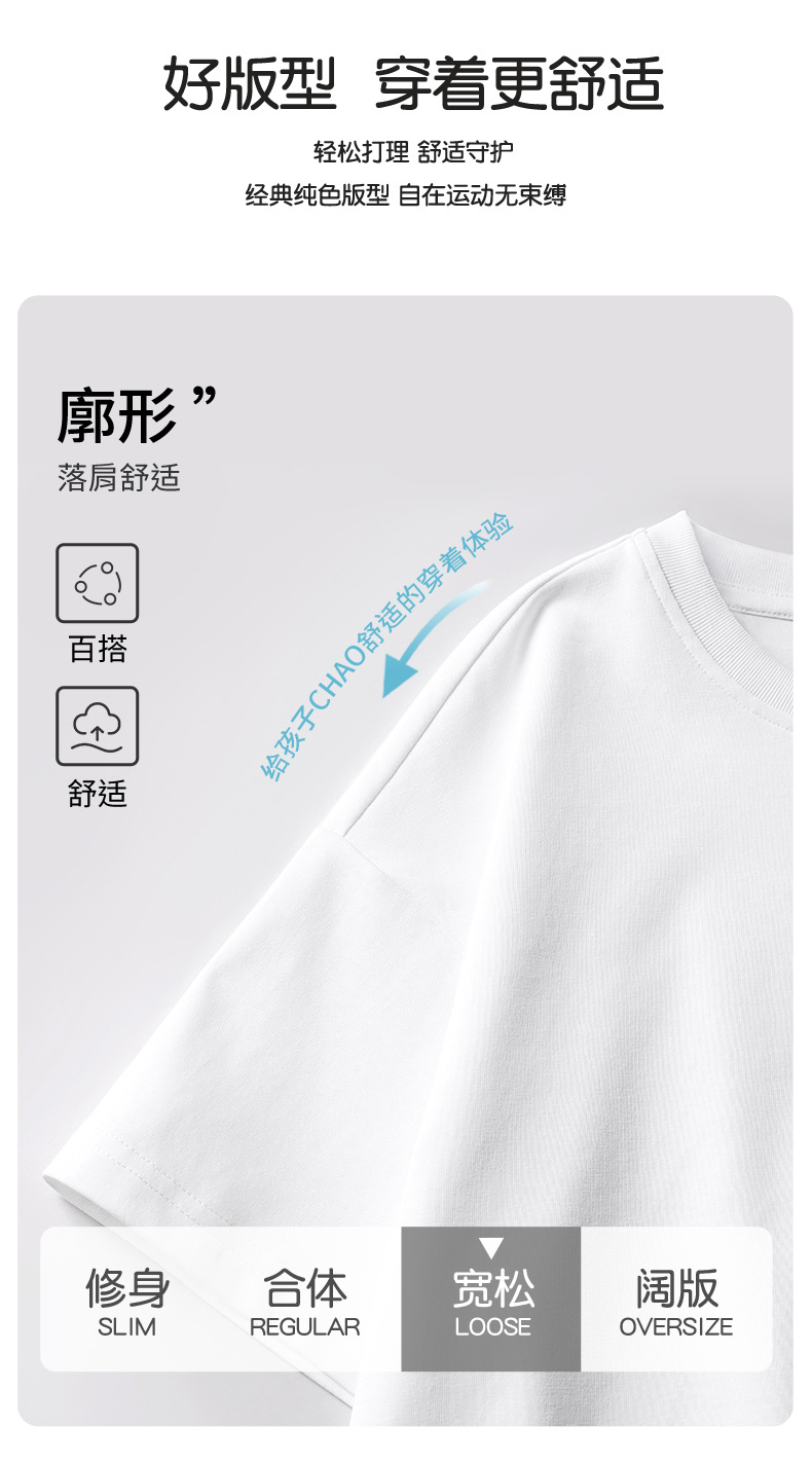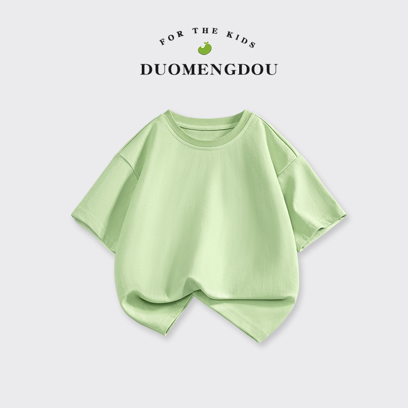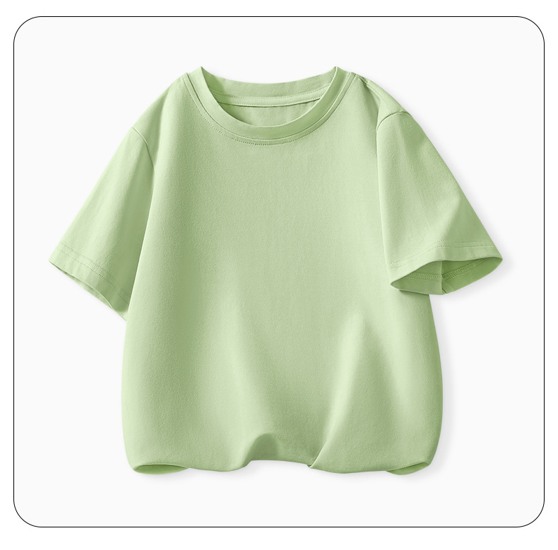 남학생 삼방형 반팔 티셔츠 어린이 단색 크루 넥 탑 큰 어린이 루즈베이스 셔츠 소녀 의류 여름스토어 가기