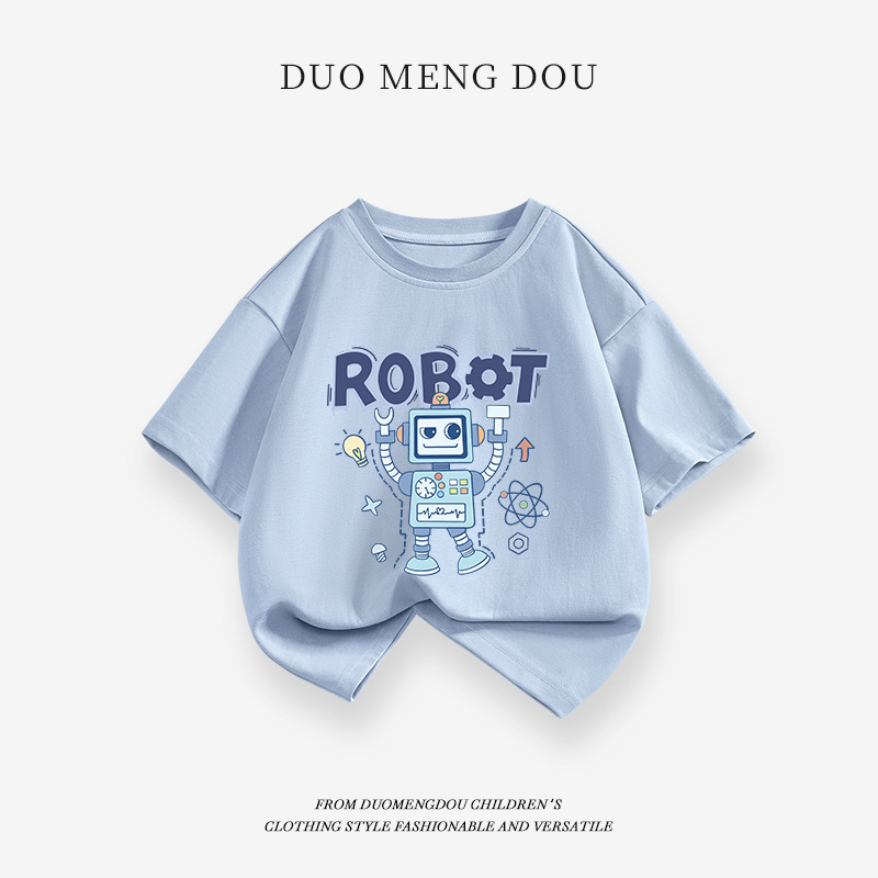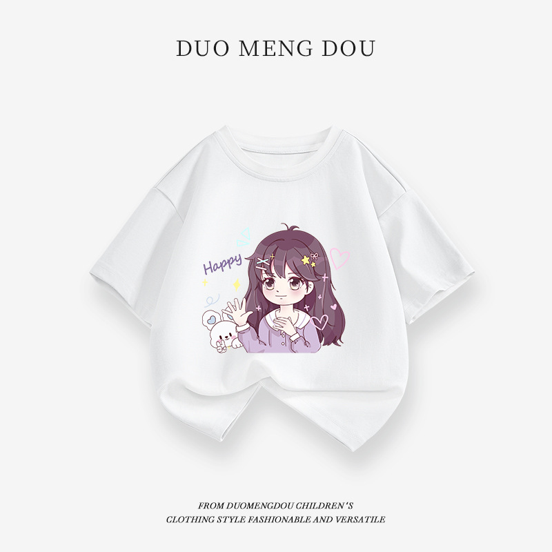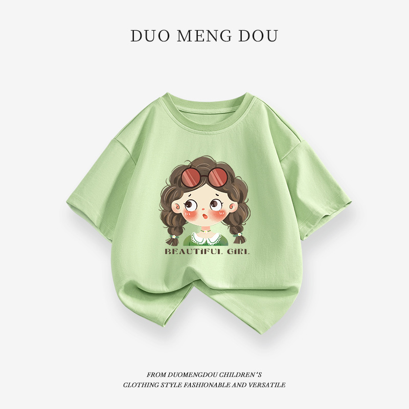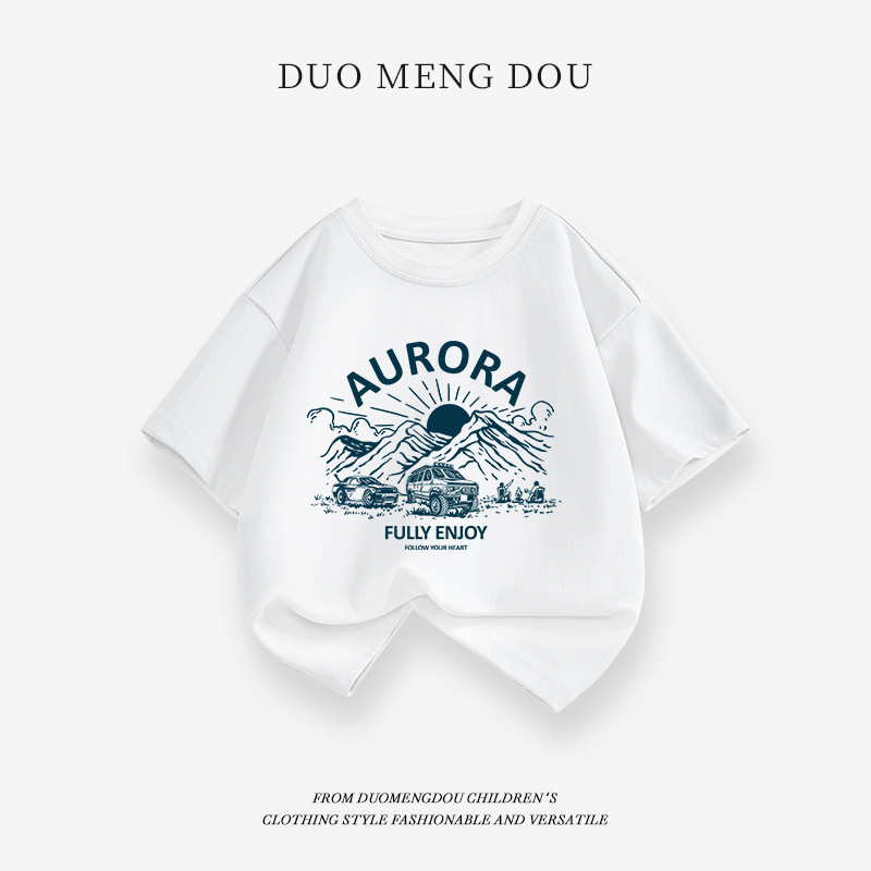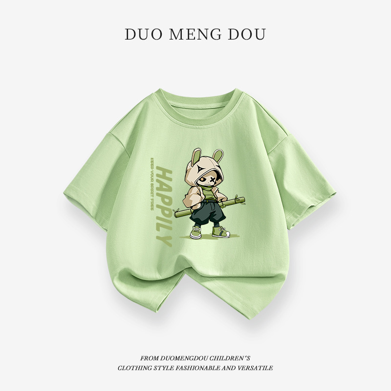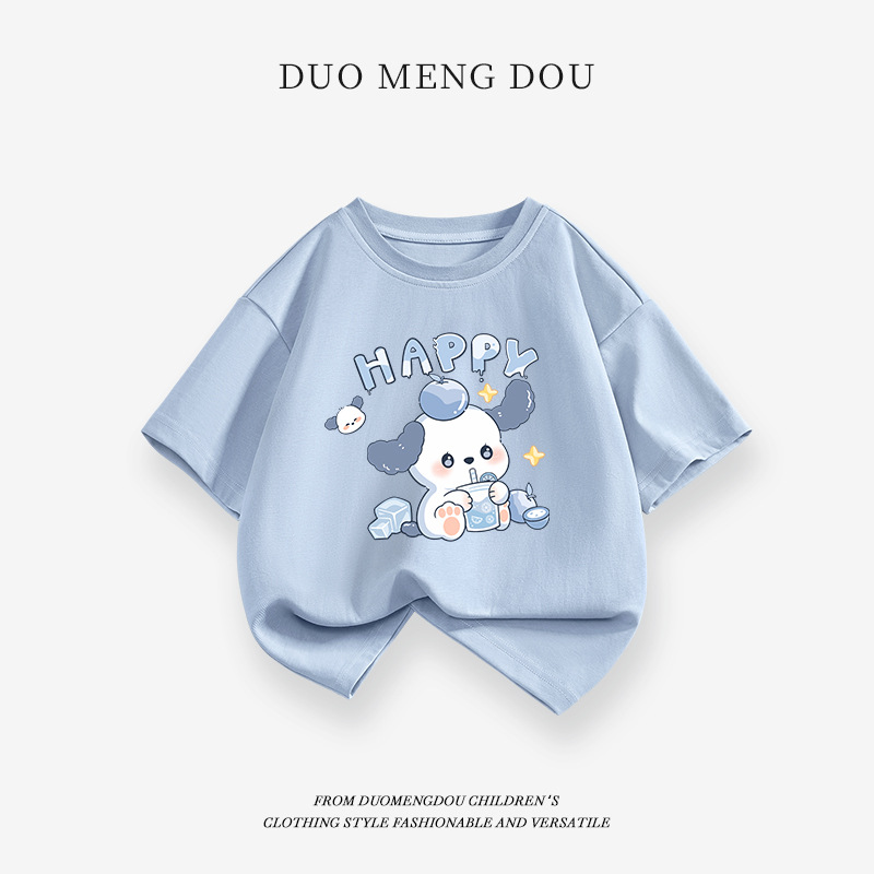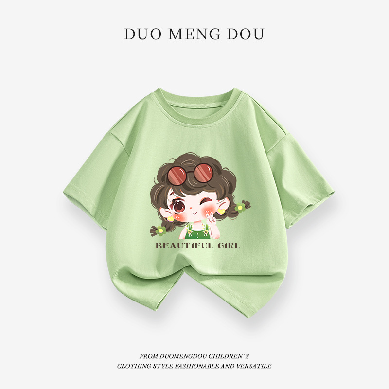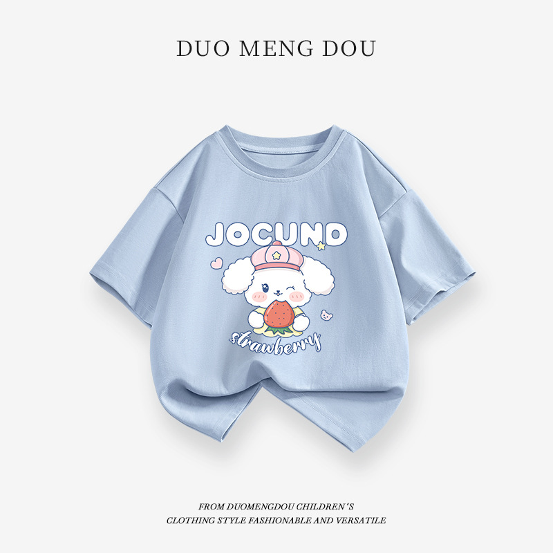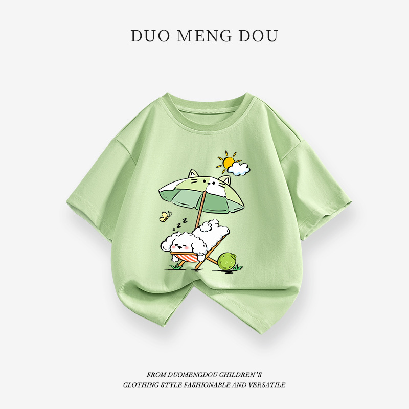 남학생 삼방형 반팔 티셔츠 어린이 단색 크루 넥 탑 큰 어린이 루즈베이스 셔츠 소녀 의류 여름스토어 가기