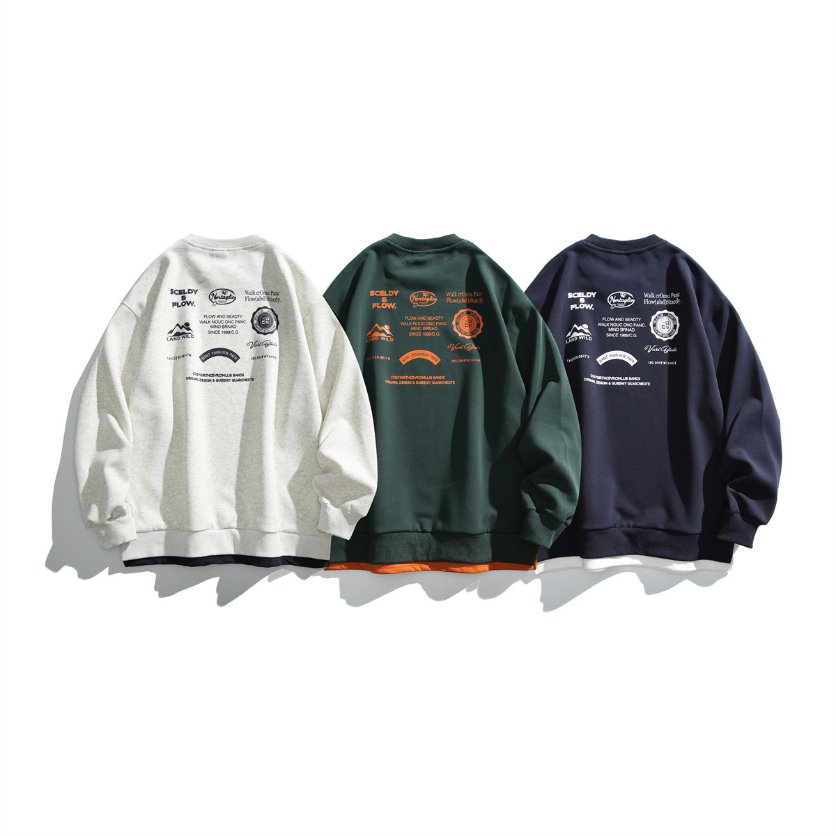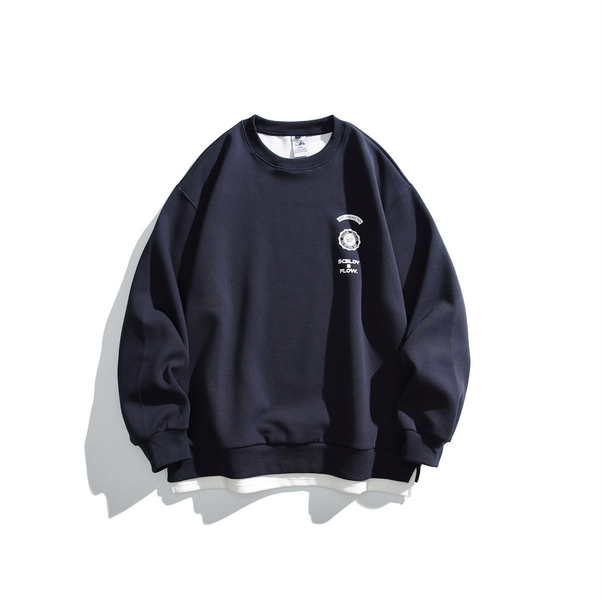 일본 패션 브랜드 2024 가을 새로운 빈티지 프린트 크루 넥 스웨터 남성 가짜 2 피스 풀오버스토어 가기