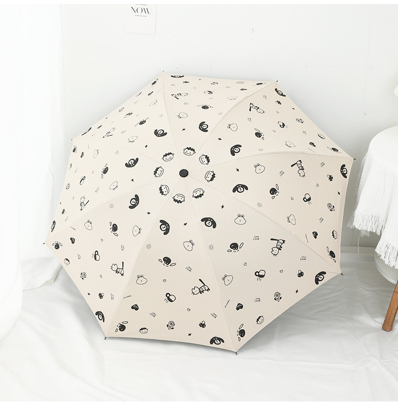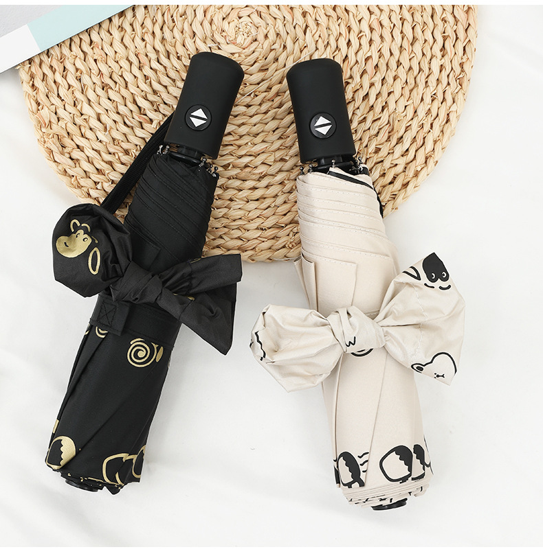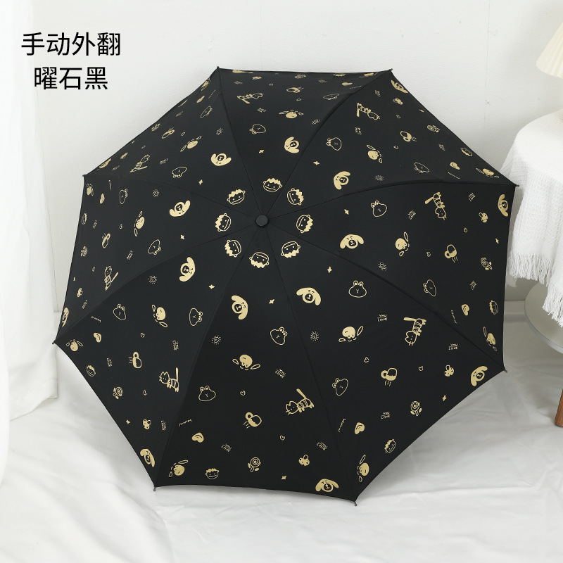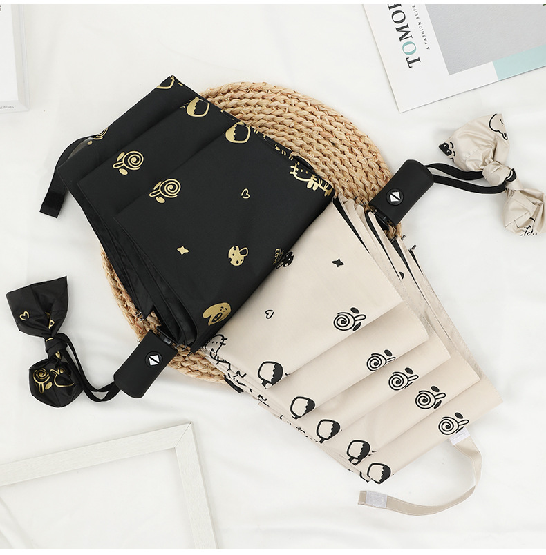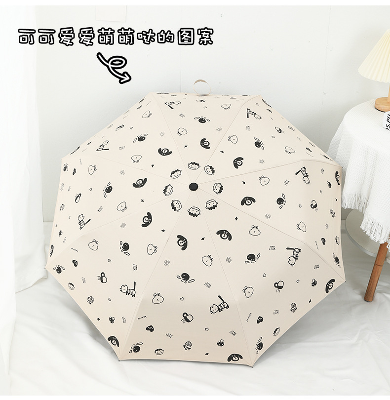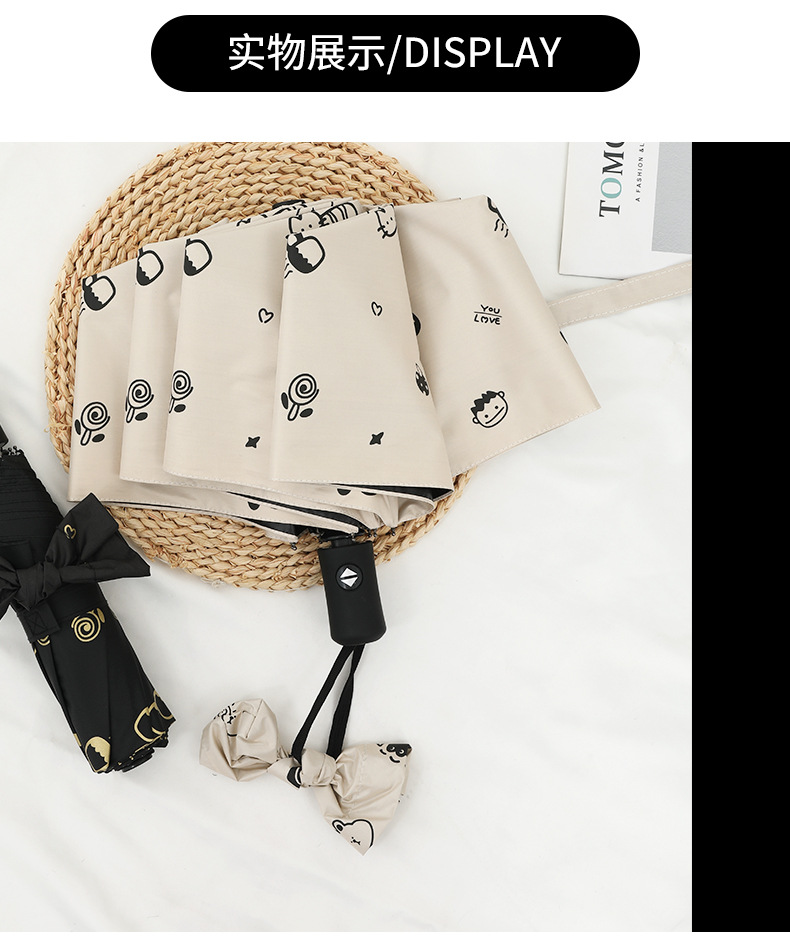 도매 우산 여성의 안티-UV 태양 우산 햇살 우산 접히는 우산 작은 신선한 검은 접착제 만화 맑은 비 우산스토어 가기