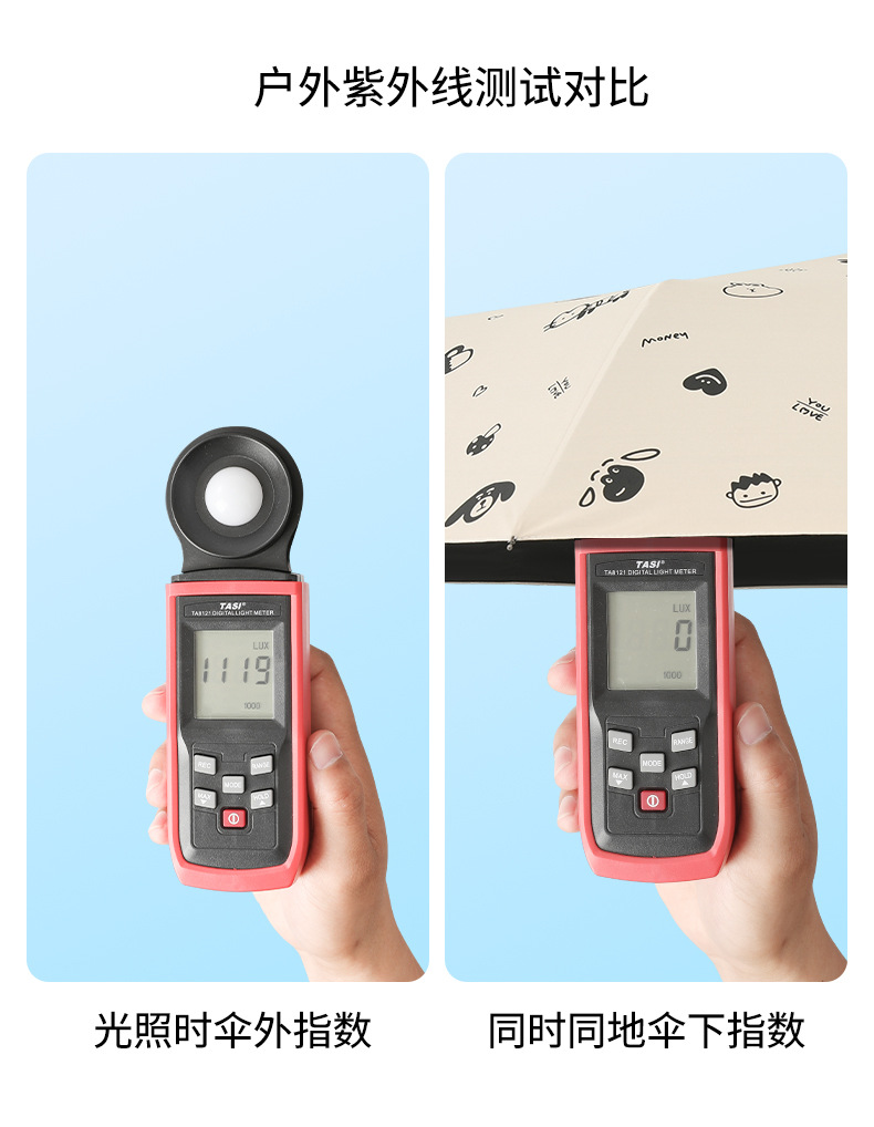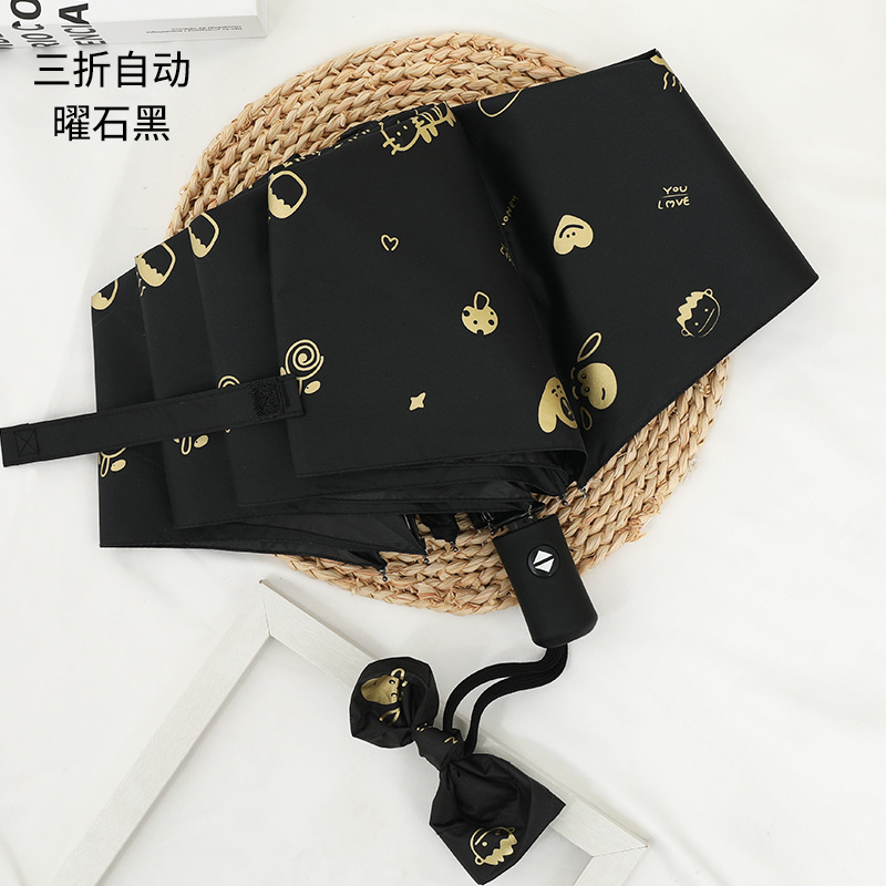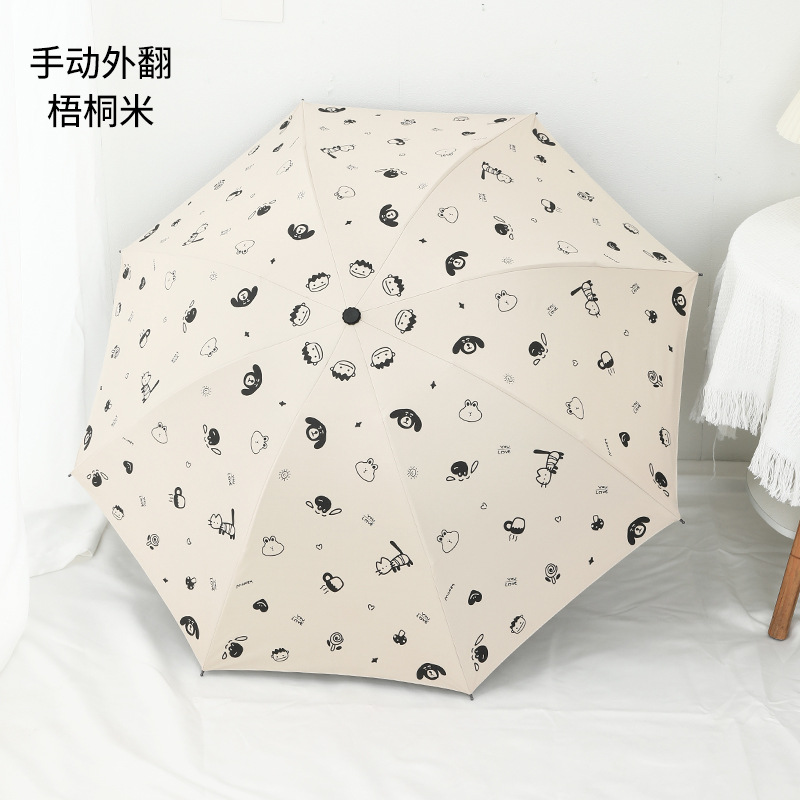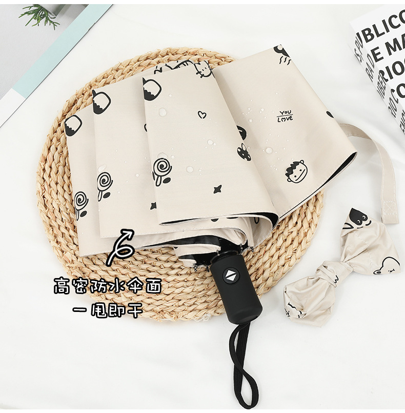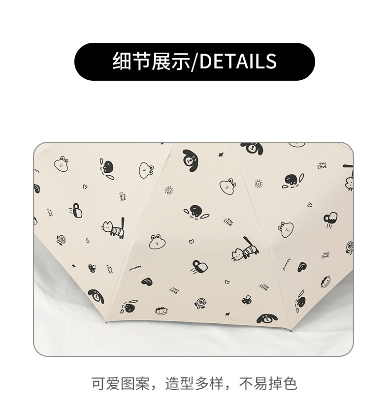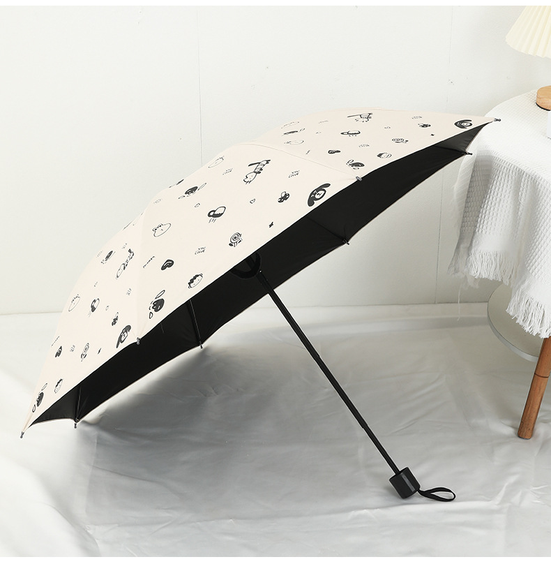도매 우산 여성의 안티-UV 태양 우산 햇살 우산 접히는 우산 작은 신선한 검은 접착제 만화 맑은 비 우산스토어 가기