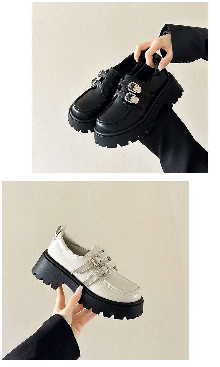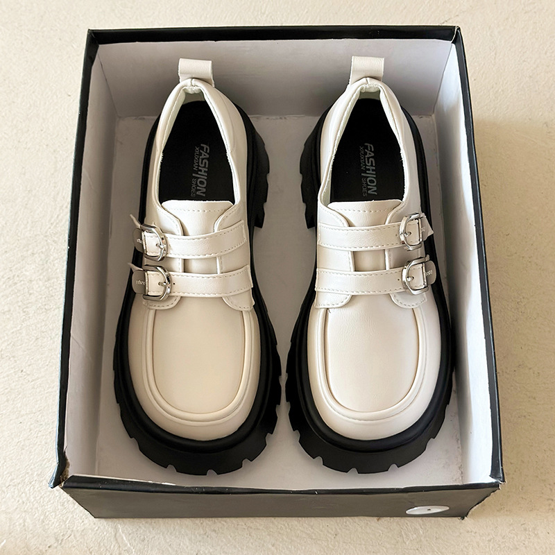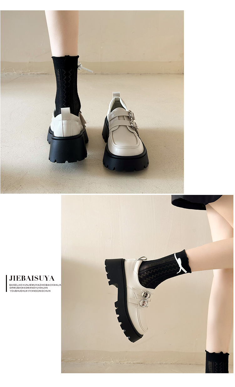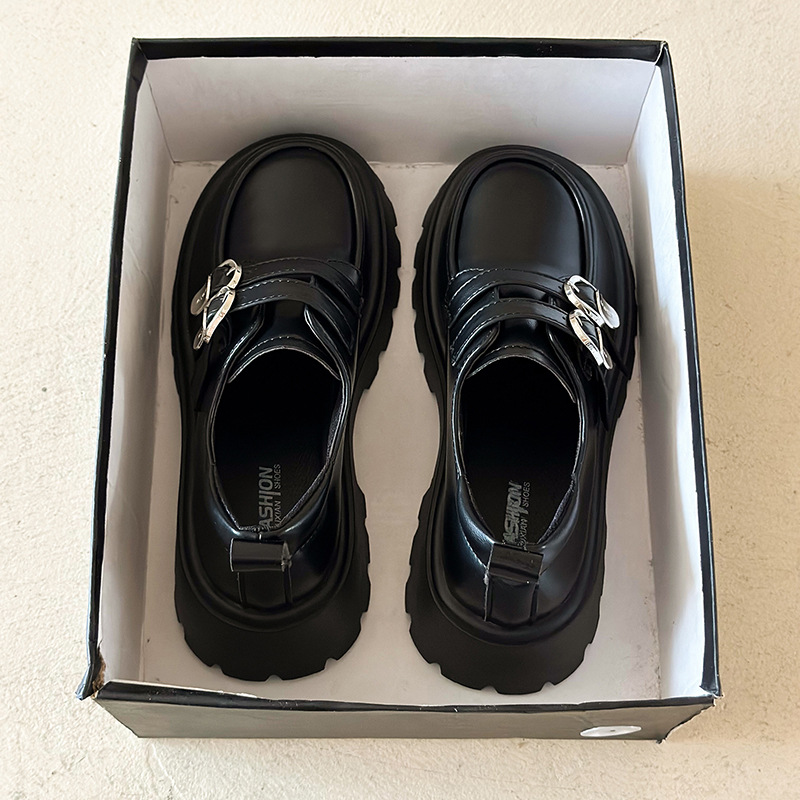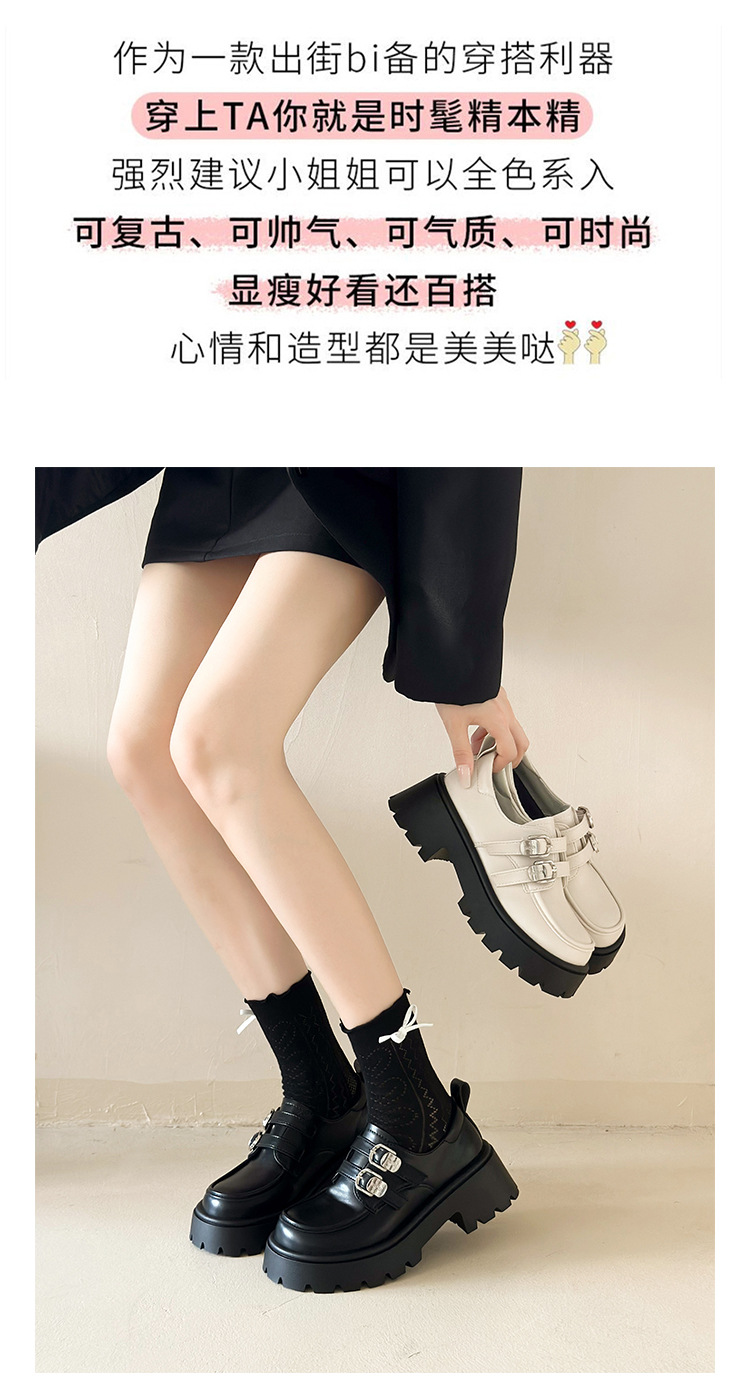 프랑스 스타일 두꺼운 하이힐 블랙 가죽 신발 여성 가을 2024 새로운 스타일 작은 높이 증가 두꺼운 바닥 올 매치 로퍼스토어 가기