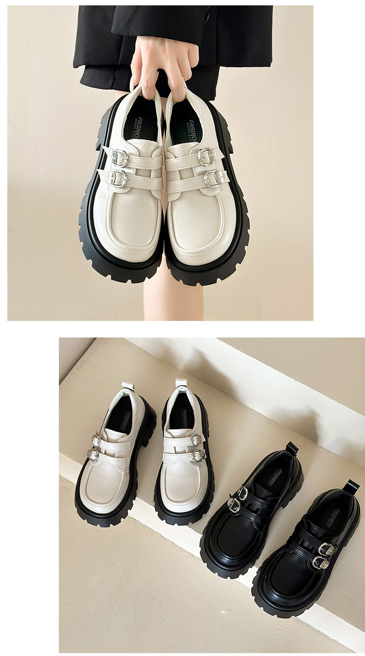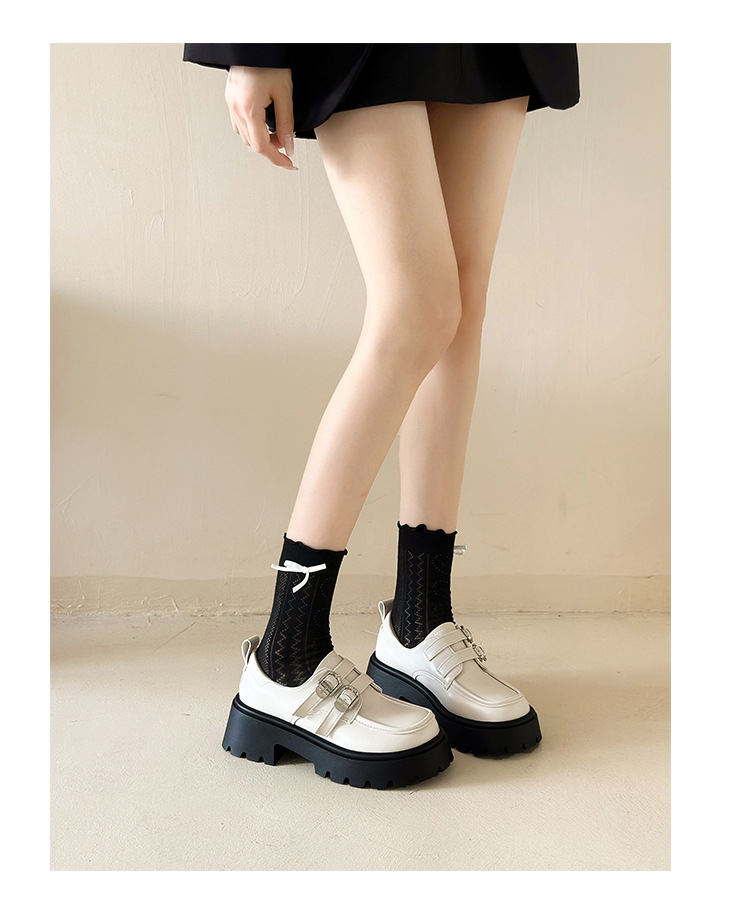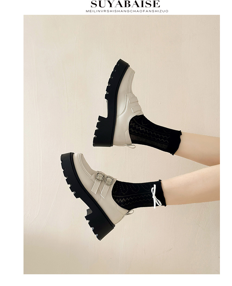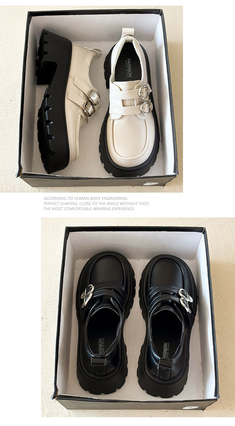 프랑스 스타일 두꺼운 하이힐 블랙 가죽 신발 여성 가을 2024 새로운 스타일 작은 높이 증가 두꺼운 바닥 올 매치 로퍼스토어 가기