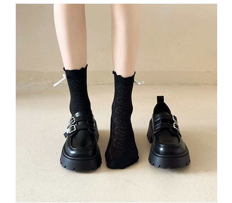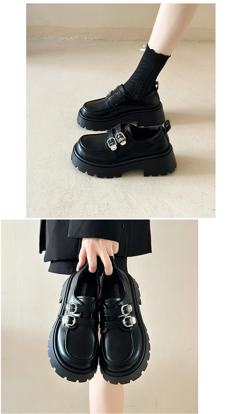 프랑스 스타일 두꺼운 하이힐 블랙 가죽 신발 여성 가을 2024 새로운 스타일 작은 높이 증가 두꺼운 바닥 올 매치 로퍼