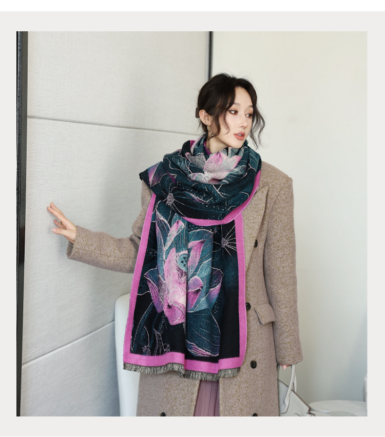 겨울 새 스타일 우아한 유화 모조 캐시미어 스카프 여성의 고급 센스 디자인 로터스 목도리 올 매치 술 스카프스토어 가기
