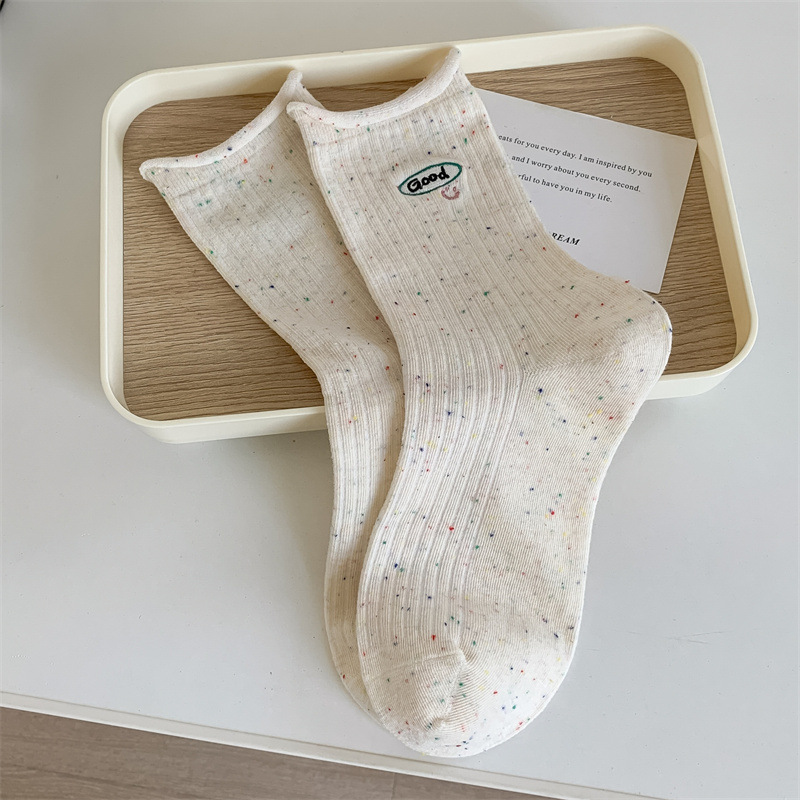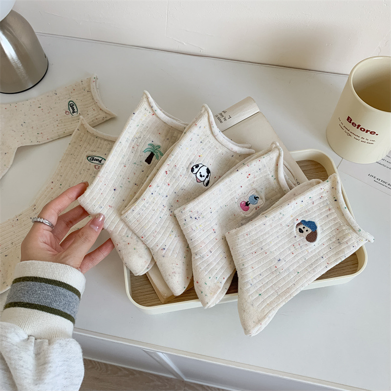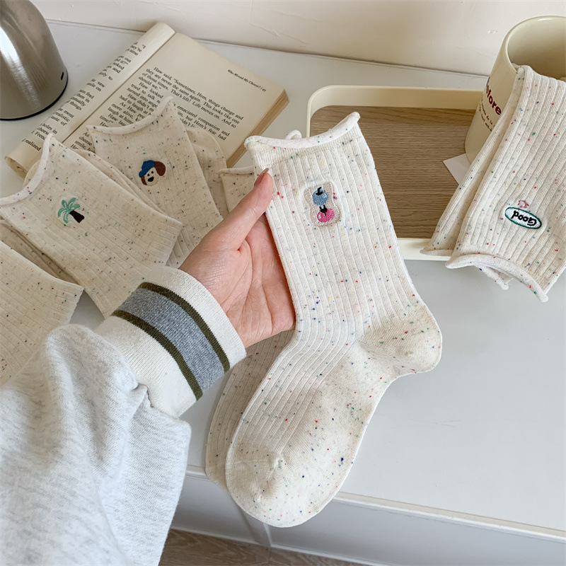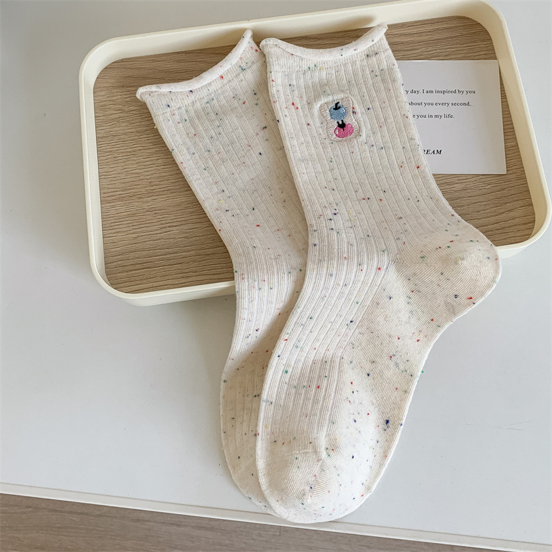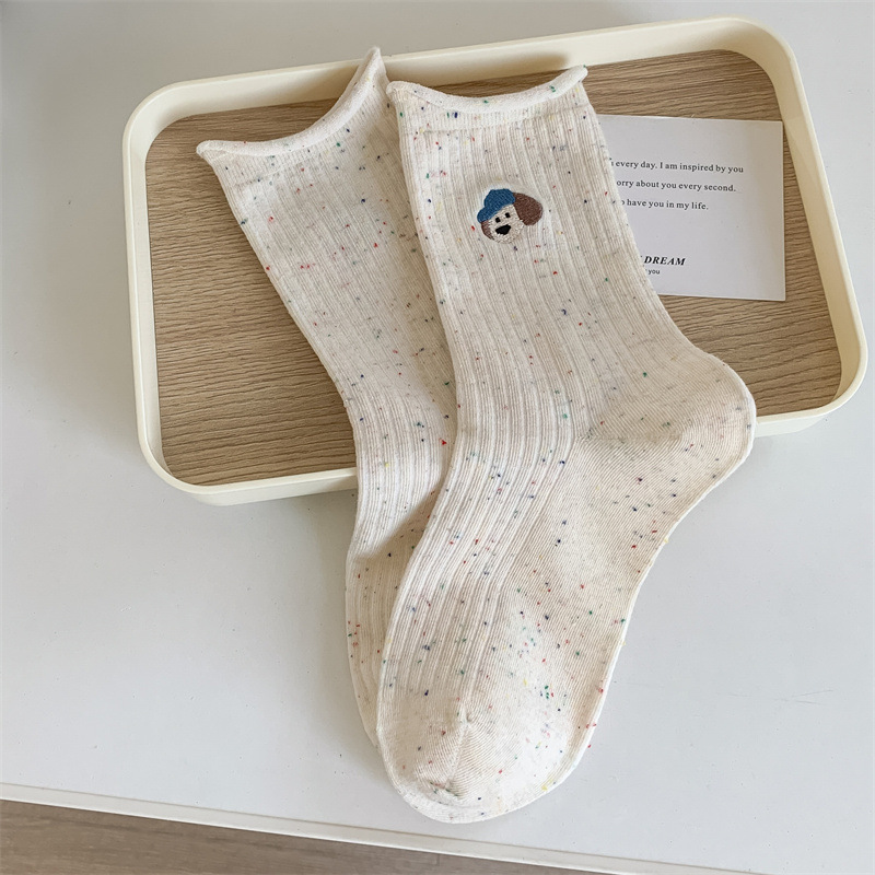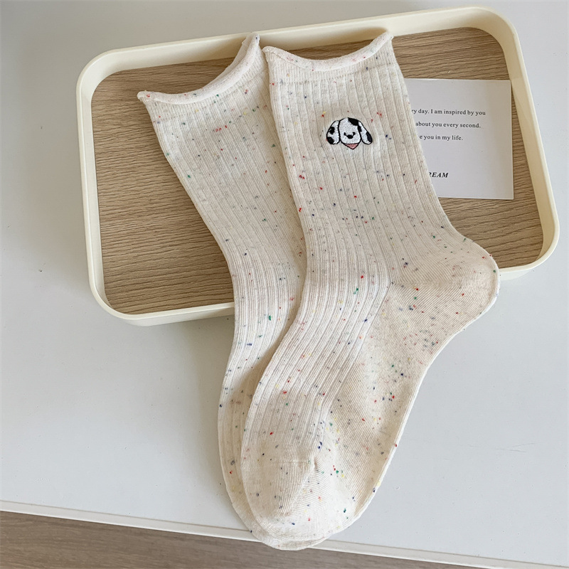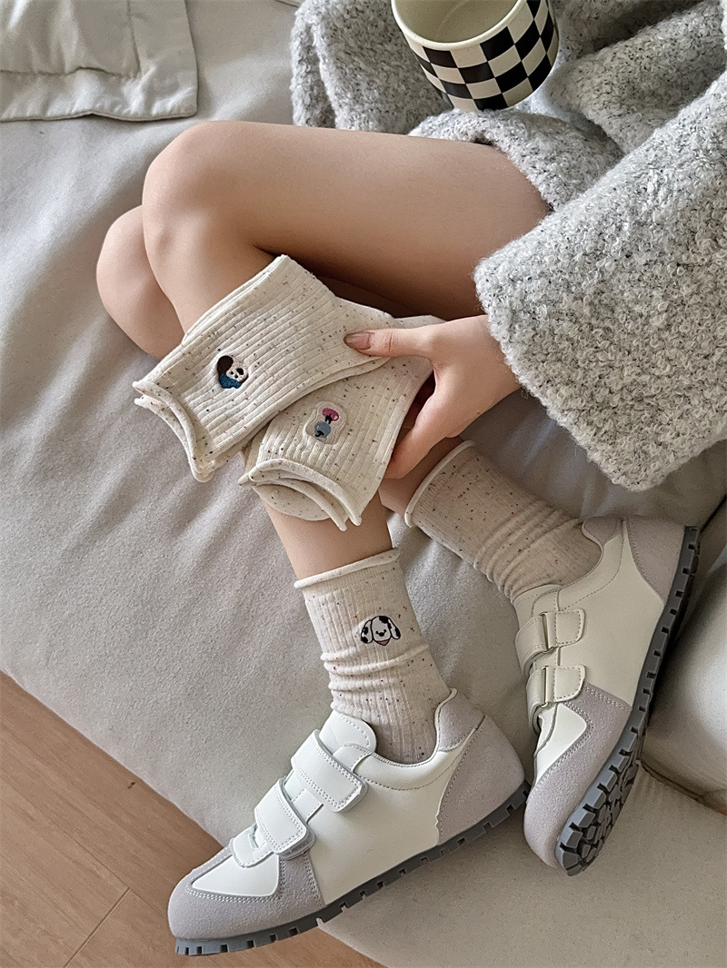 아이보리 소녀 튜브 양말 봄과 가을 학생 대학 스타일 만화 강아지 컬링 귀여운 가을과 겨울 소녀 스타킹스토어 가기