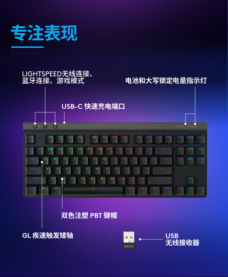 로지텍 G515 LIGHTSPEED TKL 저축 무선 게임 키보드 블랙 화이트