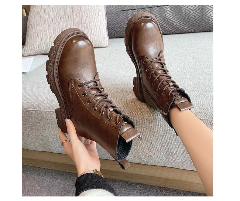 소프트 가죽 마틴 부츠 어린이 영국 스타일 올 매치 쇼트 부츠 스트리트 비트 컬러 고급 코튼 부츠 2024 새로운 가을 및 겨울 기모스토어 가기