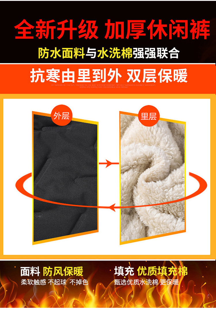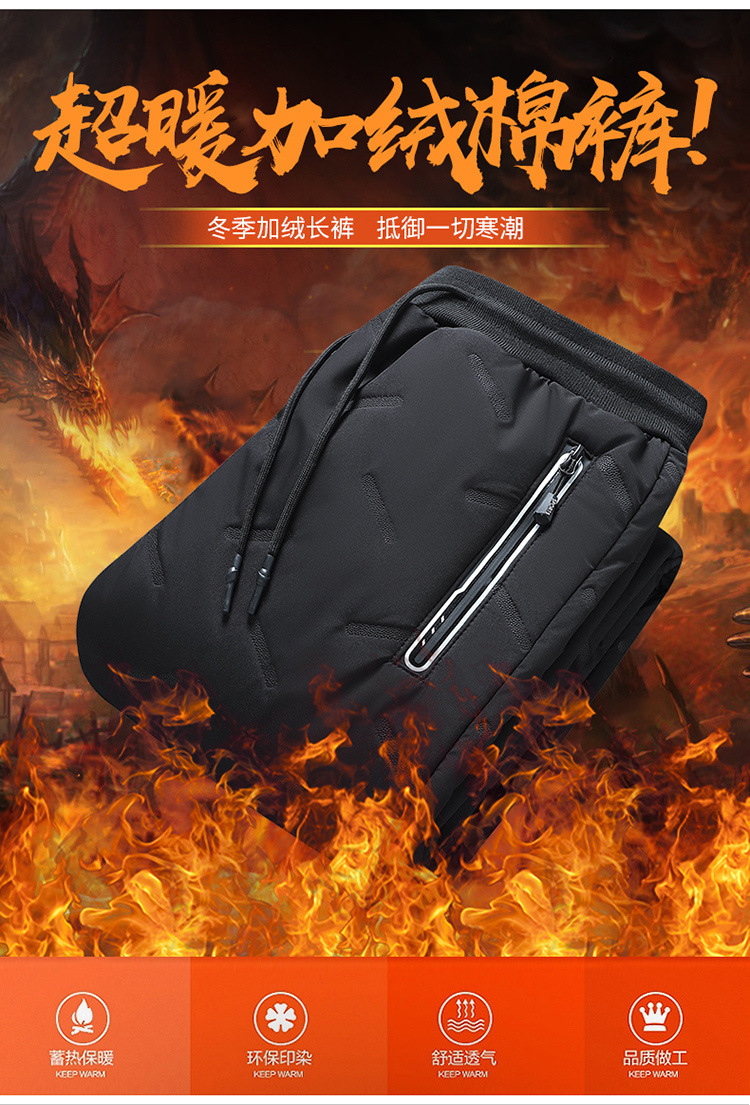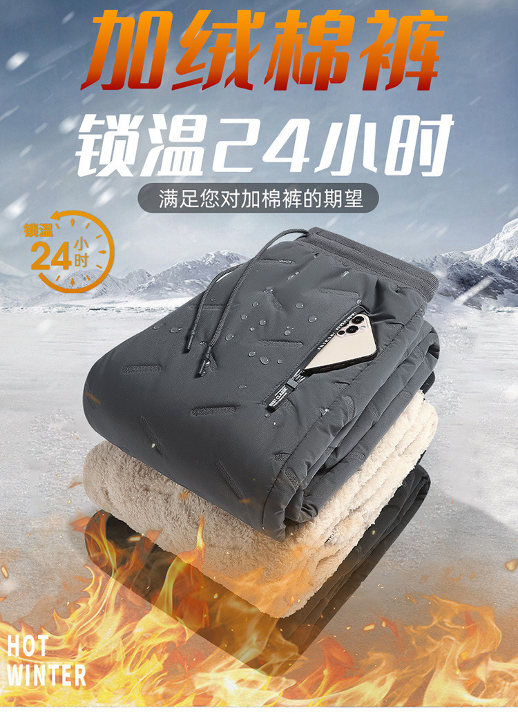 LAZADA 크로스보더 겨울 양털 방한 플러스 벨벳 캐주얼 바지 남성용 플러스 벨벳 두꺼운 드로스트링 방풍 스웨트팬츠