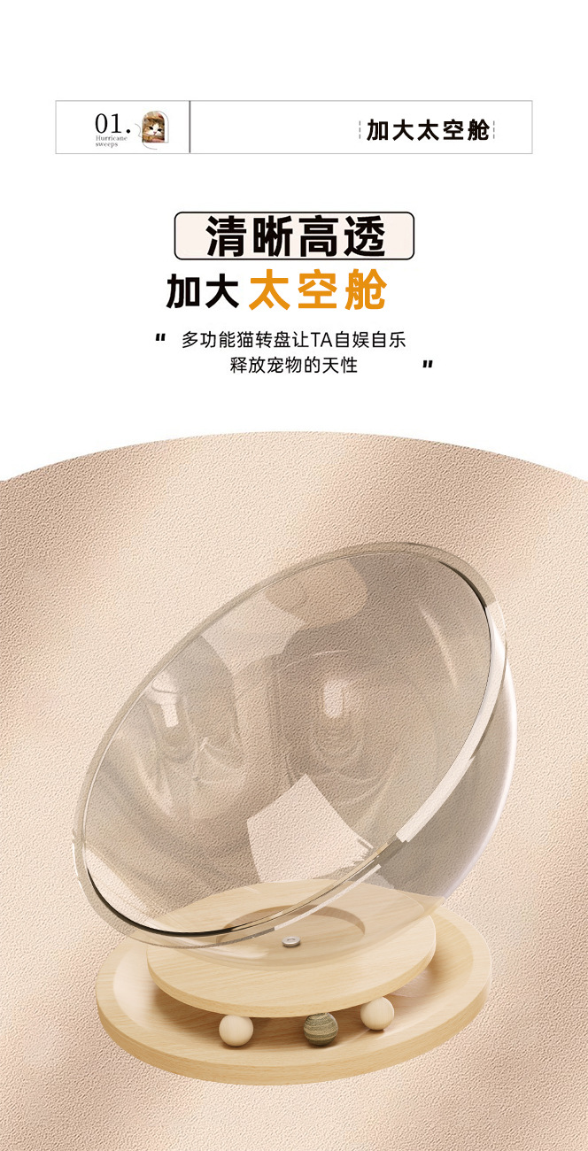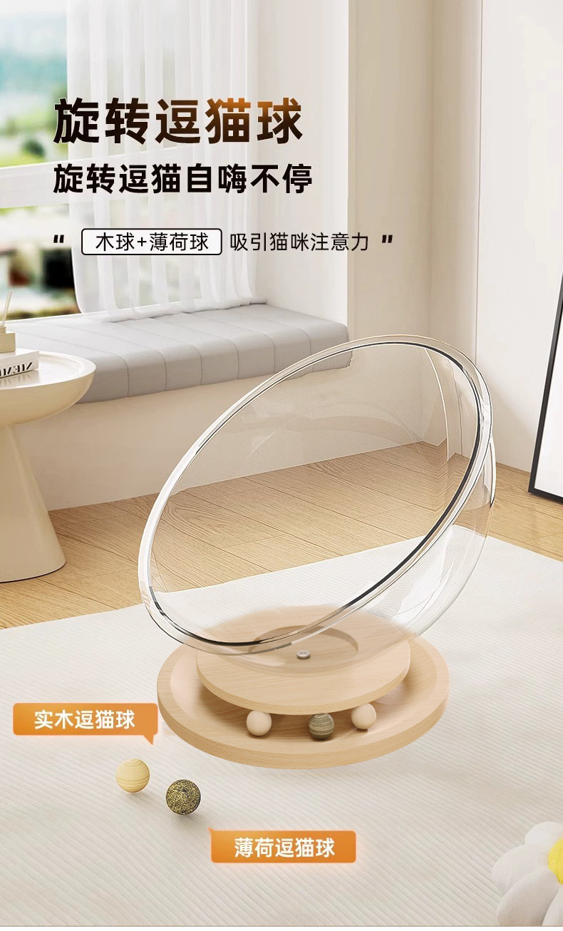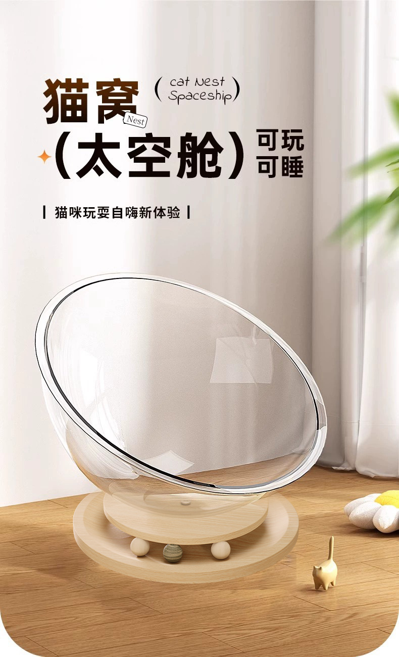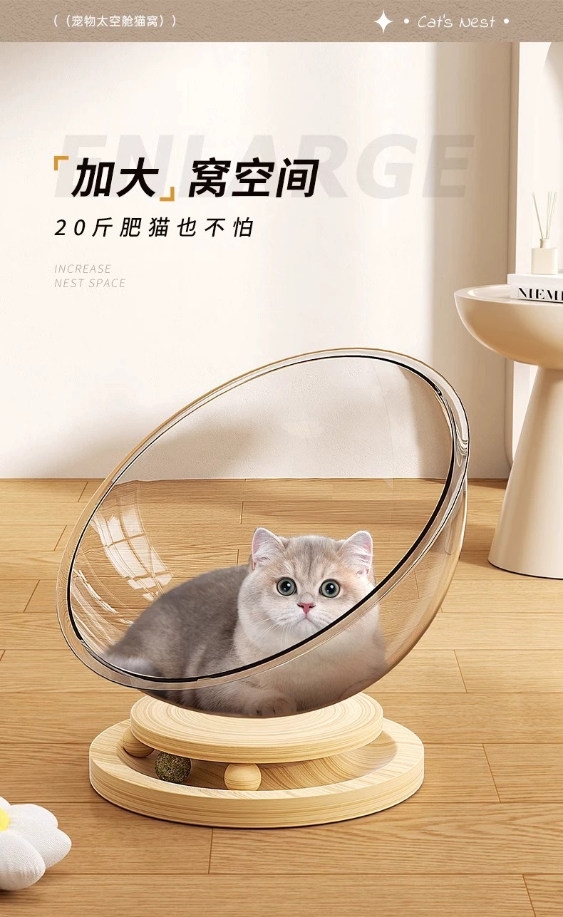 고양이집 고양이 장난감 고양이 침대 일체형 반밀폐형 투명 우주 캡슐 고양이 회전판 애완동물 집 원목