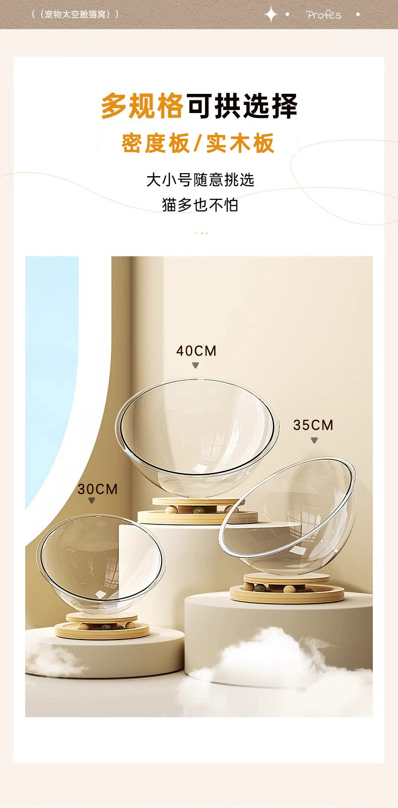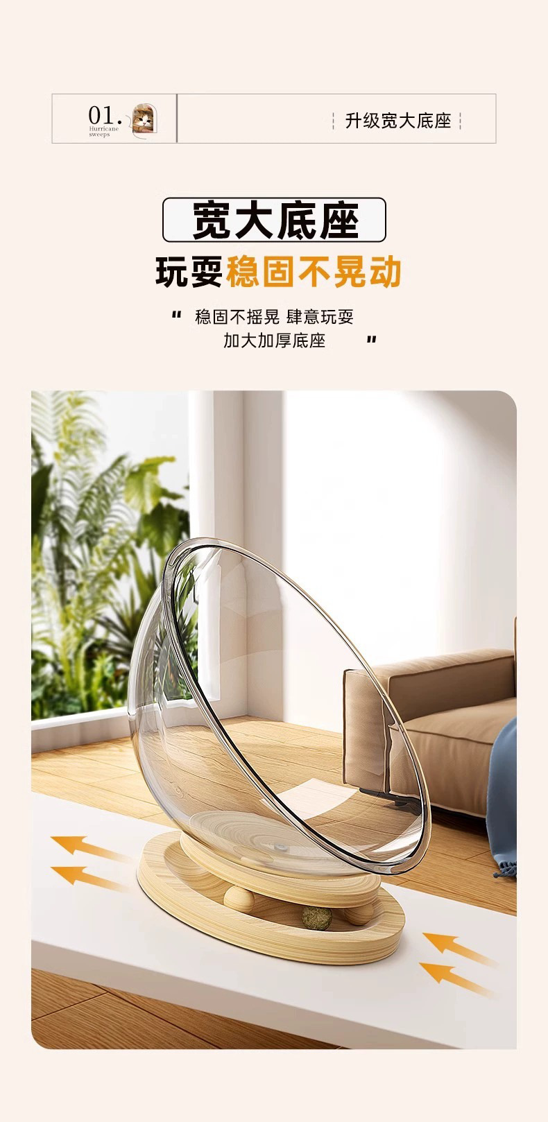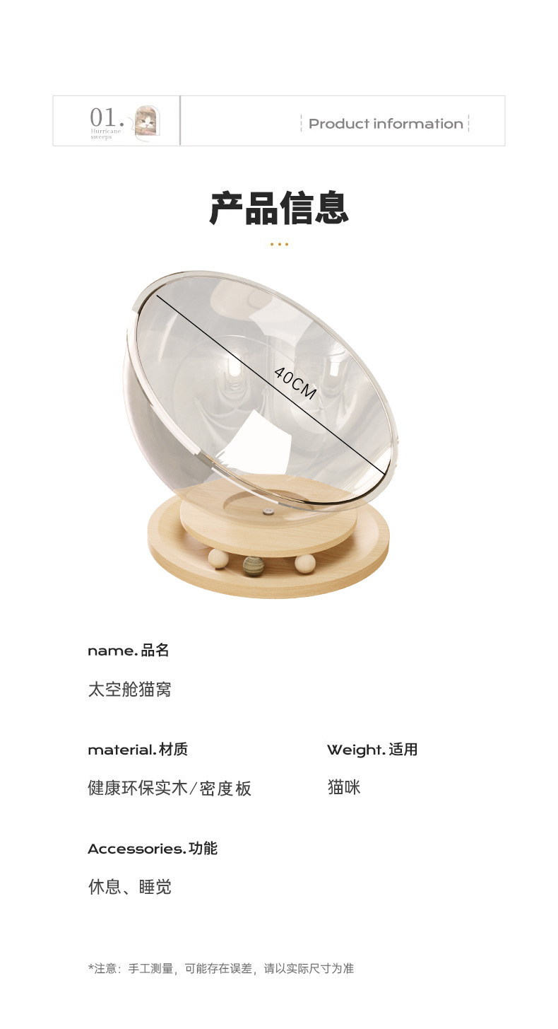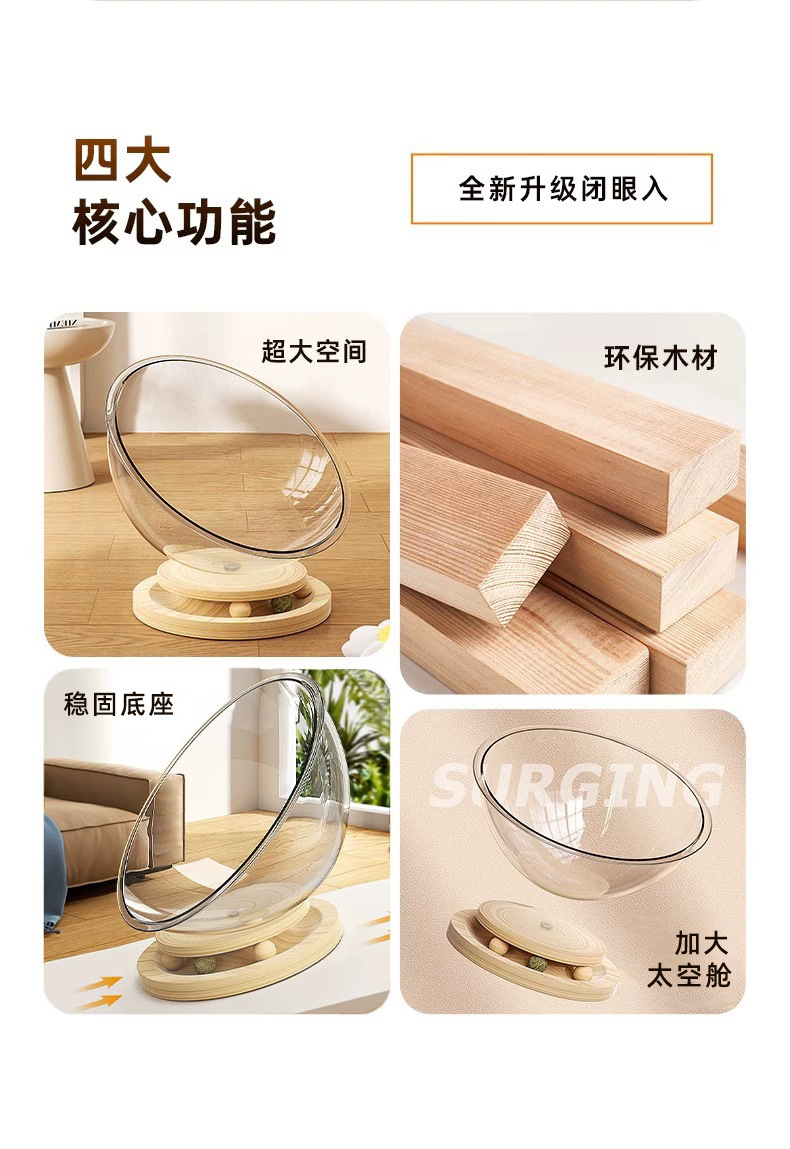 고양이집 고양이 장난감 고양이 침대 일체형 반밀폐형 투명 우주 캡슐 고양이 회전판 애완동물 집 원목