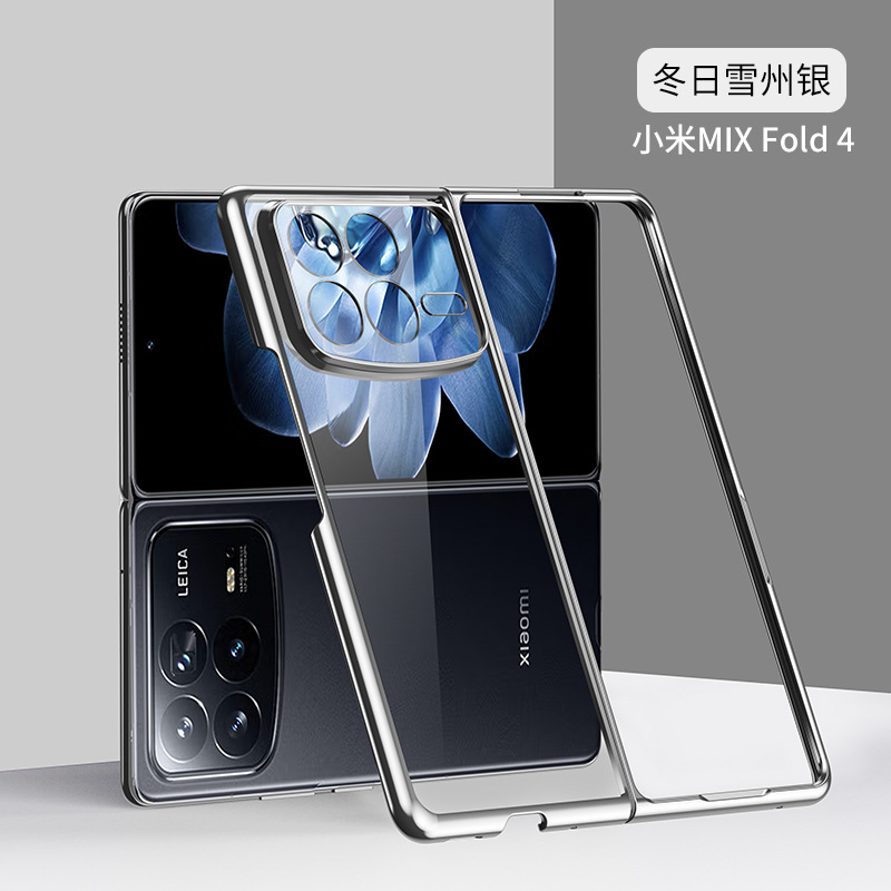 Xiaomi 믹스 fold4 투명 전기 도금 휴대 전화 케이스 비즈니스 접이식 기계 PC 하드 쉘 휴대 전화 보호 케이스