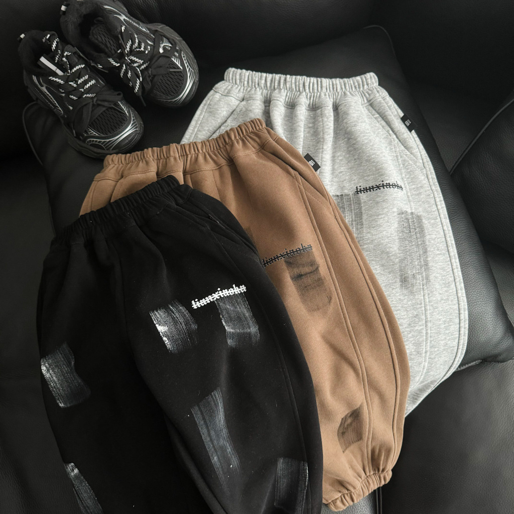2024 가을 새 소년 소녀 한국 캐주얼 낙서 바지 중소 어린이 브러쉬 트렌디 브랜드 어린이 바지 바느질 쿨 올매치스토어 가기