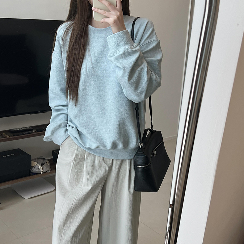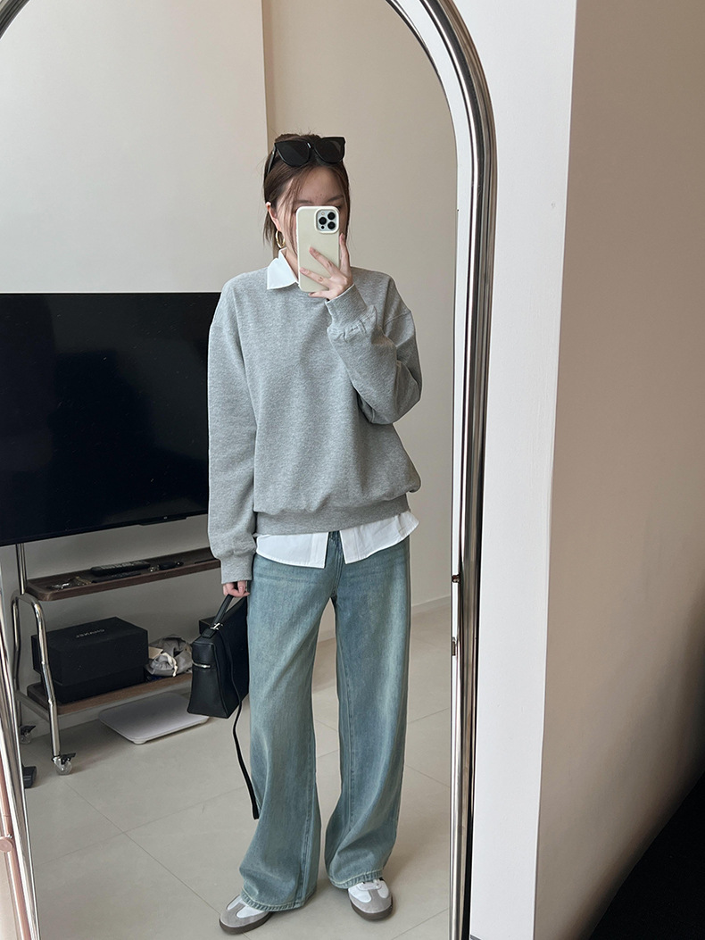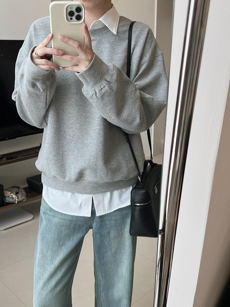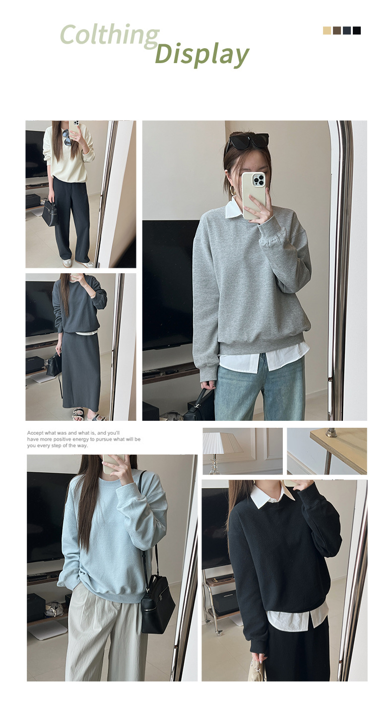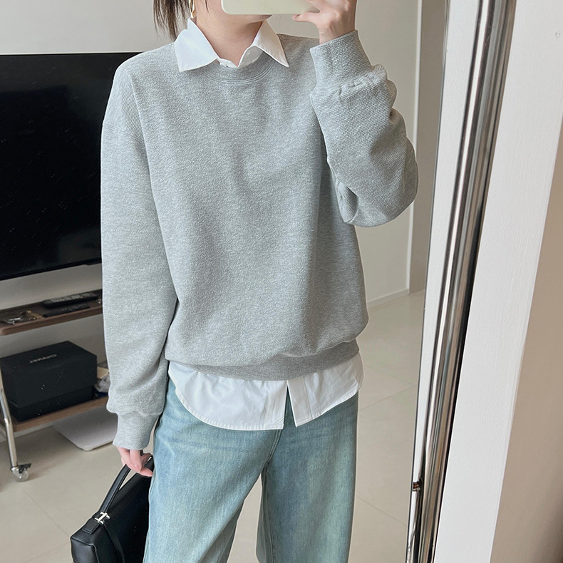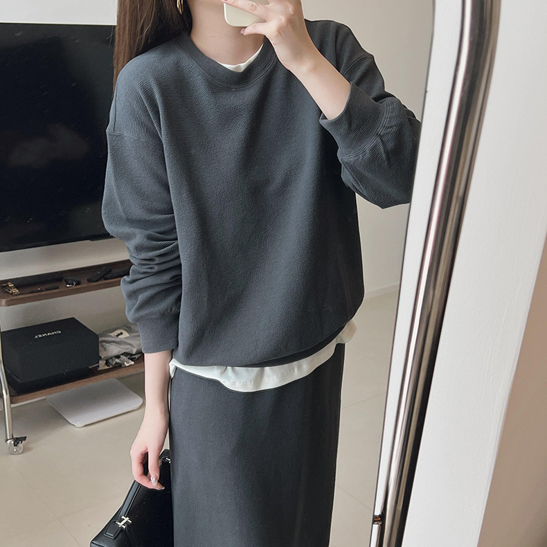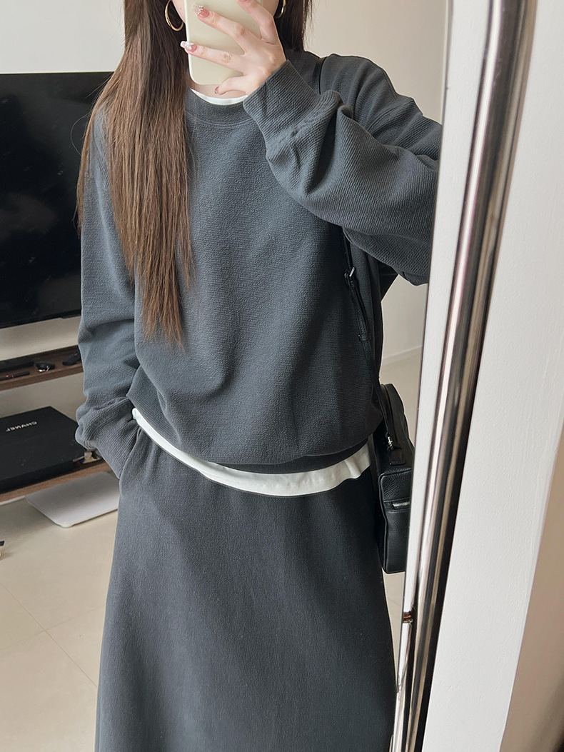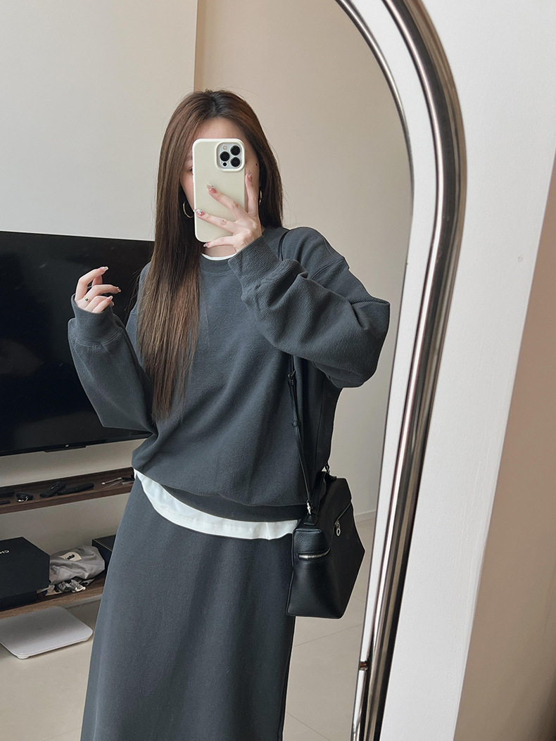 기본 편안한 곡물 코튼 라운드 넥 스웨트 셔츠 여성의 가을과 겨울 새로운 느슨한 캐주얼 스포츠 스웨트 셔츠 원피스 세트스토어 가기