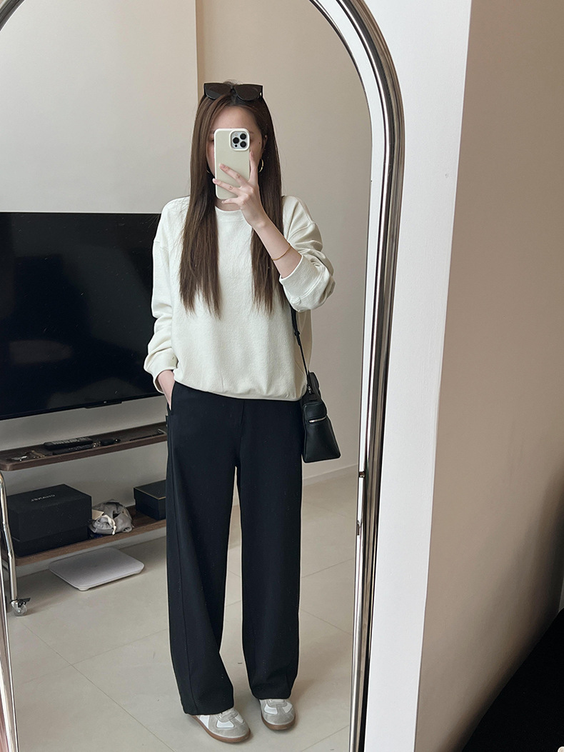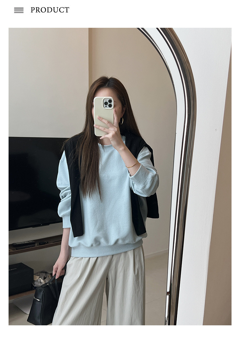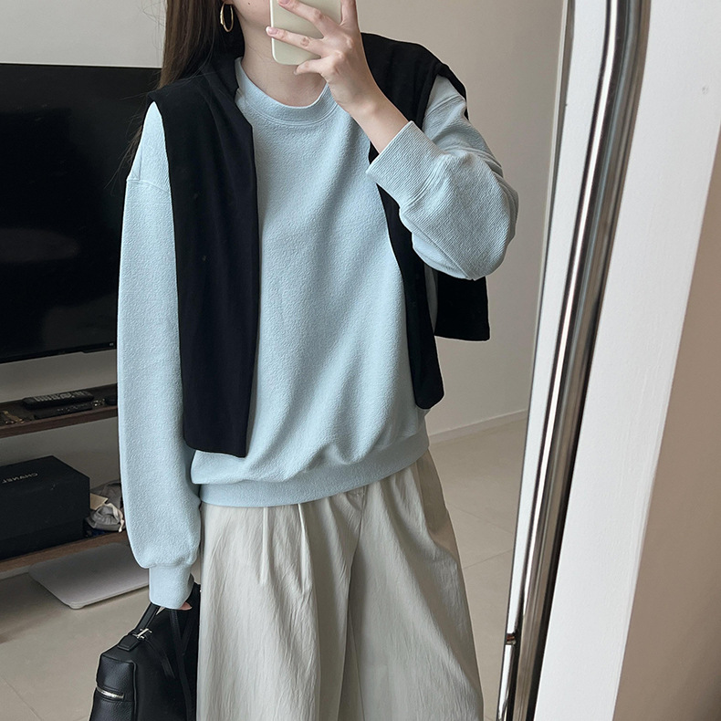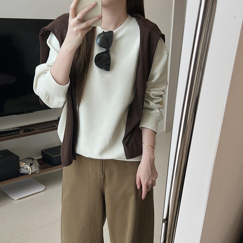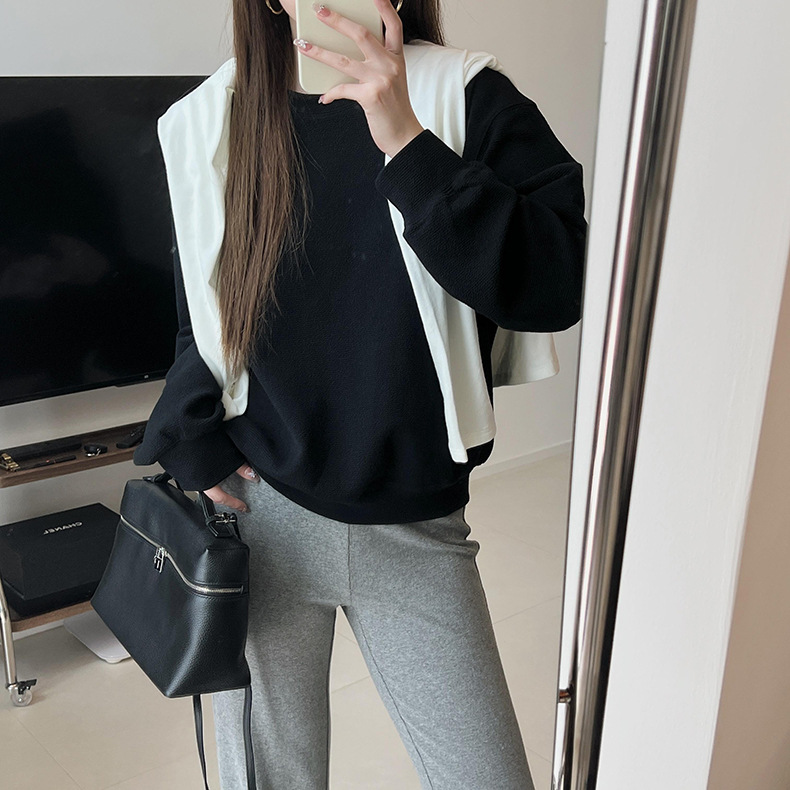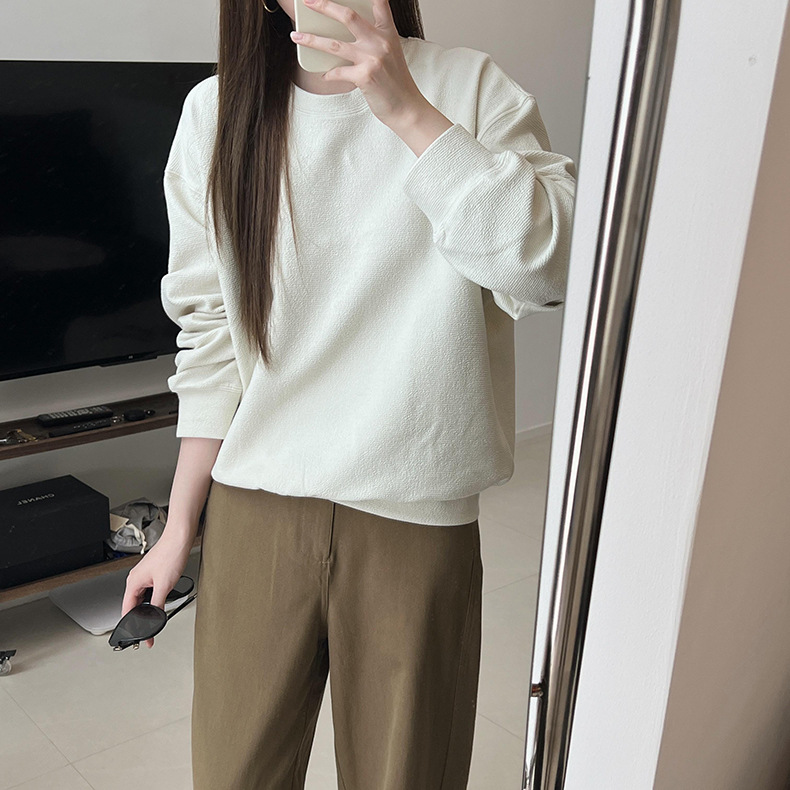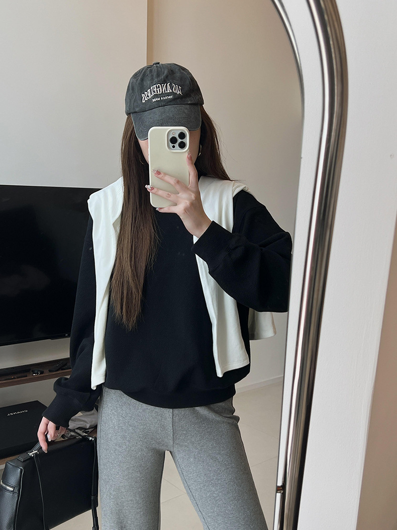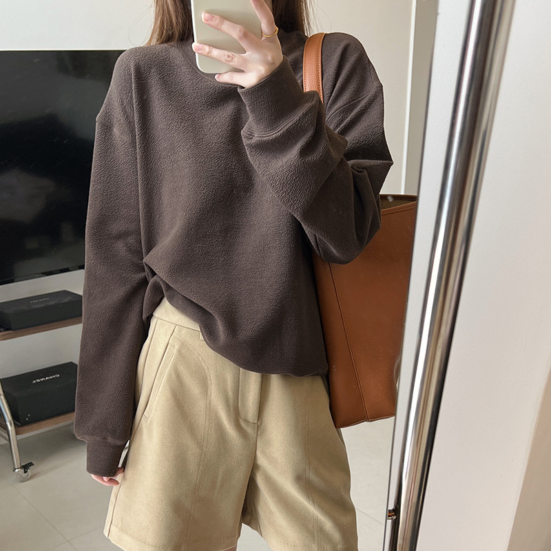기본 편안한 곡물 코튼 라운드 넥 스웨트 셔츠 여성의 가을과 겨울 새로운 느슨한 캐주얼 스포츠 스웨트 셔츠 원피스 세트스토어 가기