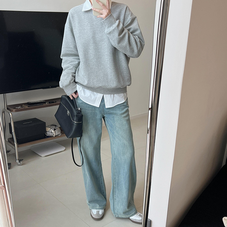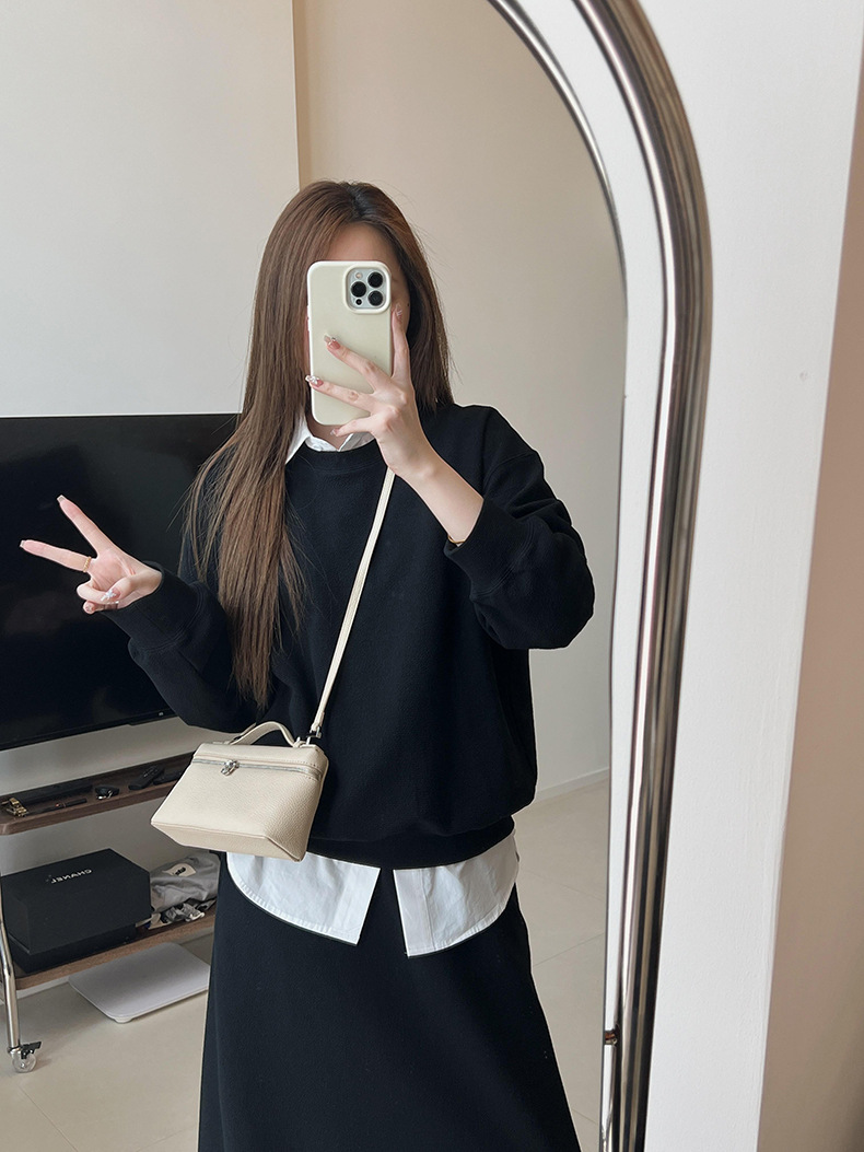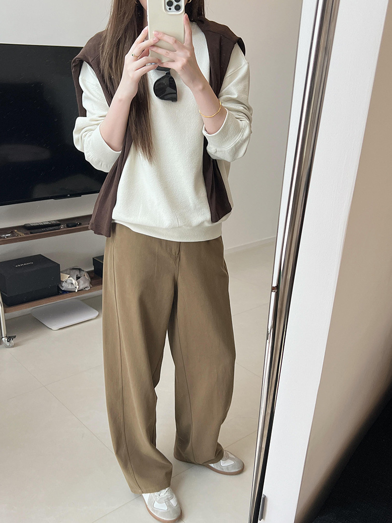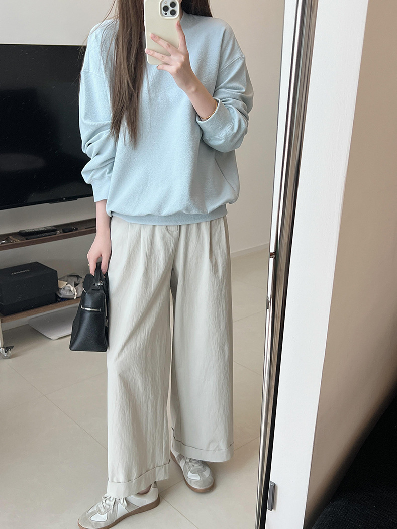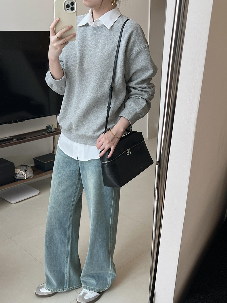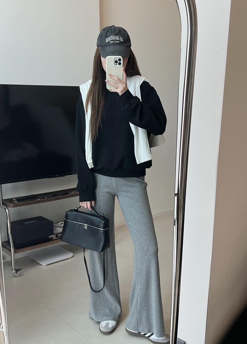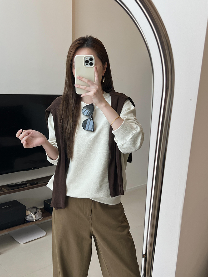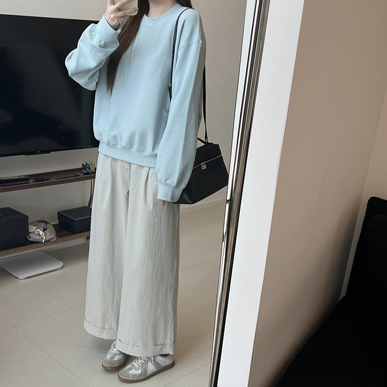 기본 편안한 곡물 코튼 라운드 넥 스웨트 셔츠 여성의 가을과 겨울 새로운 느슨한 캐주얼 스포츠 스웨트 셔츠 원피스 세트스토어 가기