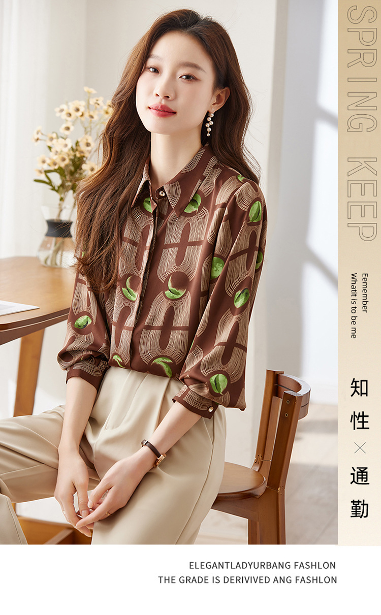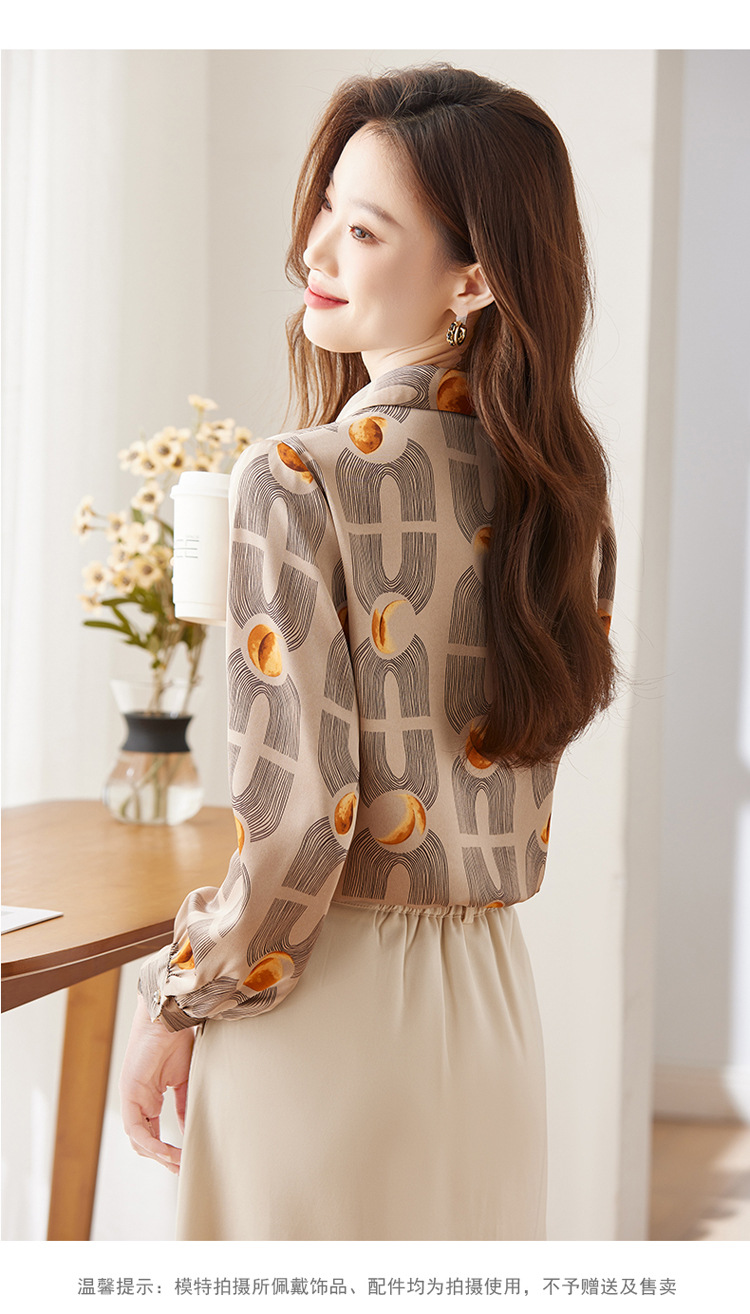 봄과 가을 2024 새로운 뉴 포트 스타일 쉬폰 긴 소매 꽃 셔츠 가을 디지털 인쇄 셔츠 루즈 탑스토어 가기