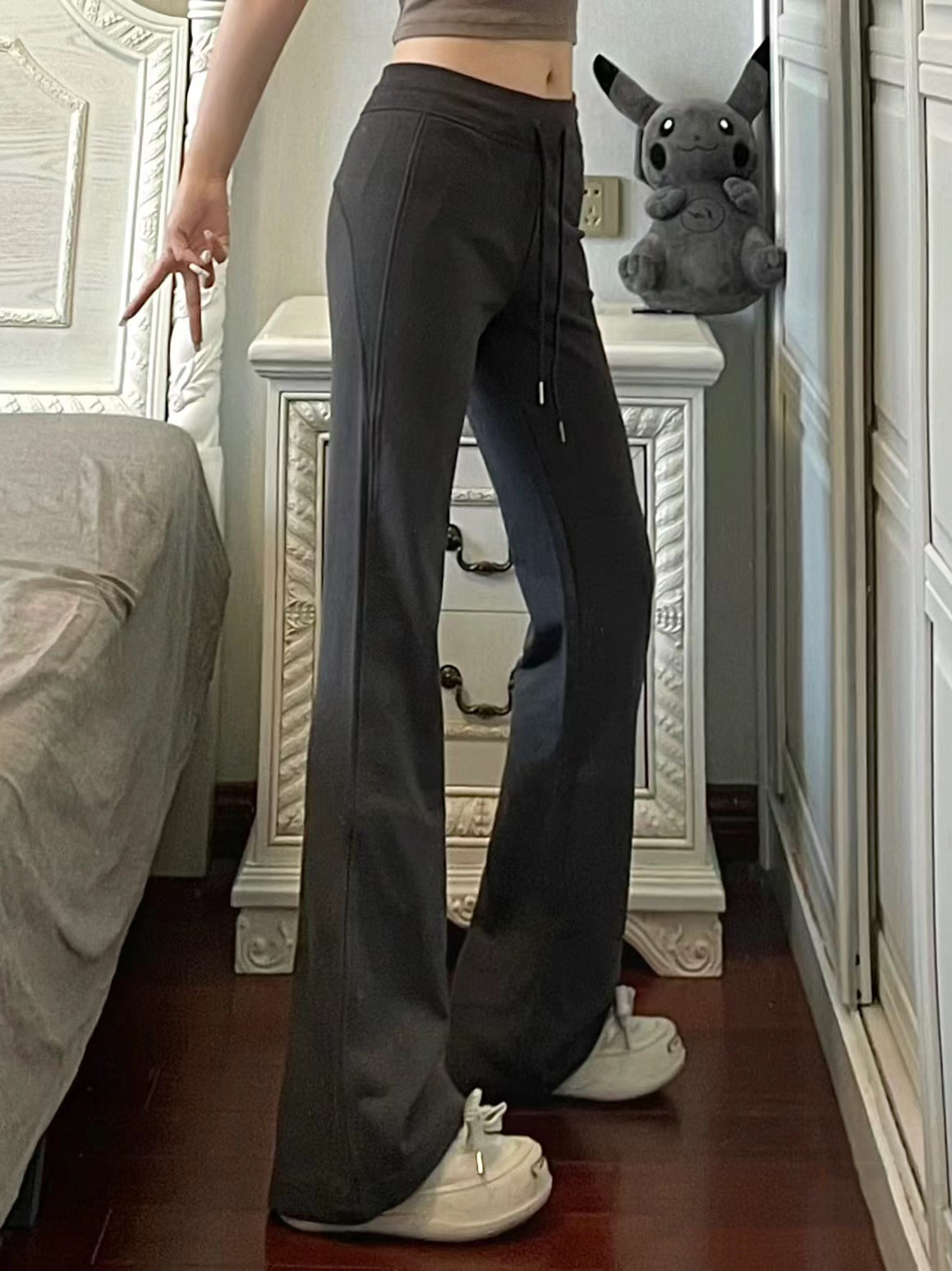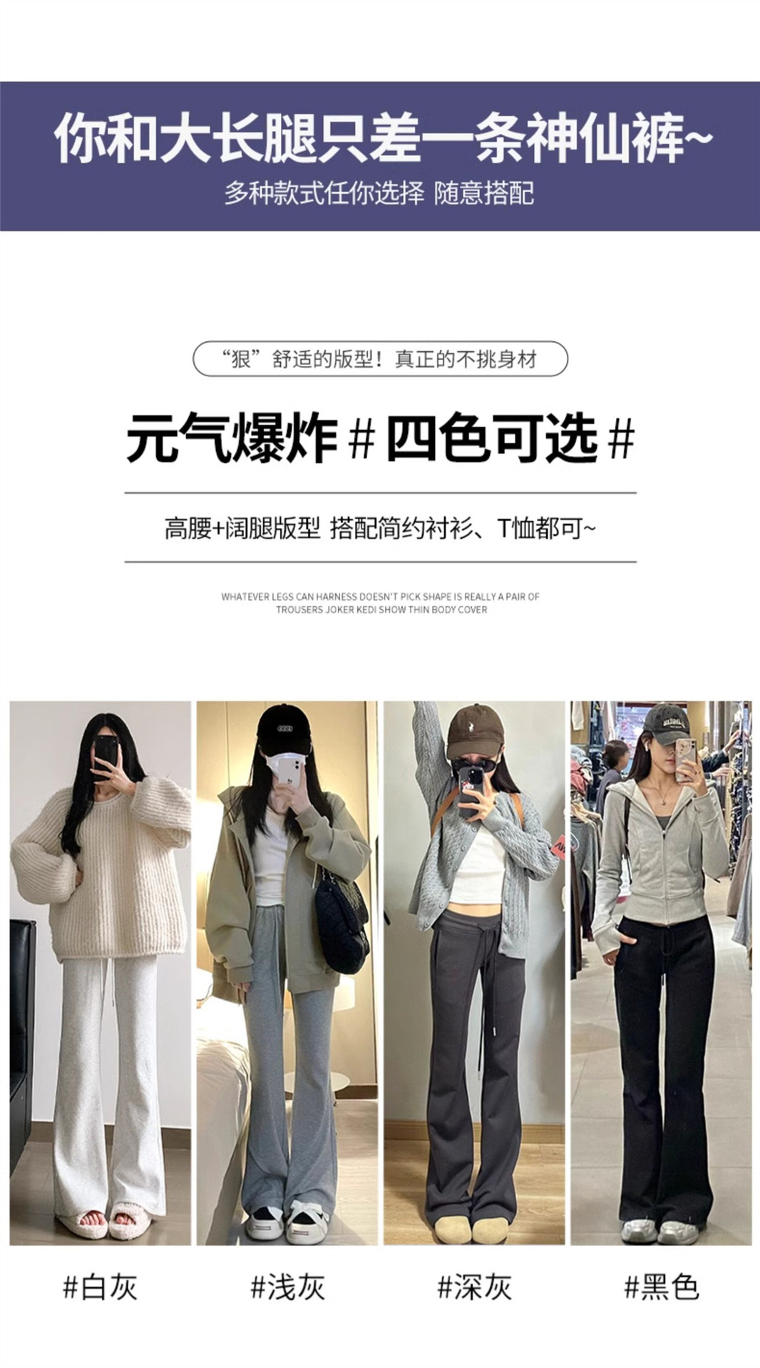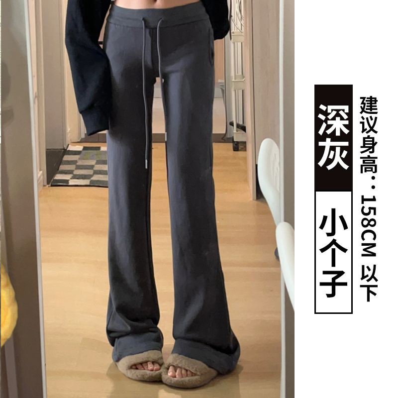 다크 그레이 마이크로 라 캐주얼 바지 여성의 2024 새로운 슬림 마이크로 탄성 와이드 레그 배 모양의 바디 슬림 스포츠 바지스토어 가기