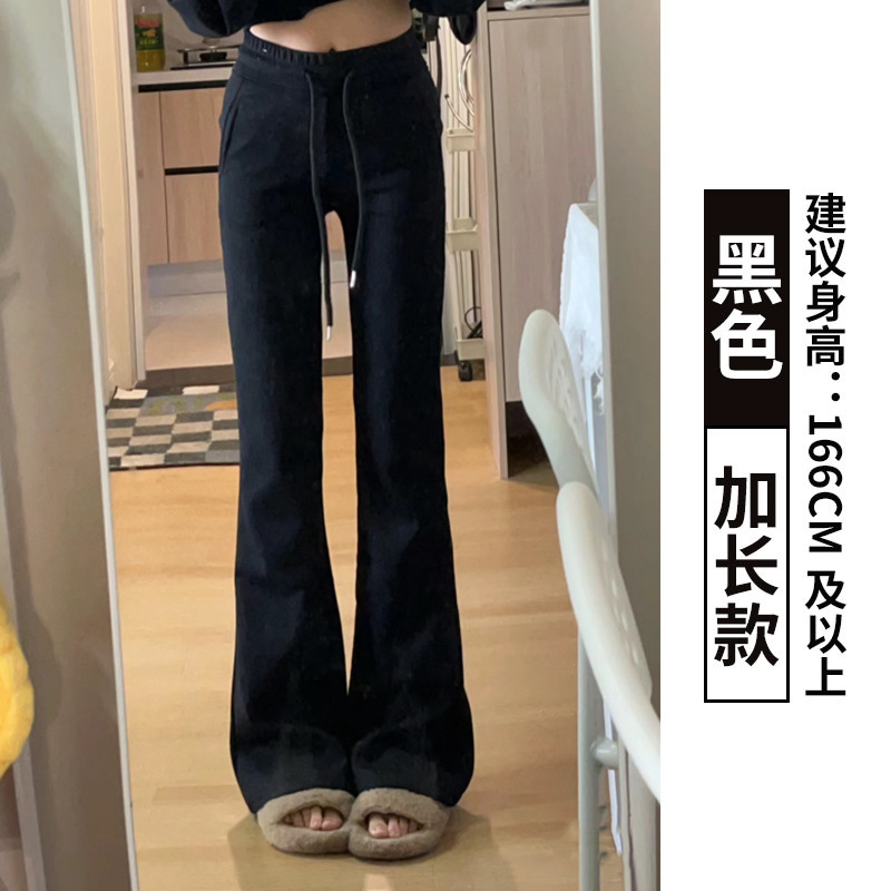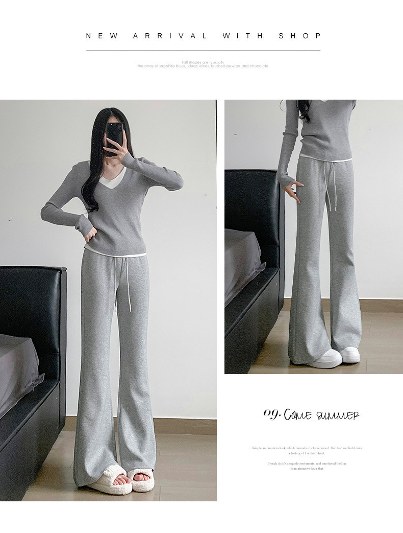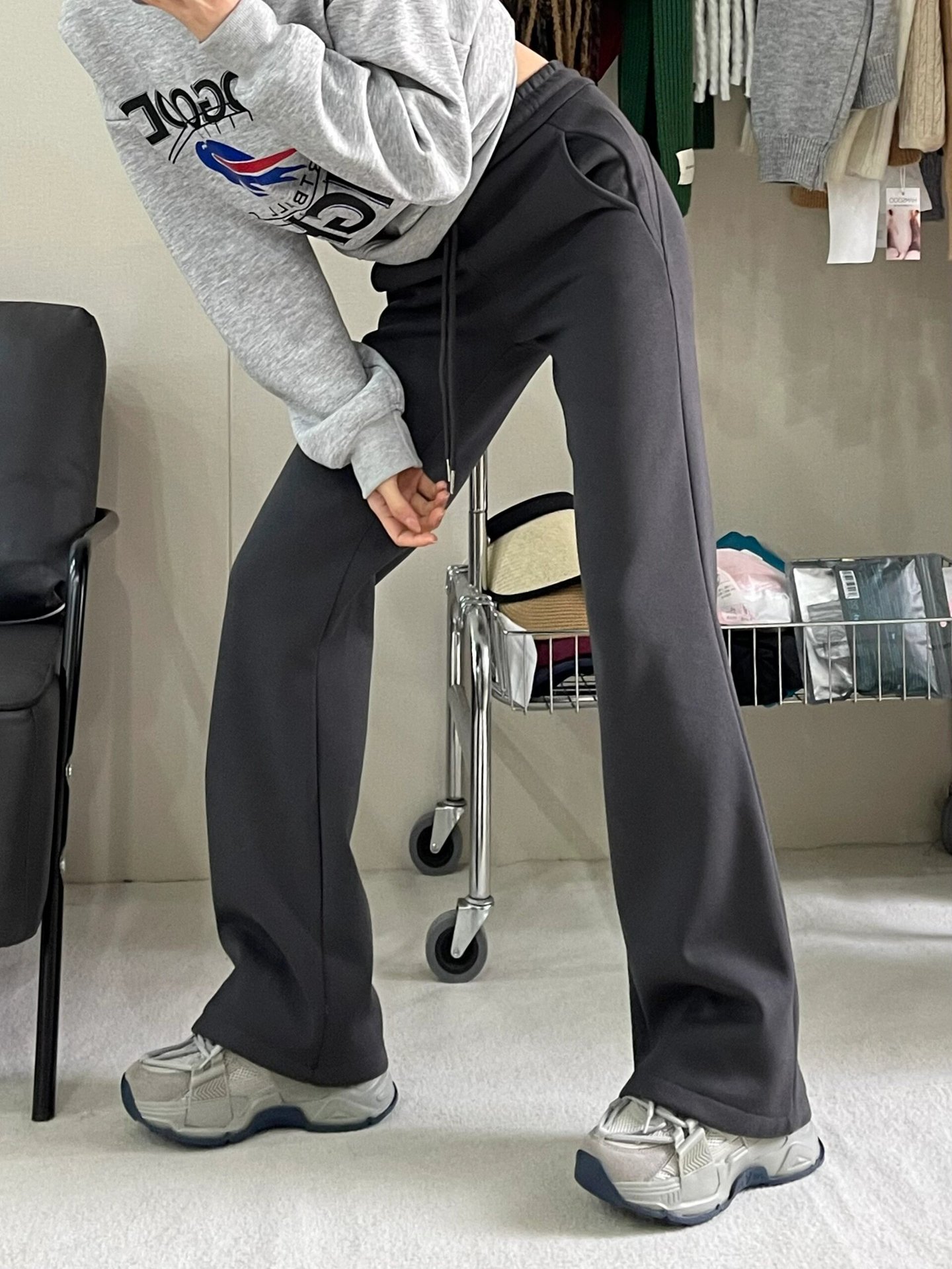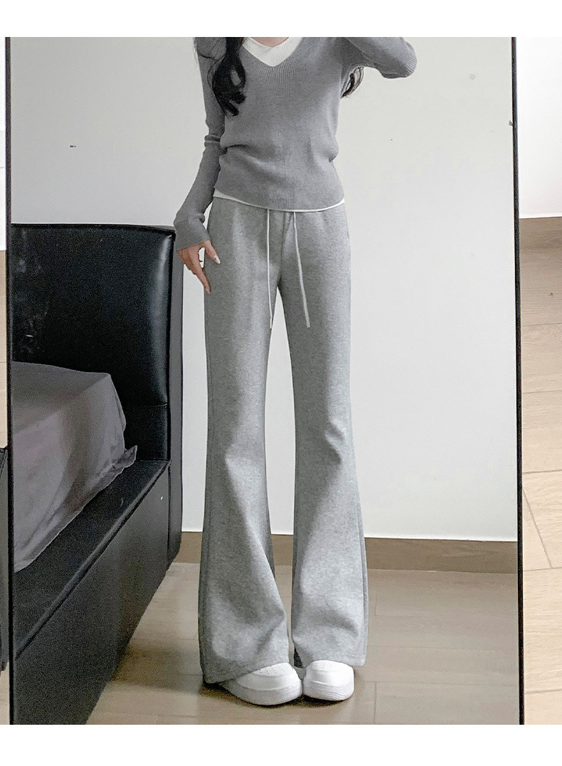 다크 그레이 마이크로 라 캐주얼 바지 여성의 2024 새로운 슬림 마이크로 탄성 와이드 레그 배 모양의 바디 슬림 스포츠 바지스토어 가기