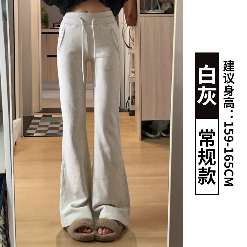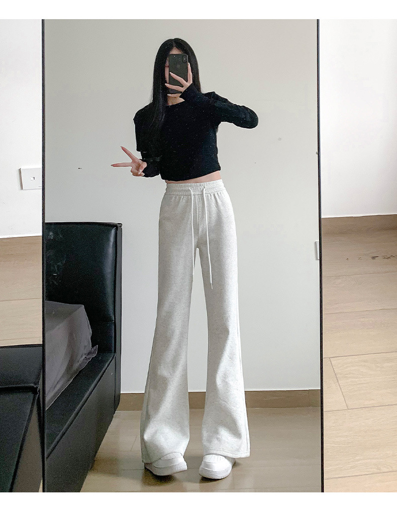 다크 그레이 마이크로 라 캐주얼 바지 여성의 2024 새로운 슬림 마이크로 탄성 와이드 레그 배 모양의 바디 슬림 스포츠 바지
