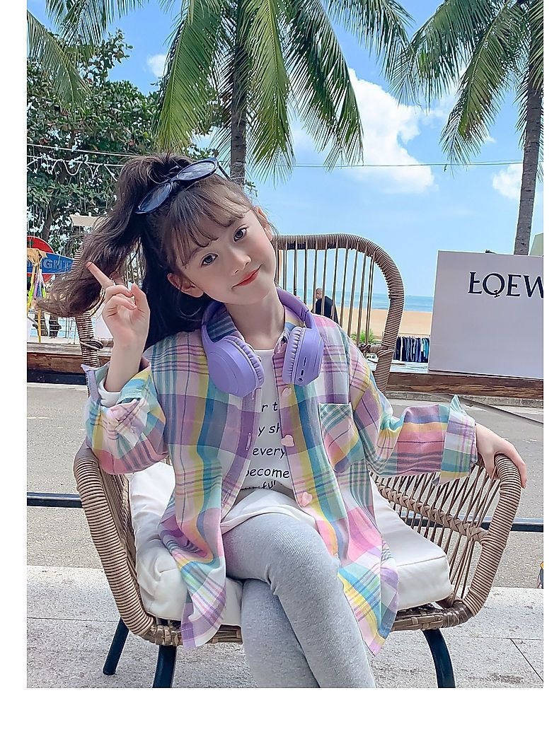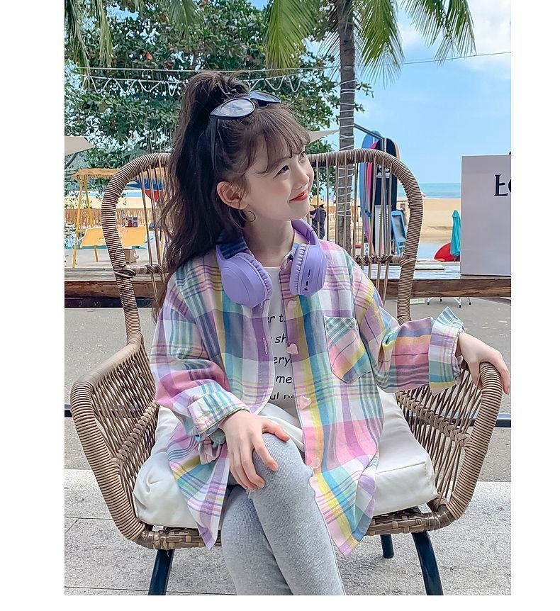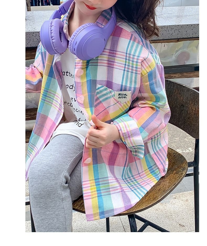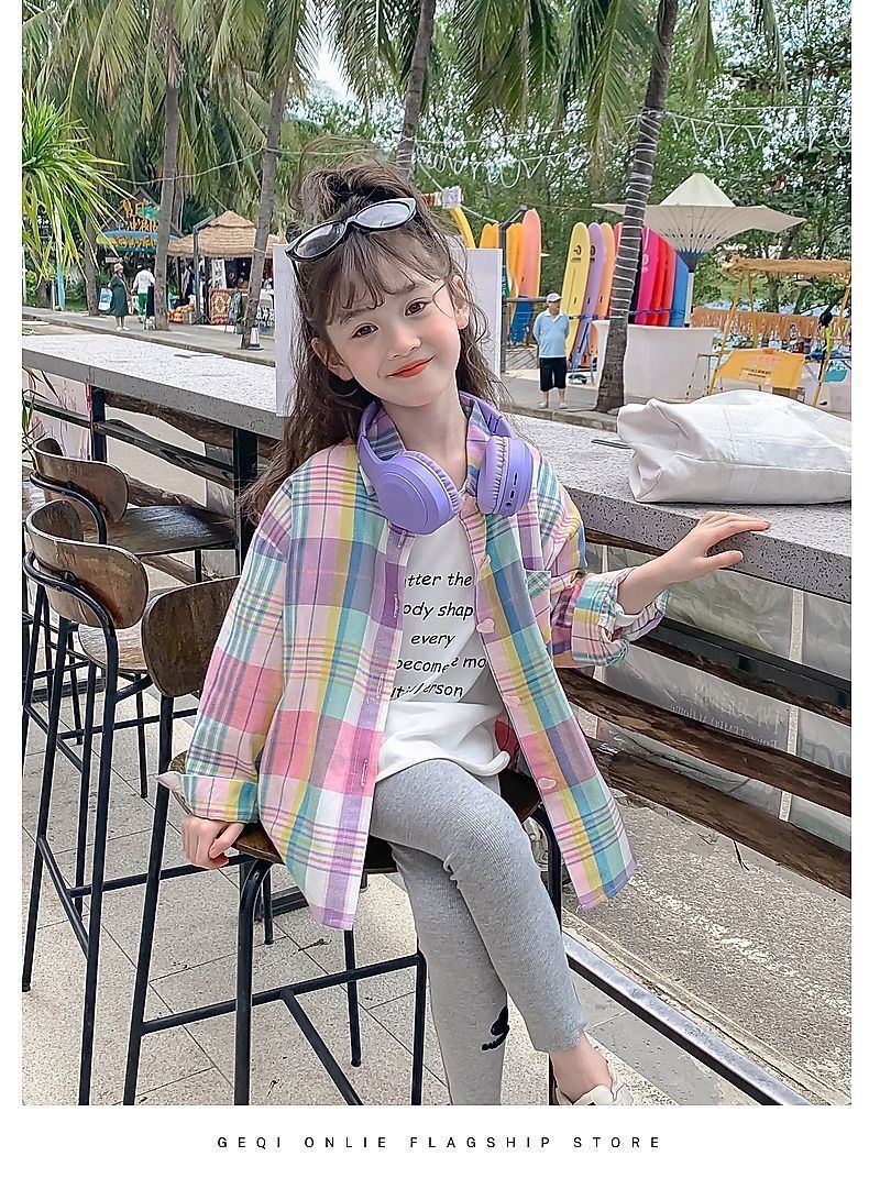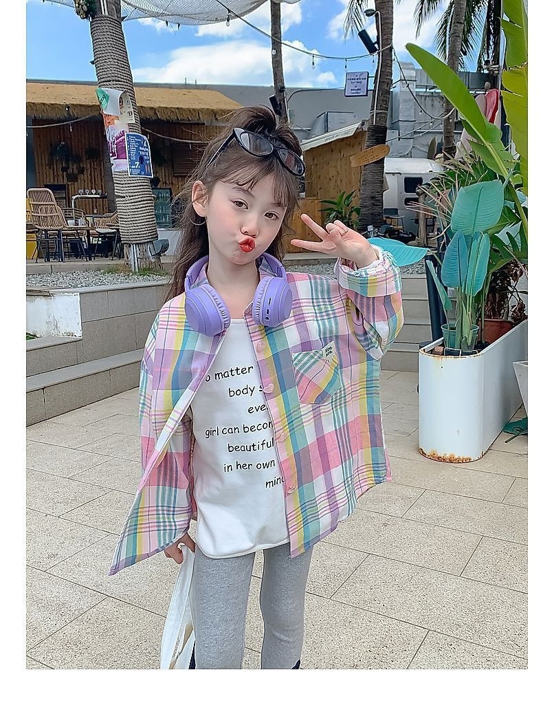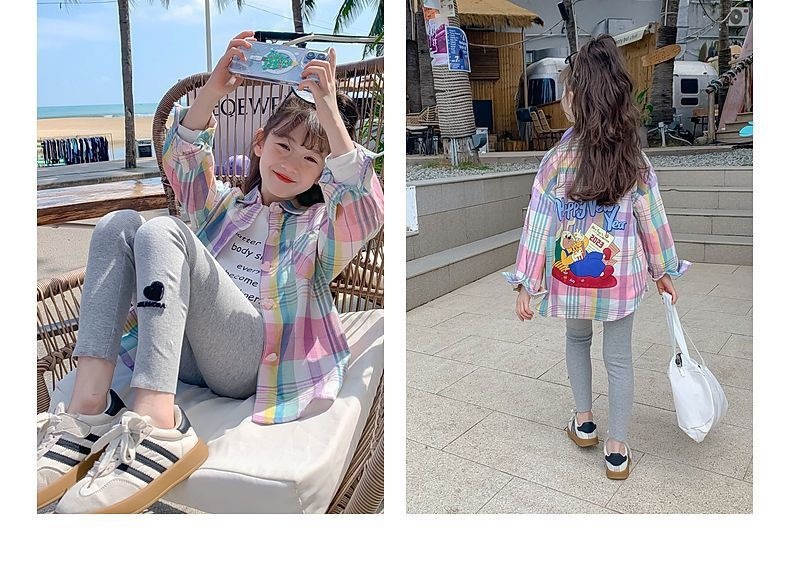 소녀의 격자 무늬 셔츠 봄 2024 새로운 스타일 어린이 긴 소매 셔츠 봄과 가을 코트 어린 소녀의 탑스토어 가기