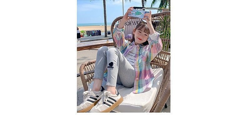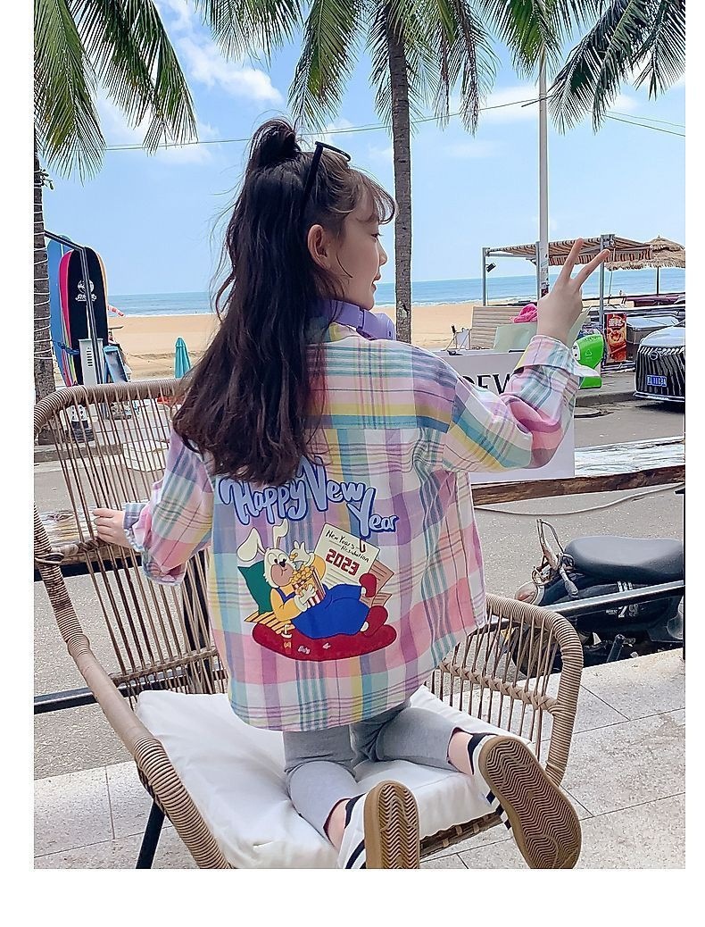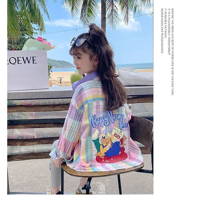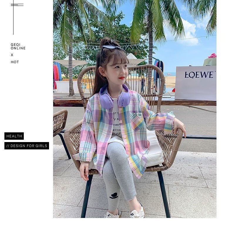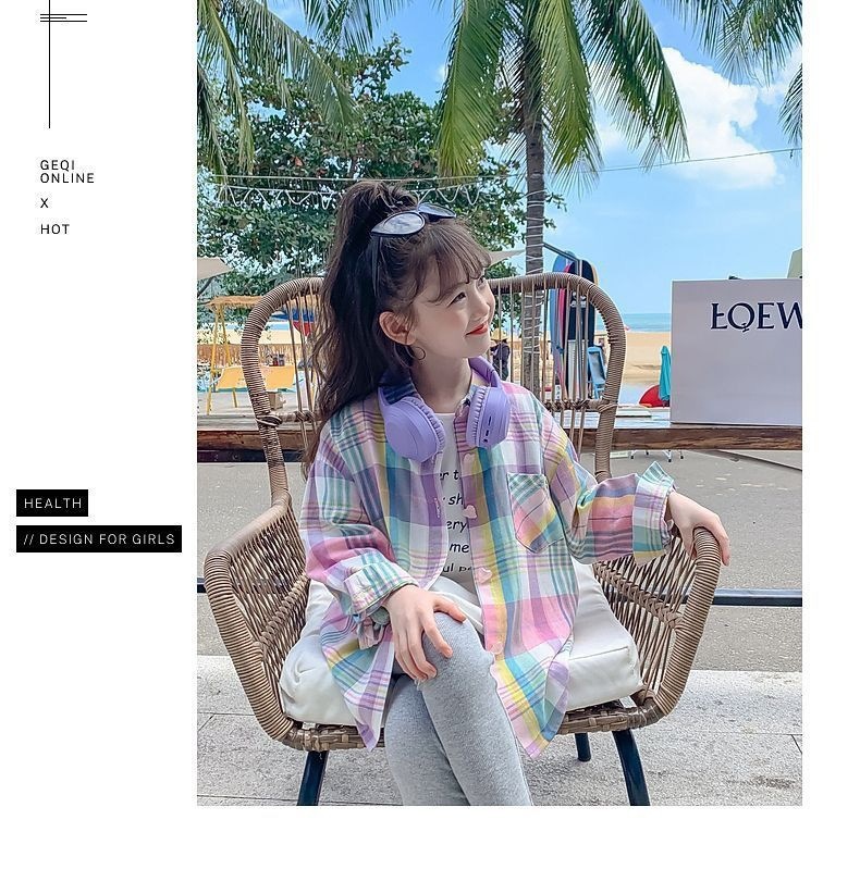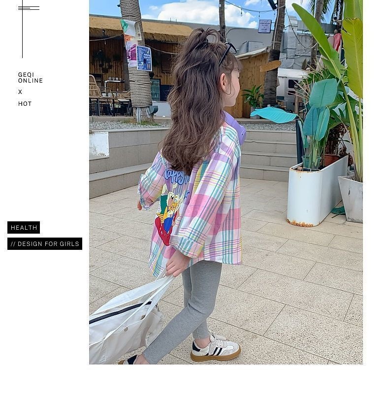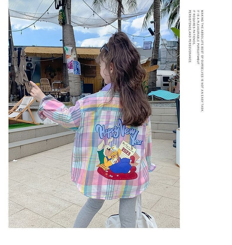 소녀의 격자 무늬 셔츠 봄 2024 새로운 스타일 어린이 긴 소매 셔츠 봄과 가을 코트 어린 소녀의 탑스토어 가기