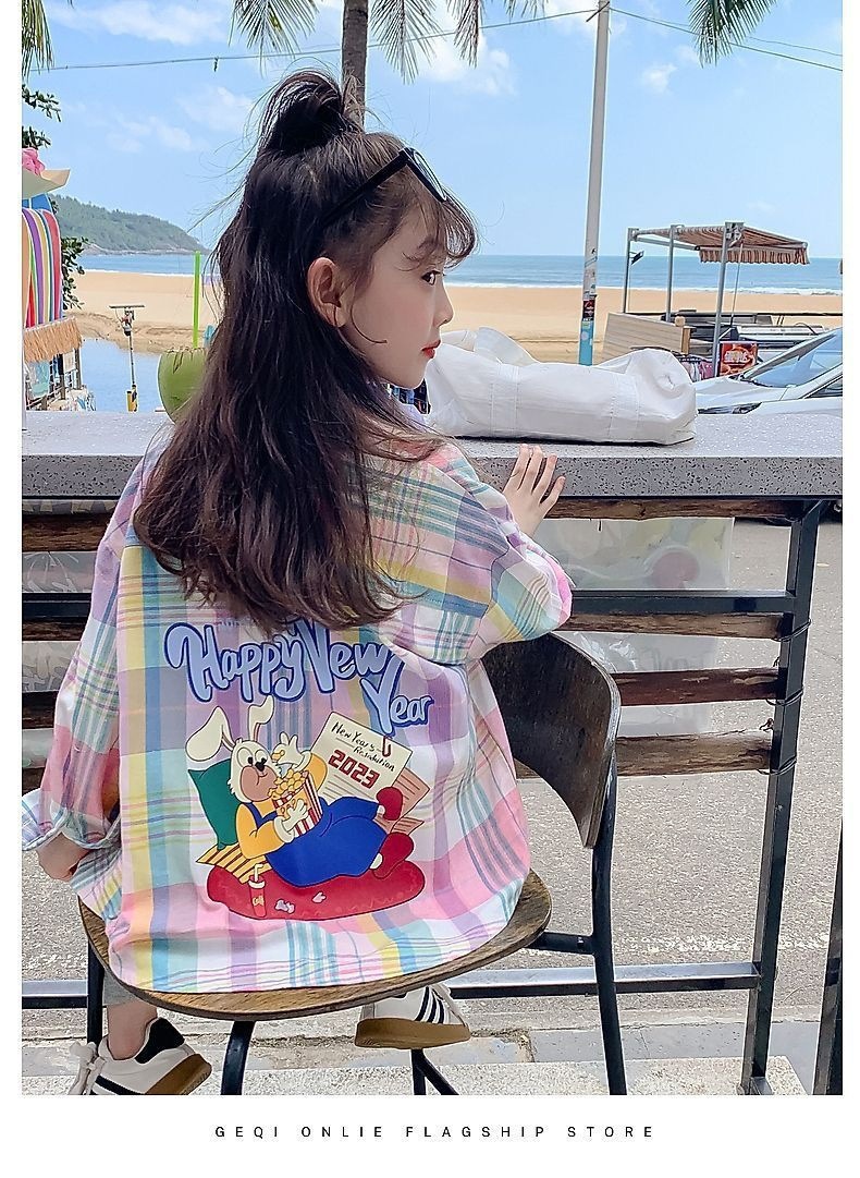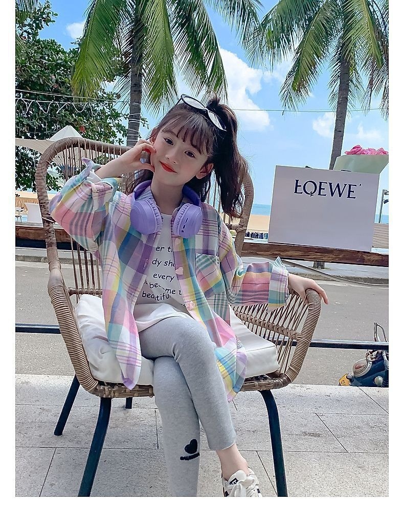 女童格子衬衫春装2024新款洋气儿童长袖衬衣春秋款外套小女孩上衣