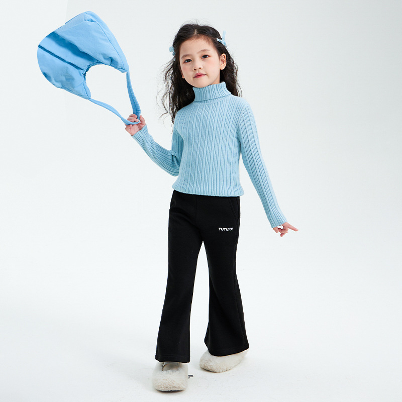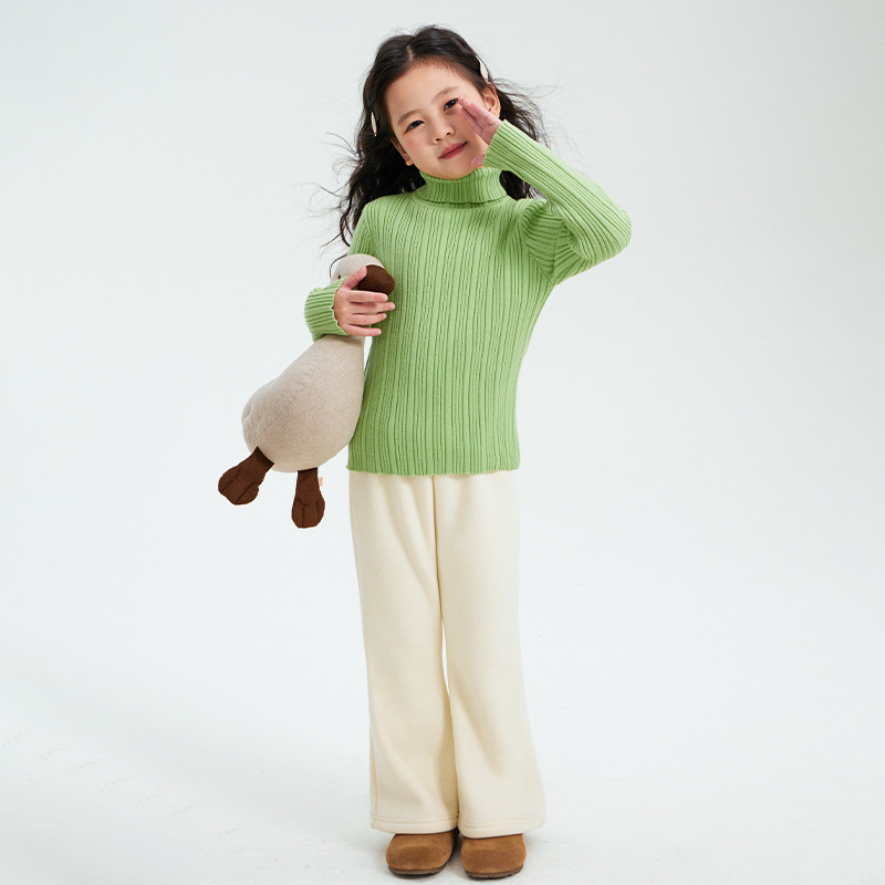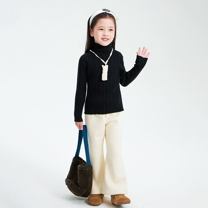 소녀 니트 스웨터 2024 가을과 겨울 새로운 어린이 착용 두꺼운 기본 레이어 셔츠 서양식 탑 어린이 따뜻한 스웨터