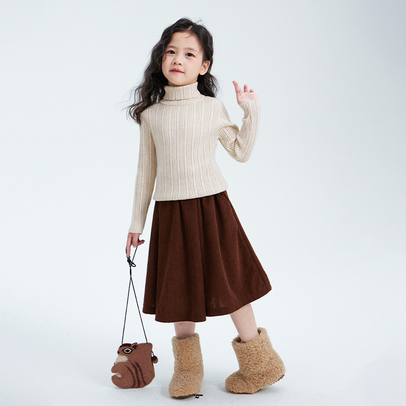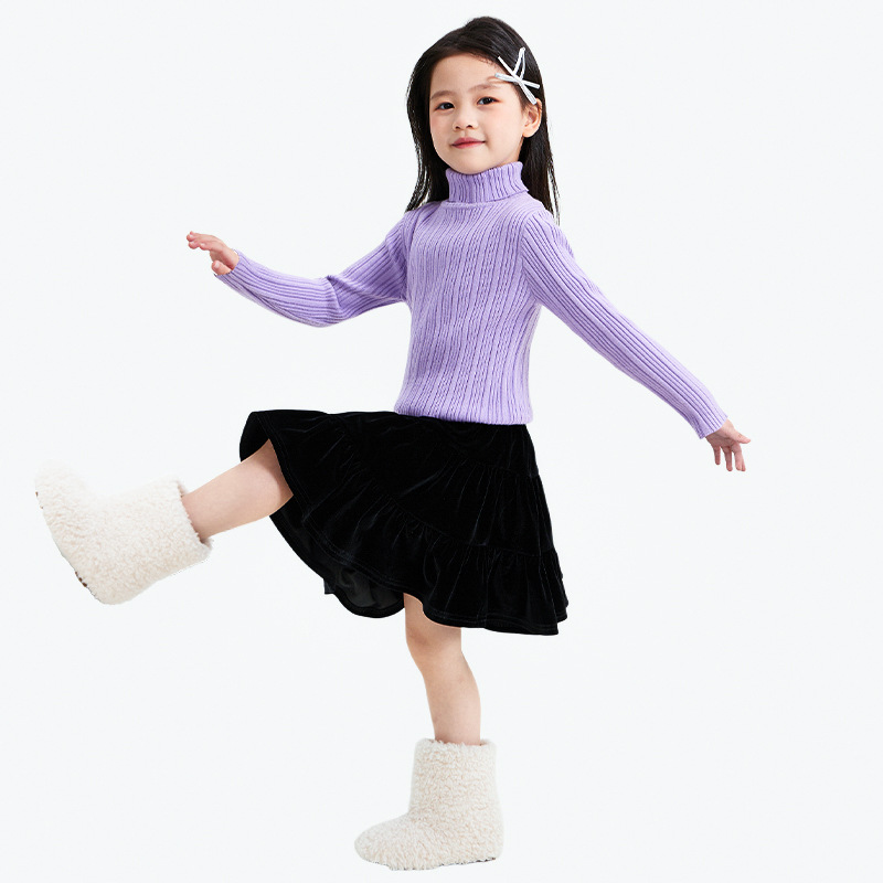 소녀 니트 스웨터 2024 가을과 겨울 새로운 어린이 착용 두꺼운 기본 레이어 셔츠 서양식 탑 어린이 따뜻한 스웨터스토어 가기