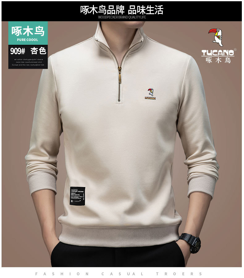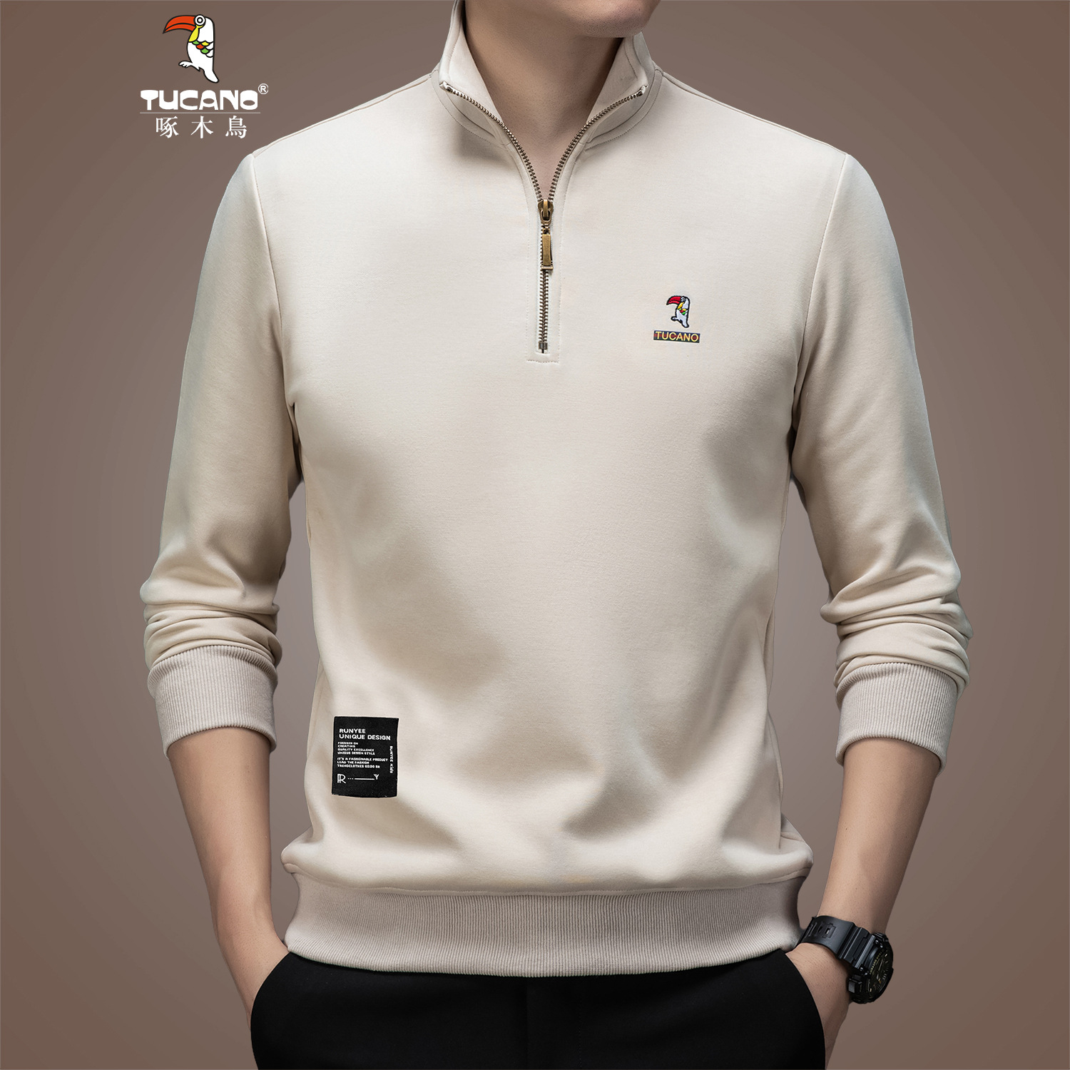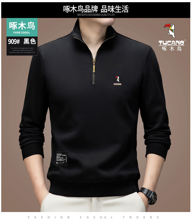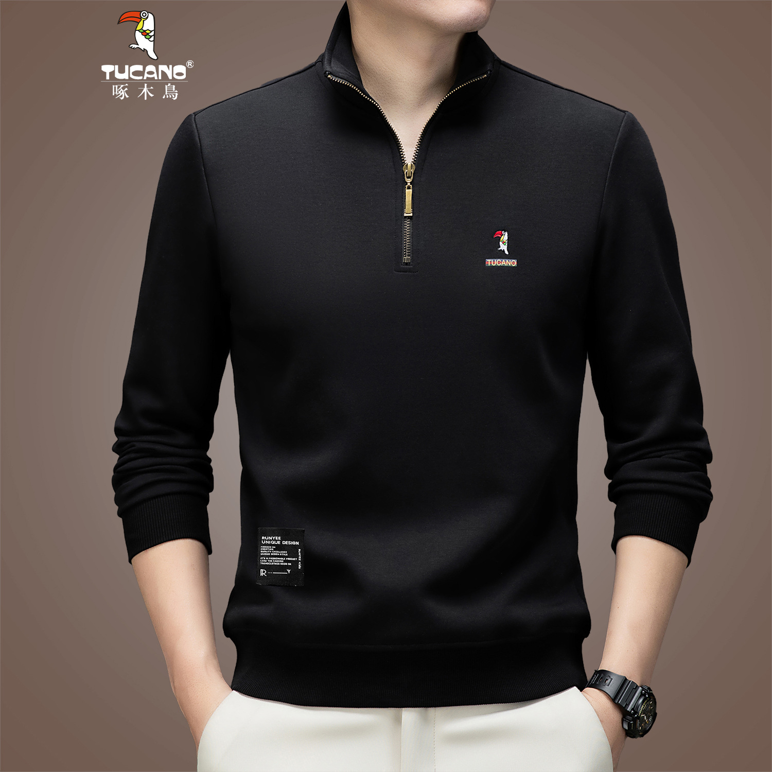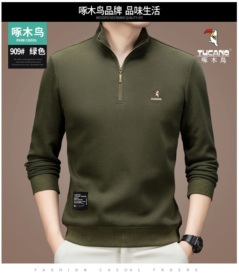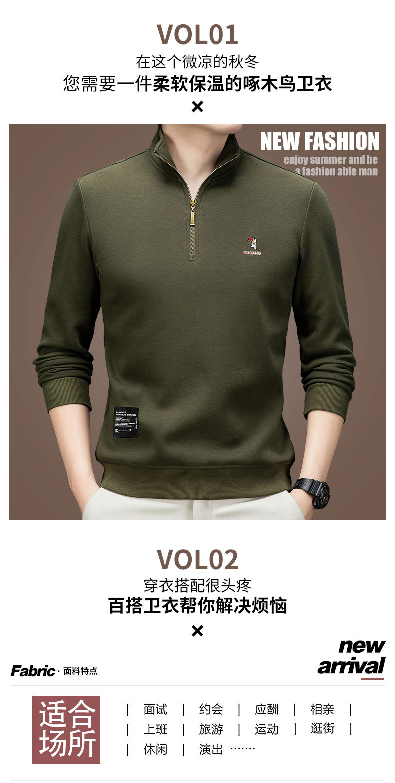 딱따구리 남자 스포츠 땀 유행 2024 긴팔 티셔츠 가을 새 지퍼 세미 하이 칼라 탑 옷
