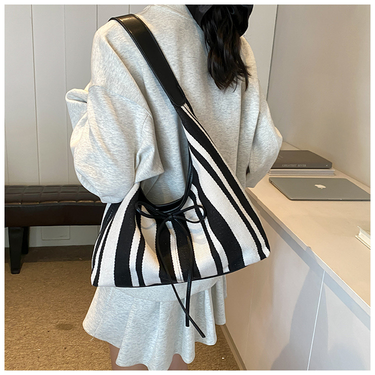 도매 캔버스 가방 여성 가방 2024 새로운 캐주얼 컬러 스트라이프 대용량 어깨 언더암 토트 백 통근자스토어 가기