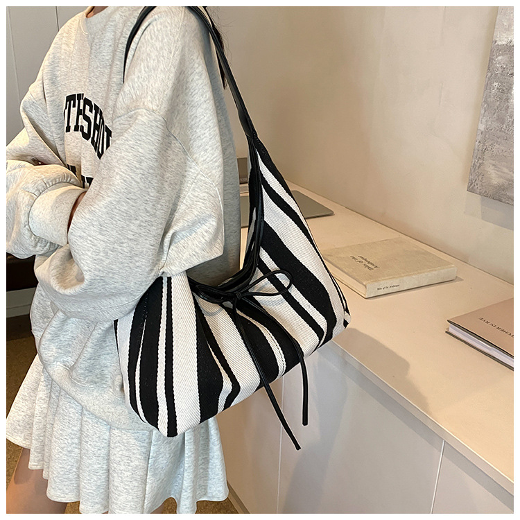 도매 캔버스 가방 여성 가방 2024 새로운 캐주얼 컬러 스트라이프 대용량 어깨 언더암 토트 백 통근자