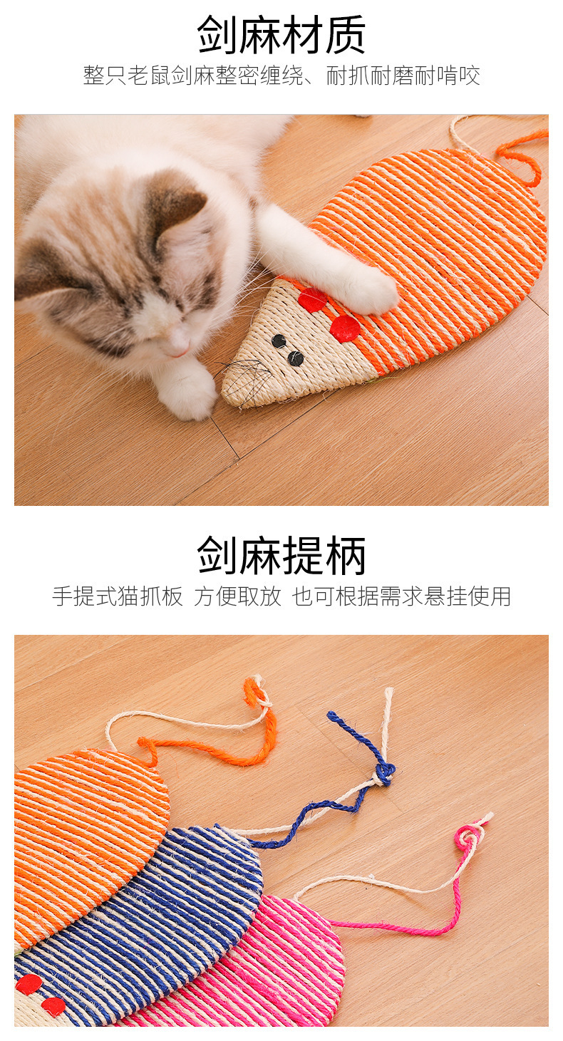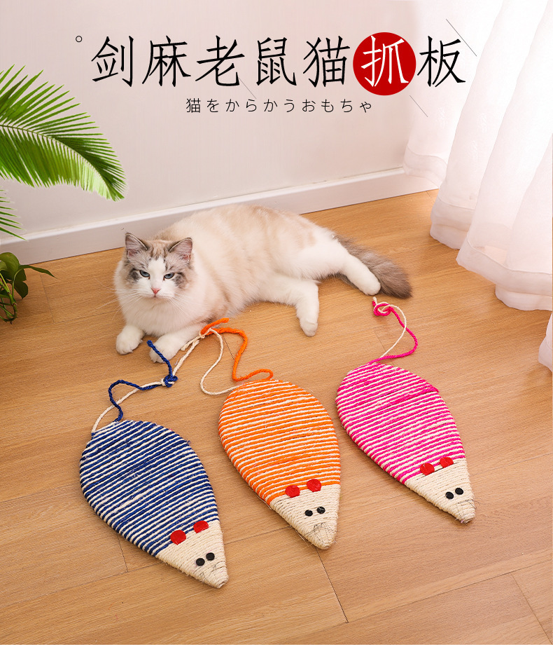 공장 재고 도매 마우스 모양의 사이 살 고양이 스크래치 보드 35cm 애완 동물 내마모성 고양이 발톱 연삭 장난감 대화 형 유물스토어 가기