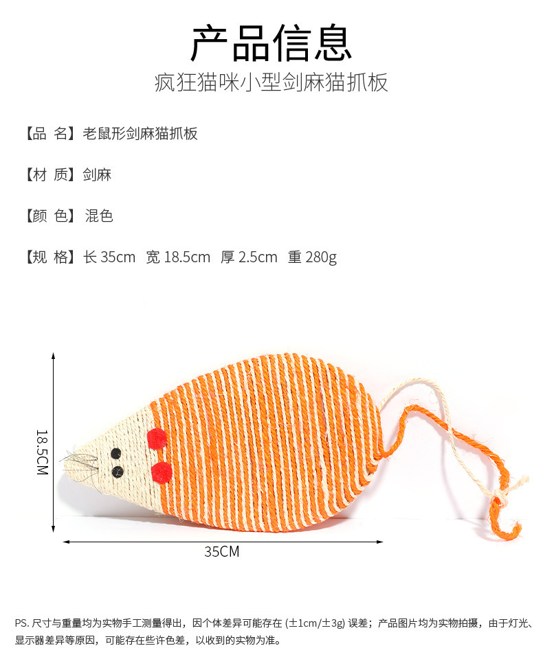 공장 재고 도매 마우스 모양의 사이 살 고양이 스크래치 보드 35cm 애완 동물 내마모성 고양이 발톱 연삭 장난감 대화 형 유물
