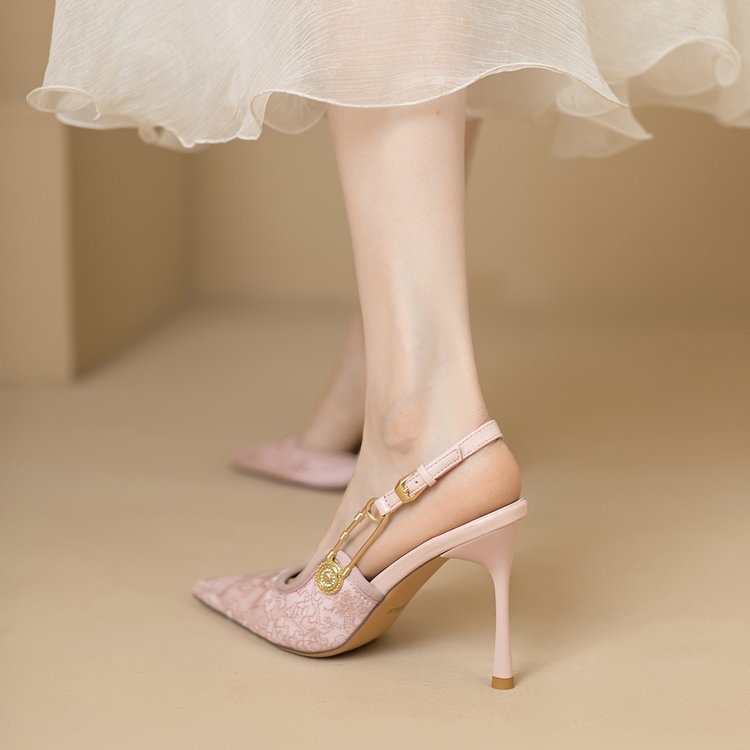 섹시한 속편 스틸레토 힐 샌들 여성용 2024 년 여름 새로운 숙녀 우아한 할로우 하이힐 연회 메리 제인 신발
