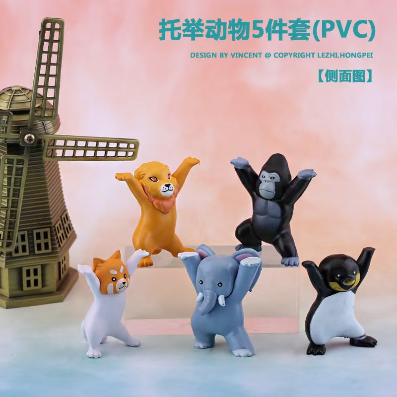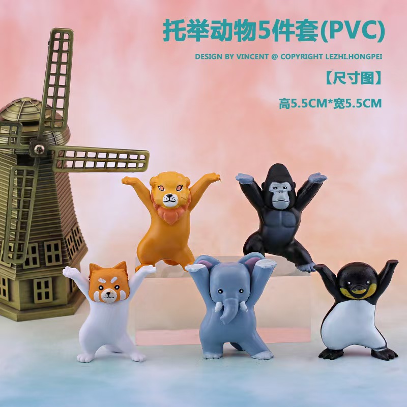 국경 5 만화 동물 휴대용 코끼리, 오랑우탄, 사자, 펭귄 주변 애니메이션 인형 장식품