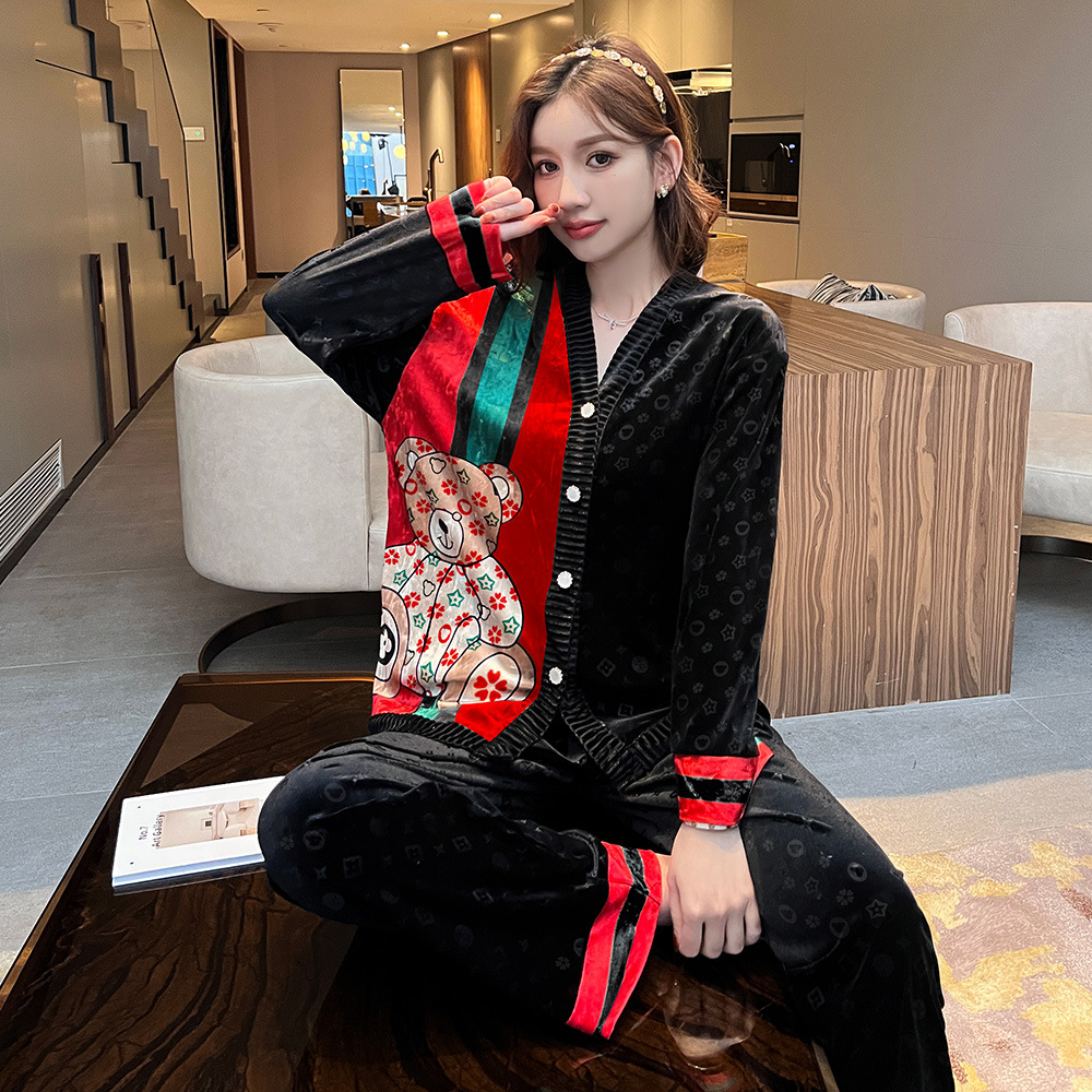 가격 제어 떨림 99 가을과 겨울 골드 벨벳 파자마 여성 긴팔 골드 다이아몬드 벨벳 달콤한 얇은 벨벳 홈 의류 세트 다이아몬드 벨벳