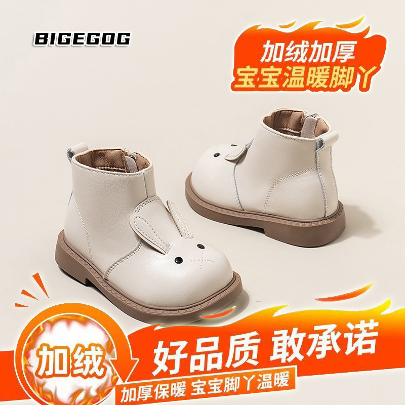 여자 아기 하이 탑 토끼 가죽 부츠 2024 가을 및 겨울 새 소녀 마틴 부츠 어린이 싱글 부츠 기모 코튼 부츠 올매치스토어 가기