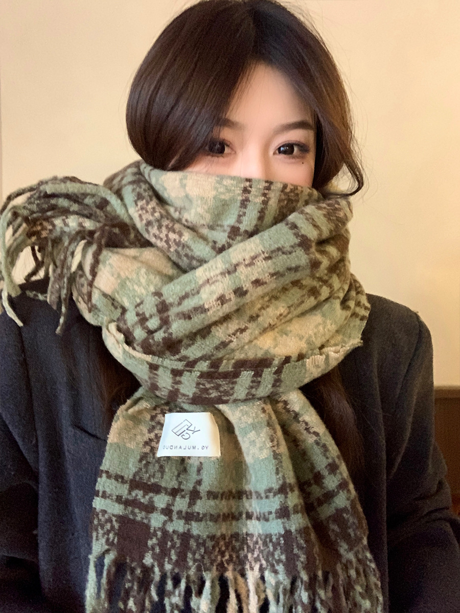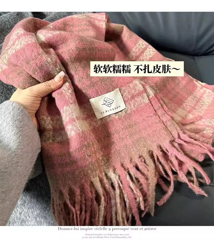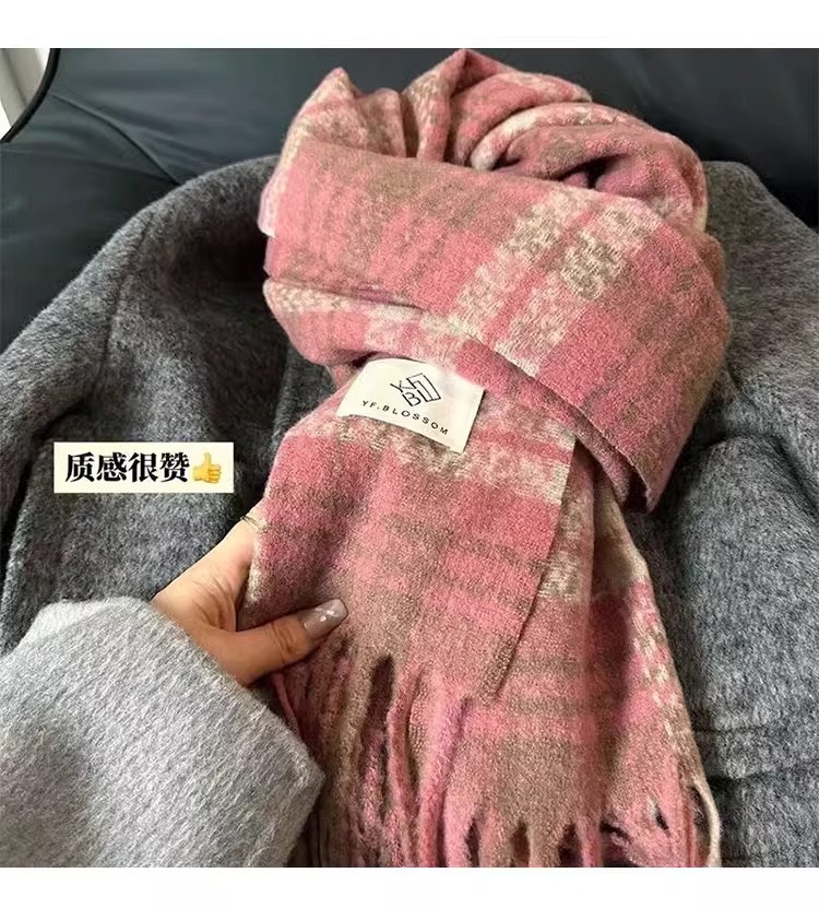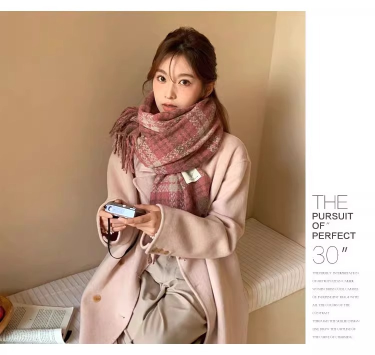 가을 겨울 인기 드라이 로즈 핑크 체크 무늬 스카프 여성용 한국어 버전 다용도 두꺼운 긴 학생 분위기 스카프스토어 가기
