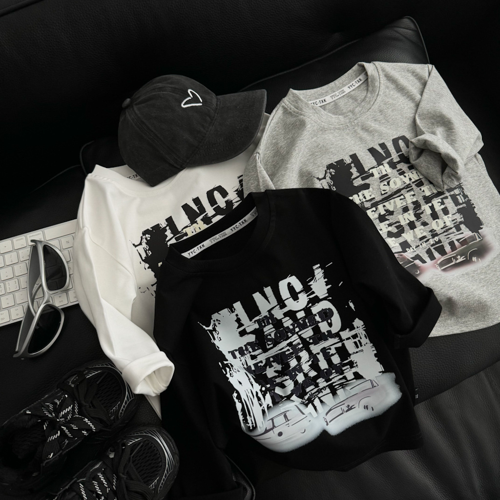 가을 2024 새로운 어린이 편지 인쇄 느슨한 티셔츠 소년 소녀를위한 한국 느슨한 긴 소매 티셔츠 코튼 쿨 탑스토어 가기
