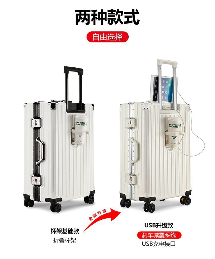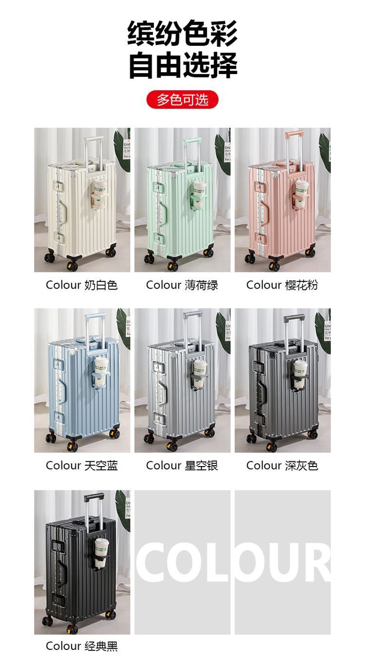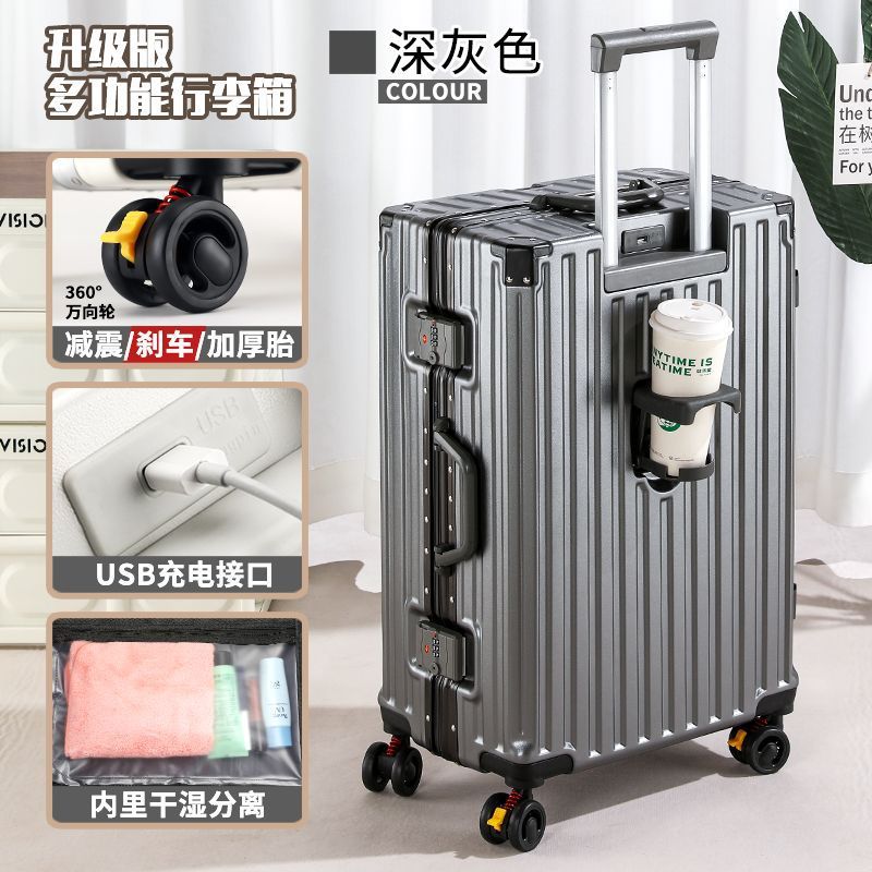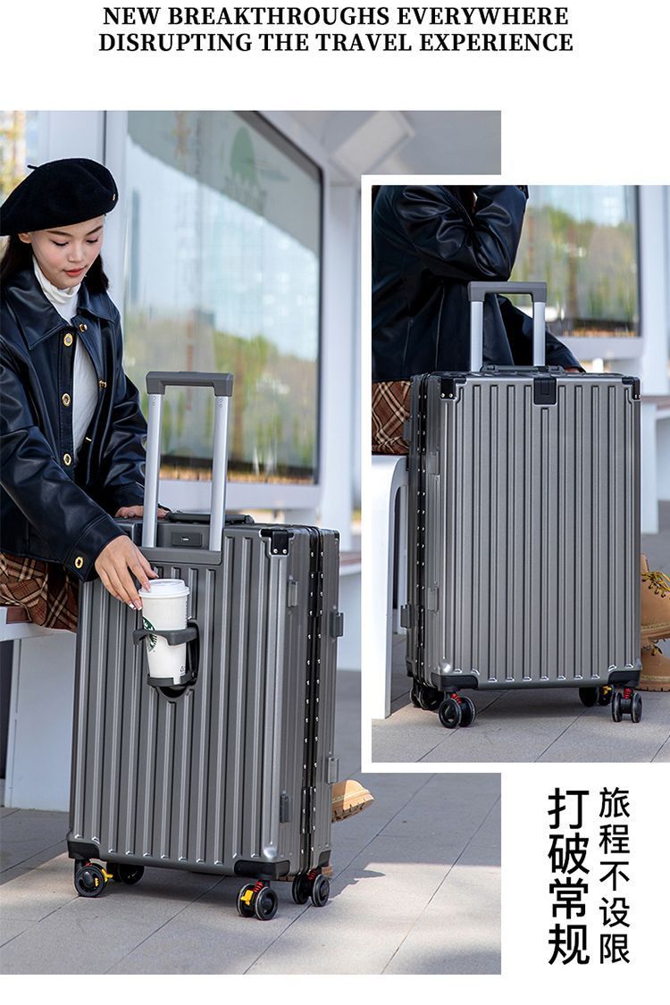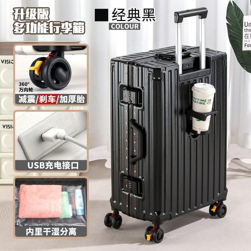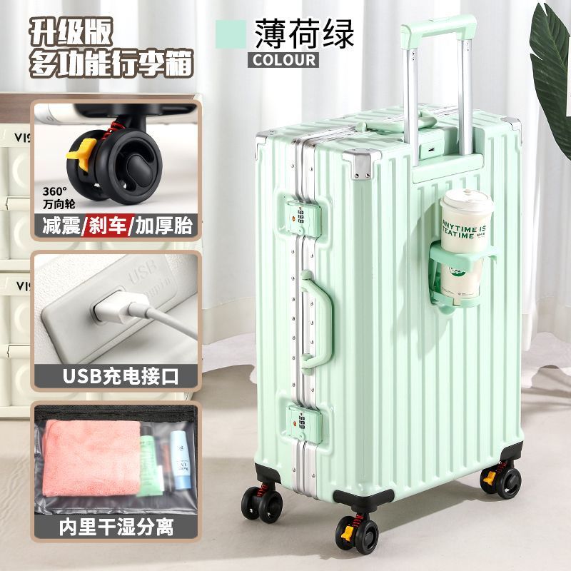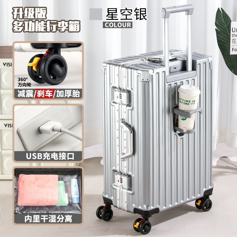 수하물 케이스 다기능 알루미늄 프레임 트롤리 케이스 새로운 여행 가방 학생 대용량 브레이크 휠 내구성 암호 상자