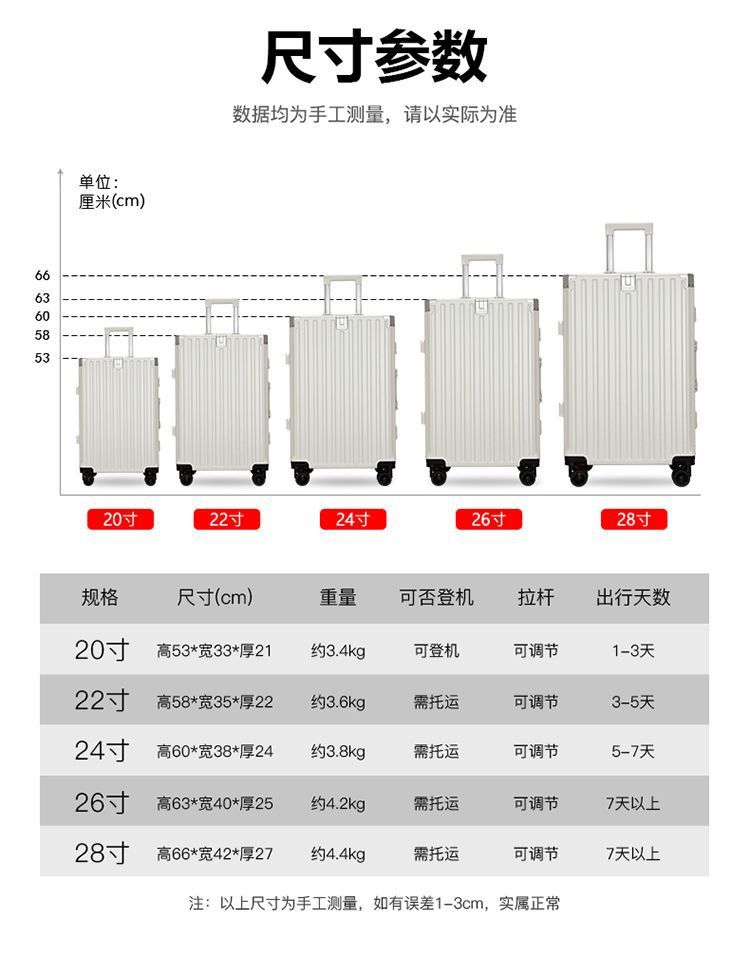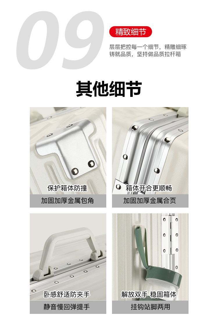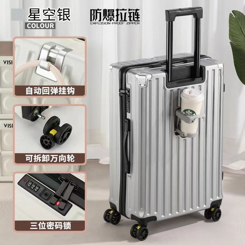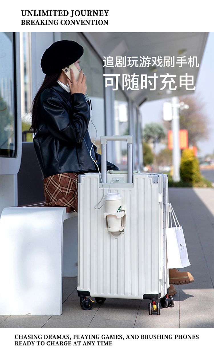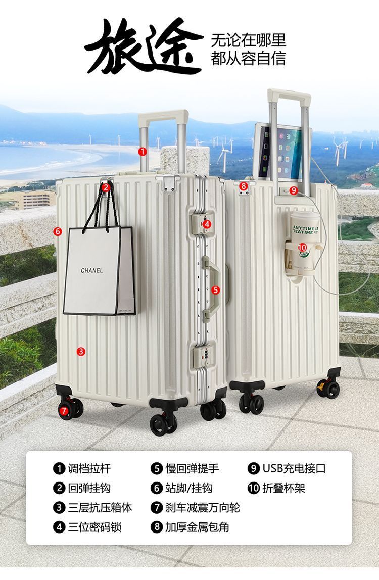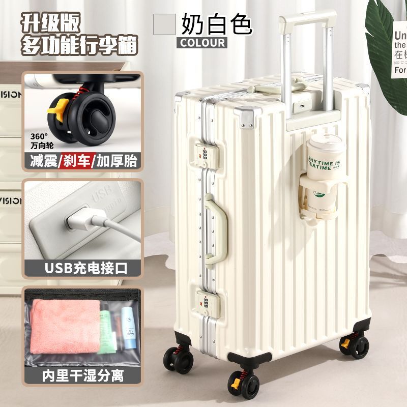 수하물 케이스 다기능 알루미늄 프레임 트롤리 케이스 새로운 여행 가방 학생 대용량 브레이크 휠 내구성 암호 상자