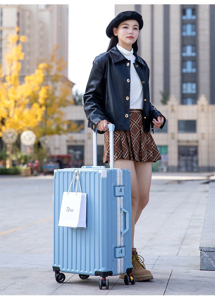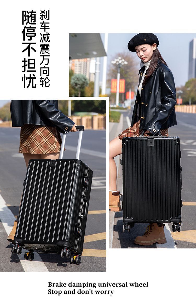 수하물 케이스 다기능 알루미늄 프레임 트롤리 케이스 새로운 여행 가방 학생 대용량 브레이크 휠 내구성 암호 상자스토어 가기