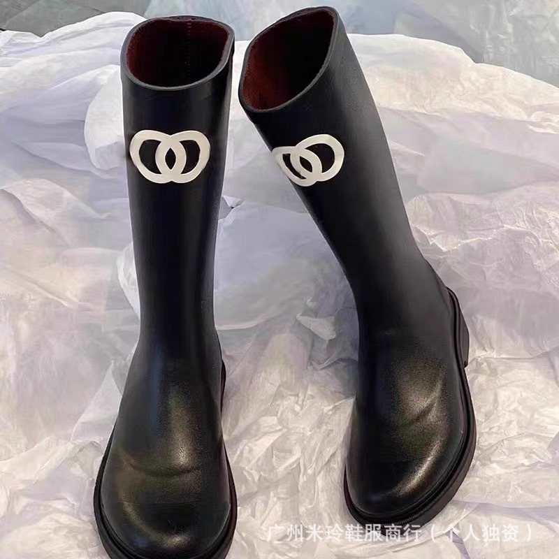 버건디 패션 작은 향기로운 바람 비 부츠 여성 외부 버킷 부츠 중간 검은 미끄럼 방지 기사 부츠 올 매치하지만 무릎