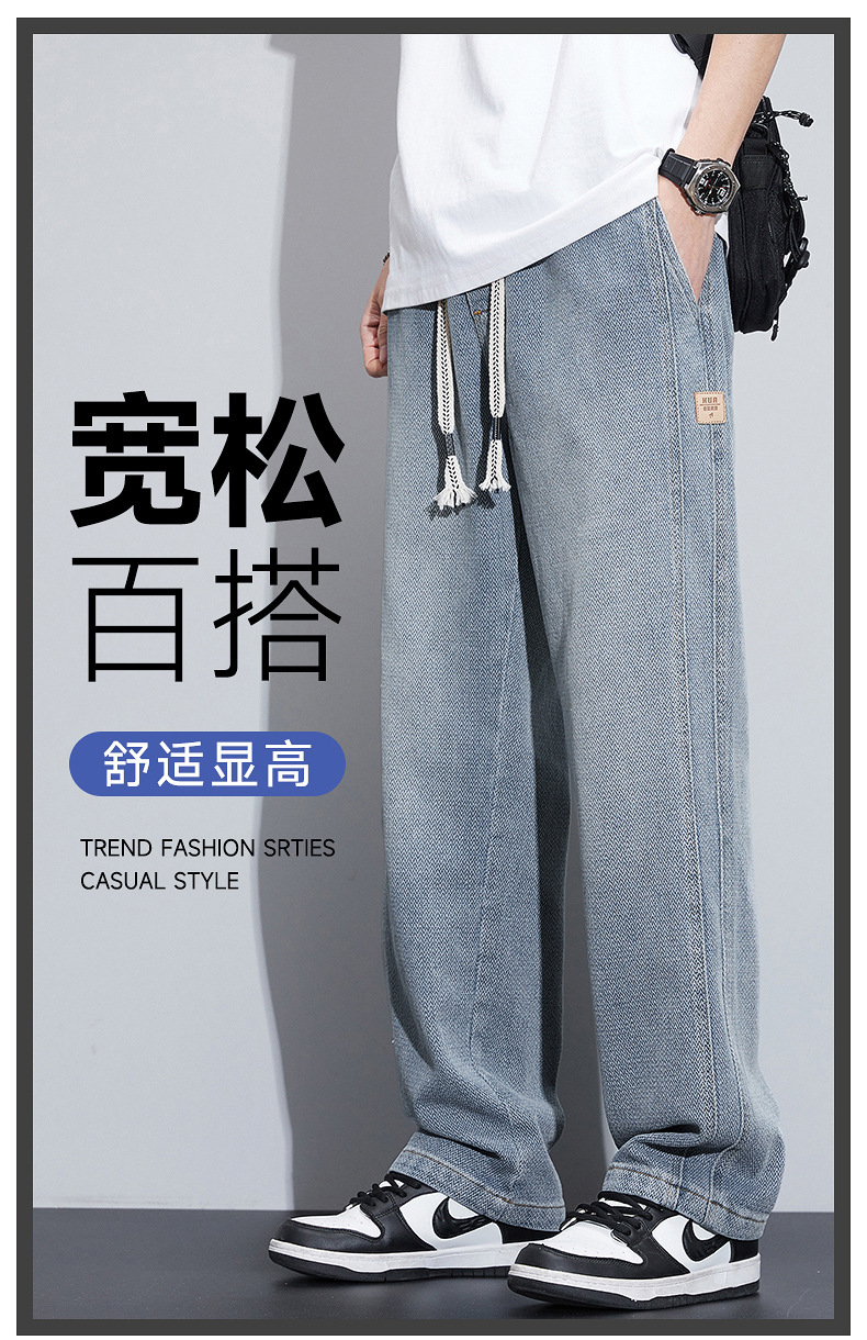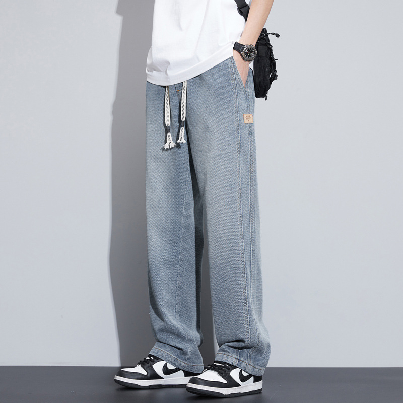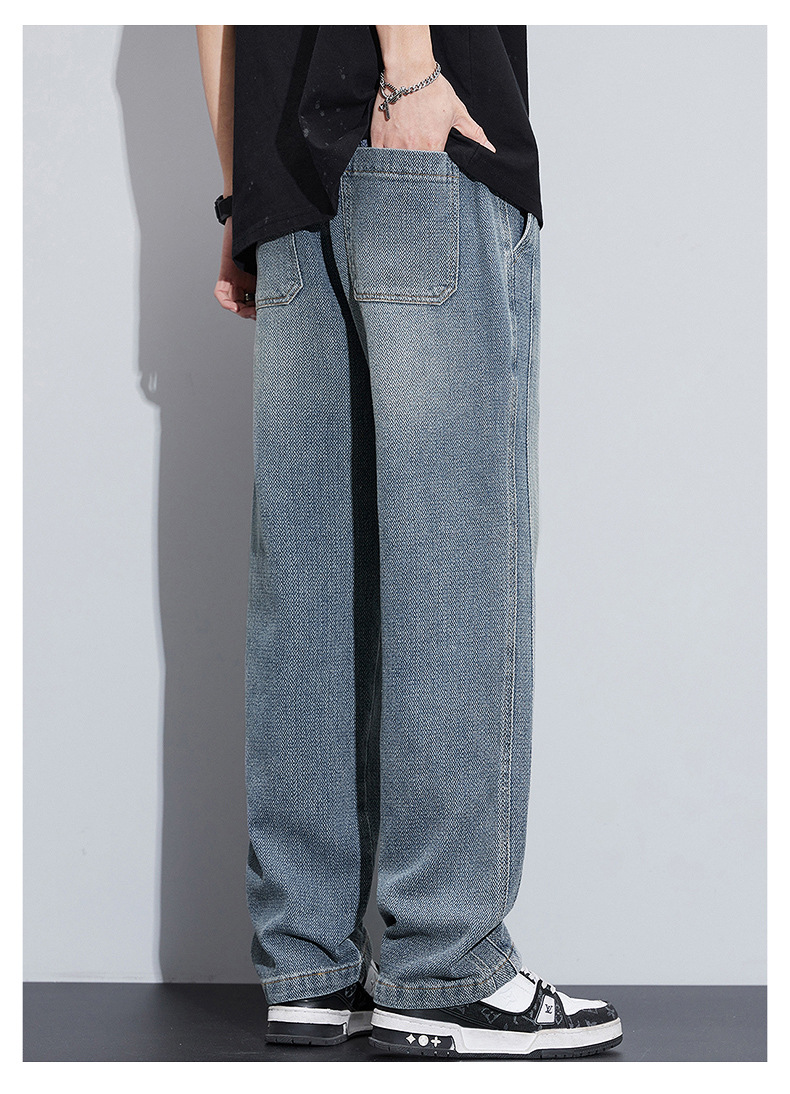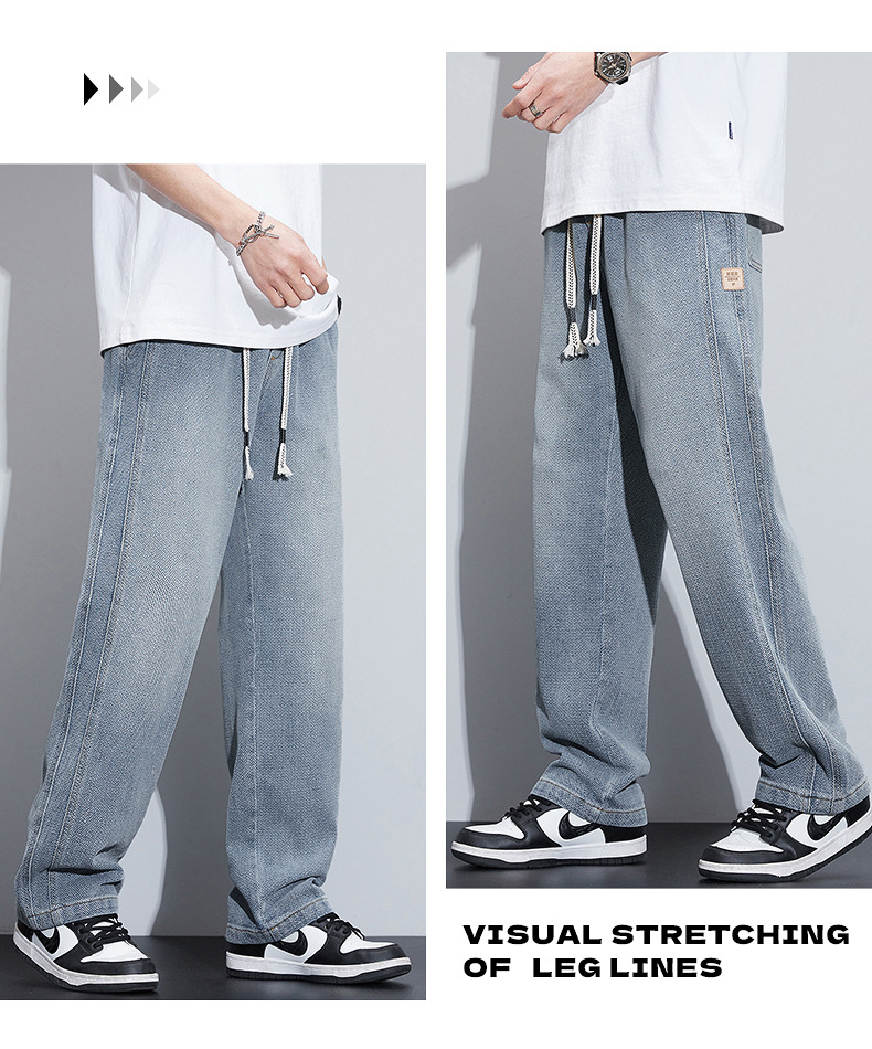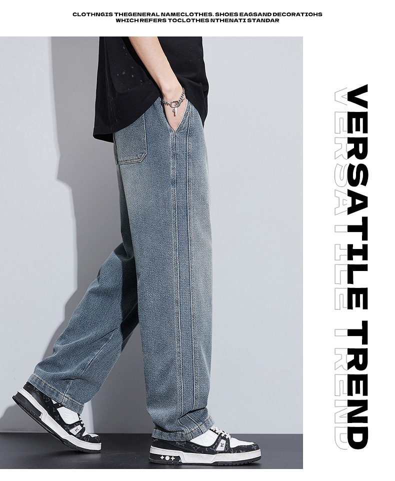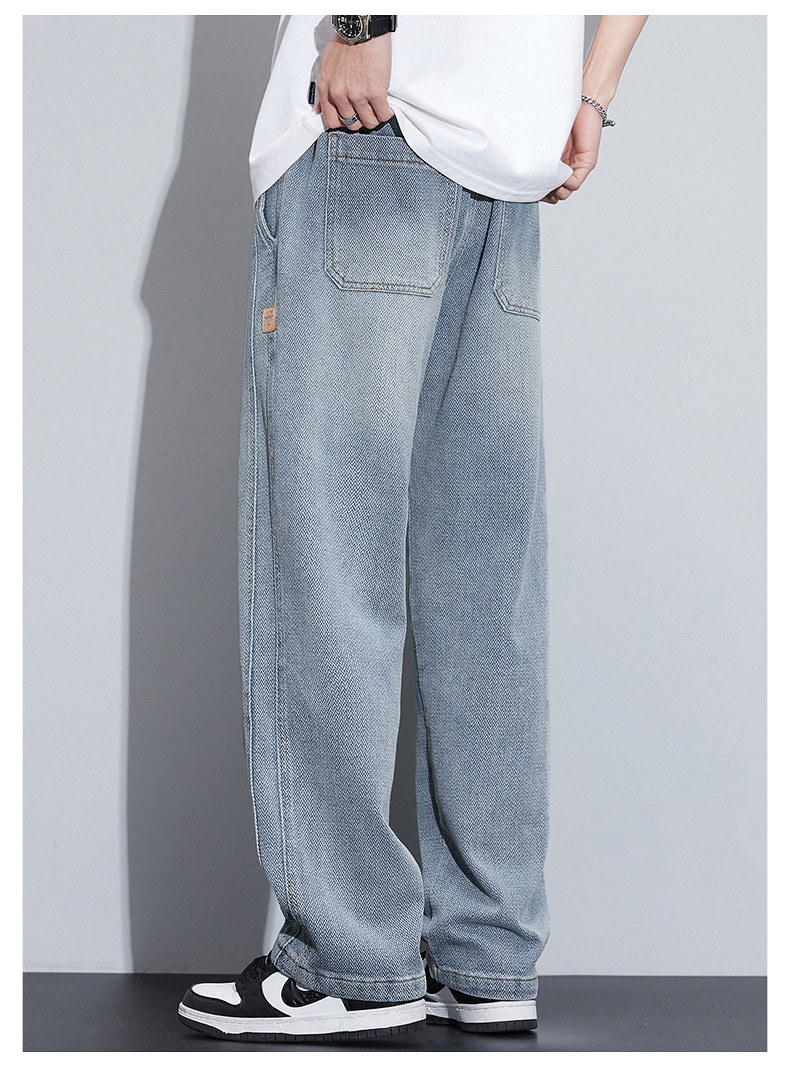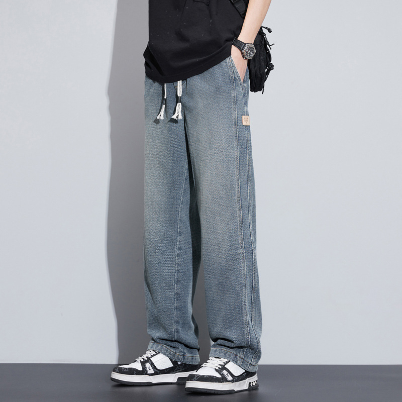 패션 브랜드 스타 패턴 데님 넓은 다리 바지 남자 봄 2025 새로운 미국 스타일 봄과 가을 캐주얼 느슨한 스트레이트 바지스토어 가기