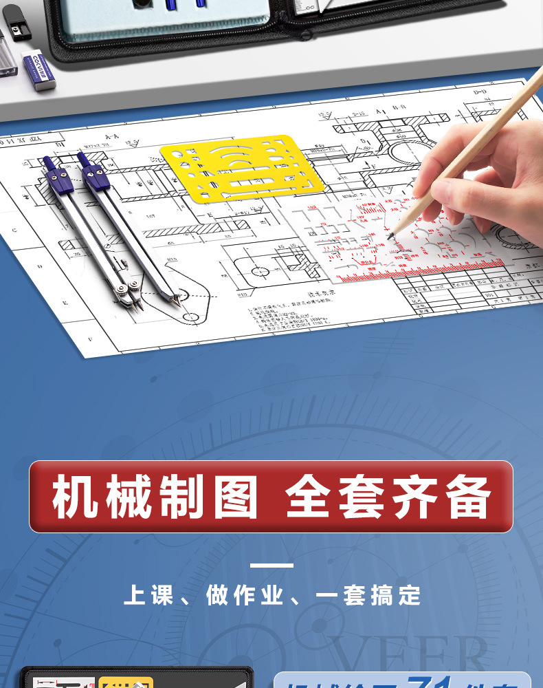엔지니어링 기계 드로잉 드로잉 도구 세트 토목 공학을 구축하는 전문 드로잉 엔지니어링 대학생 나침반스토어 가기