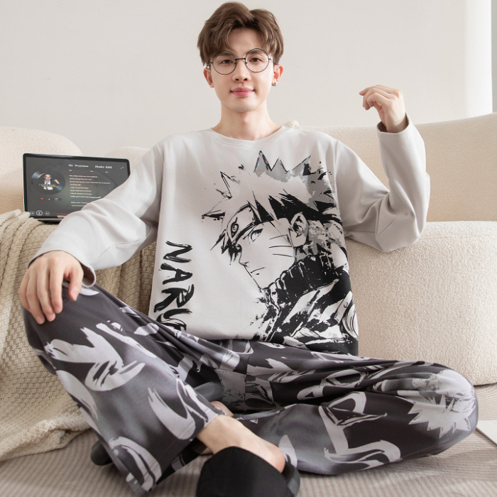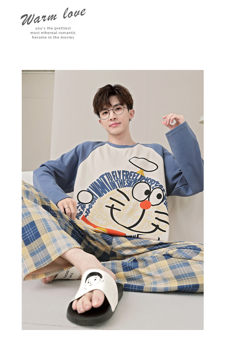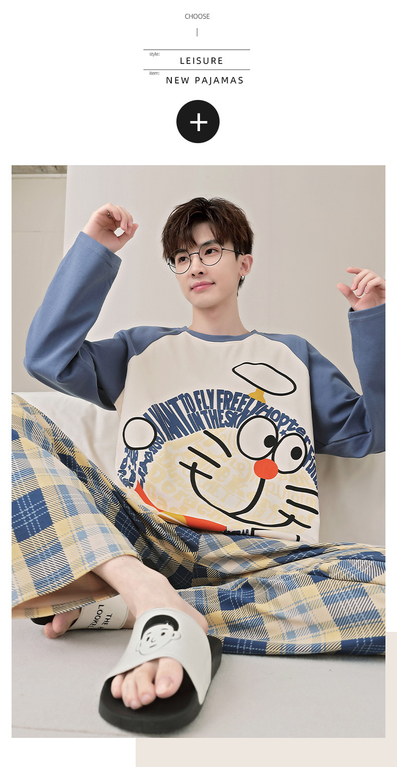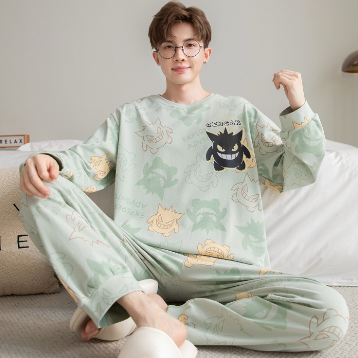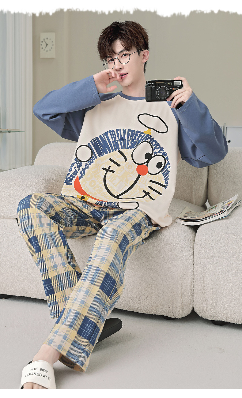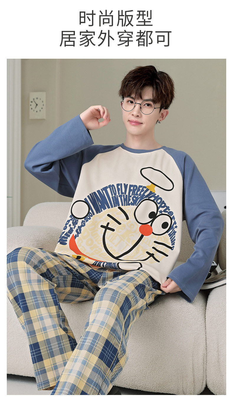 면 잠옷 남자의 봄과 가을 풀오버 긴 소매 바지 만화 플러스 사이즈 십대 200kg 외부 가정 옷 세트스토어 가기