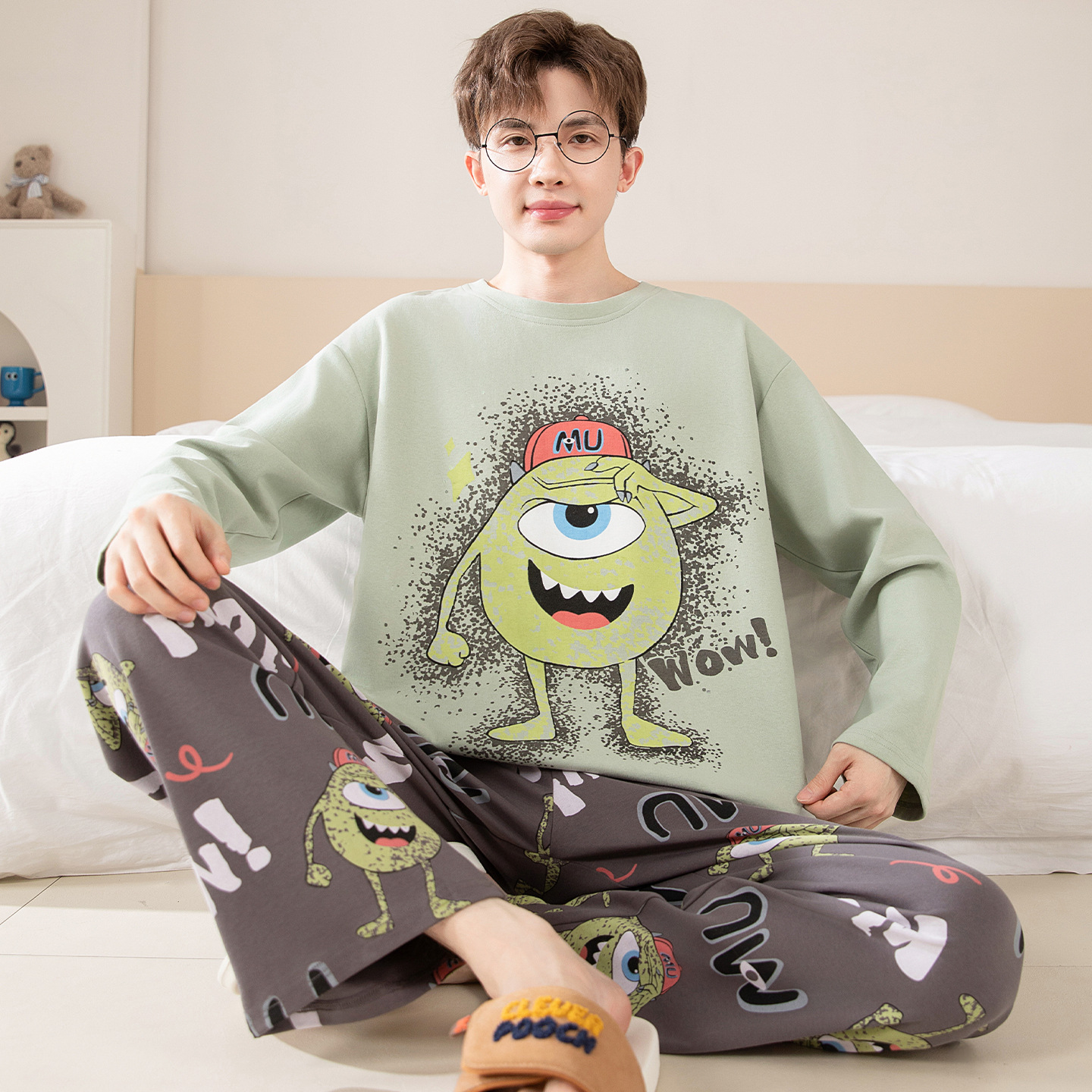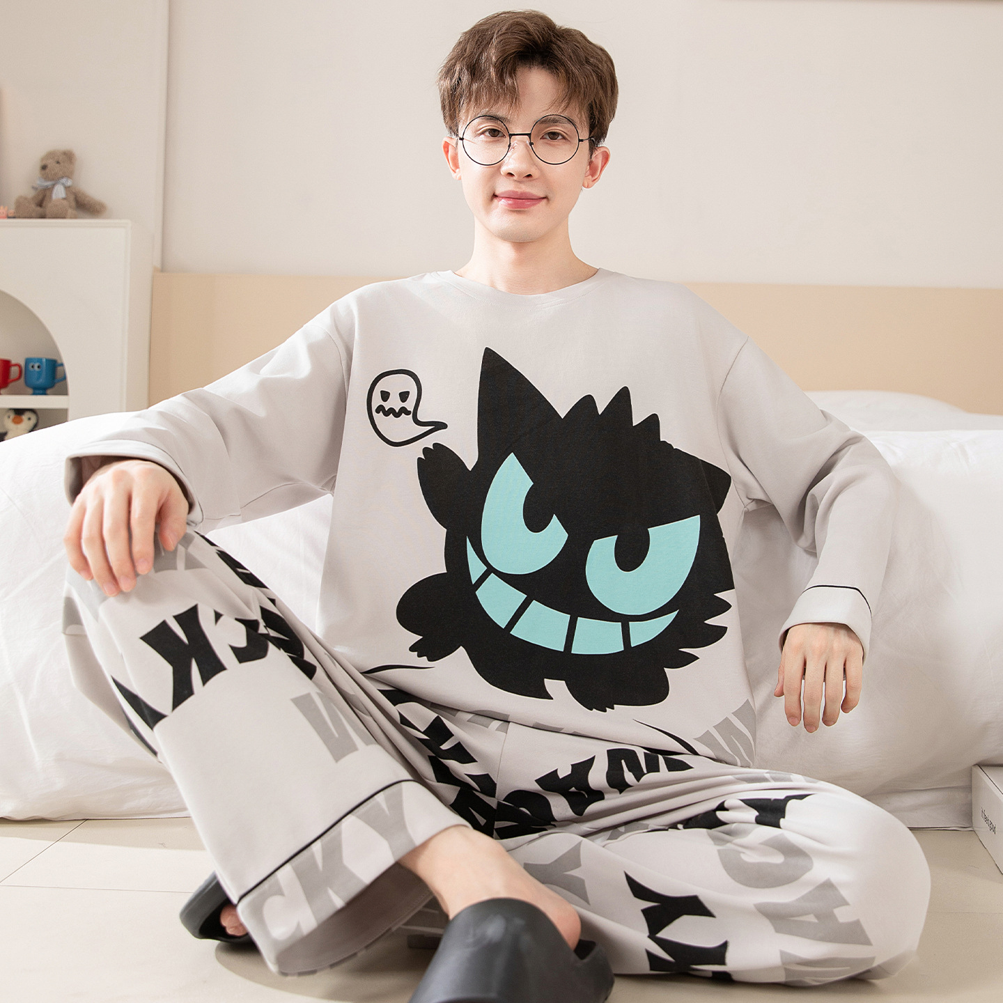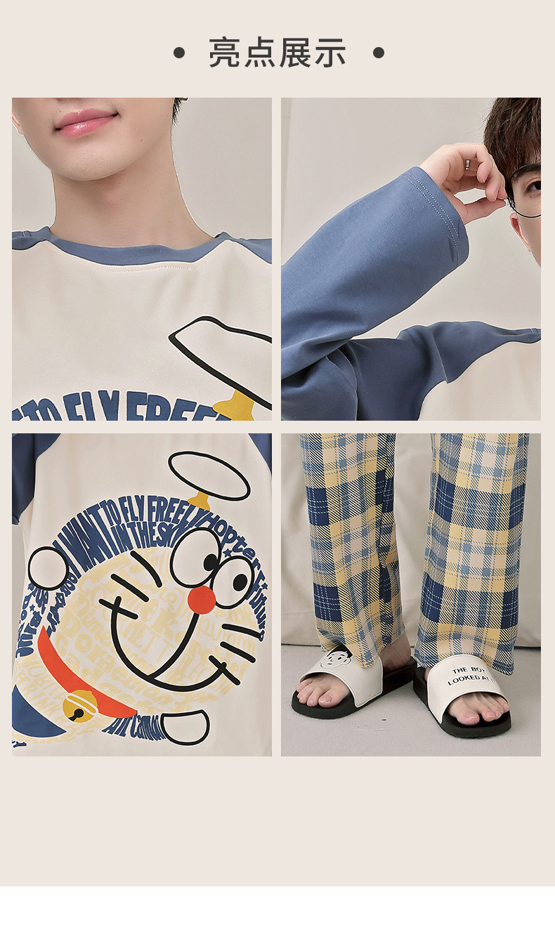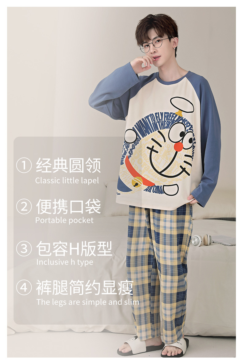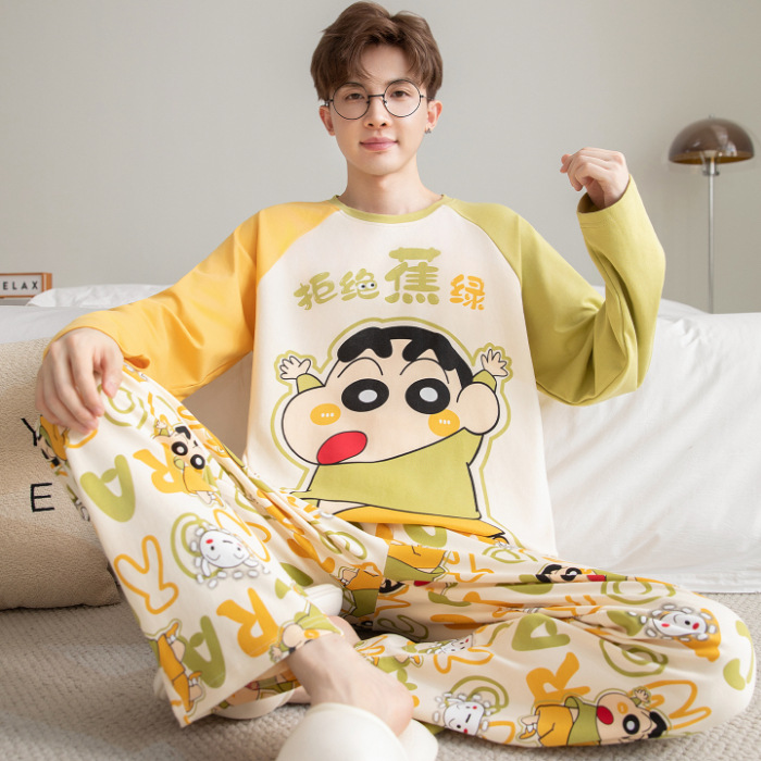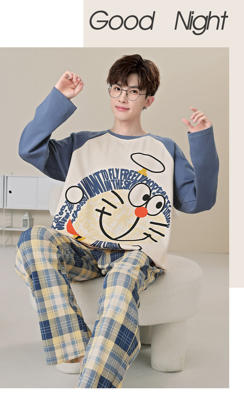 면 잠옷 남자의 봄과 가을 풀오버 긴 소매 바지 만화 플러스 사이즈 십대 200kg 외부 가정 옷 세트스토어 가기