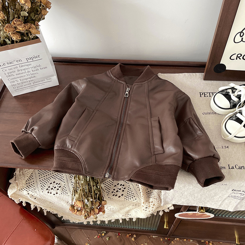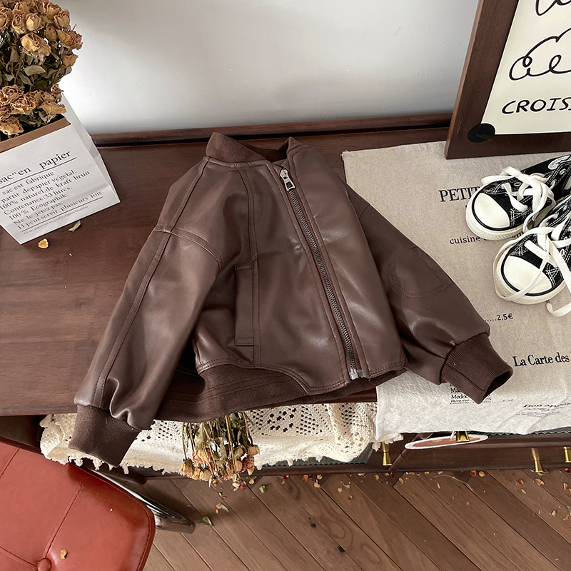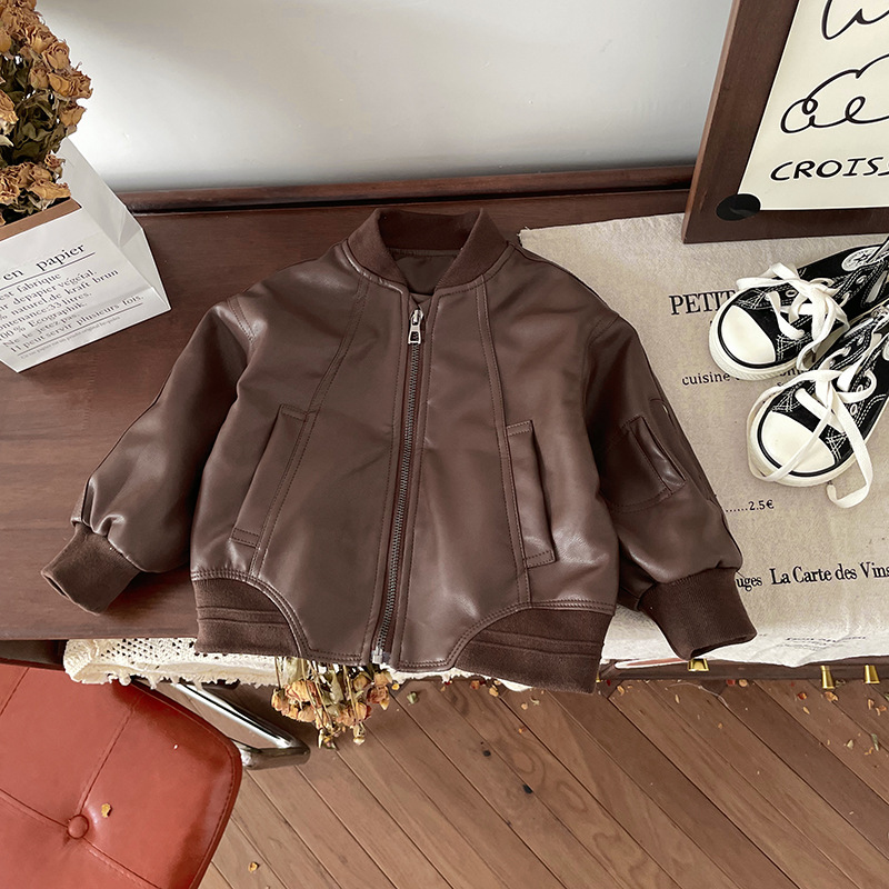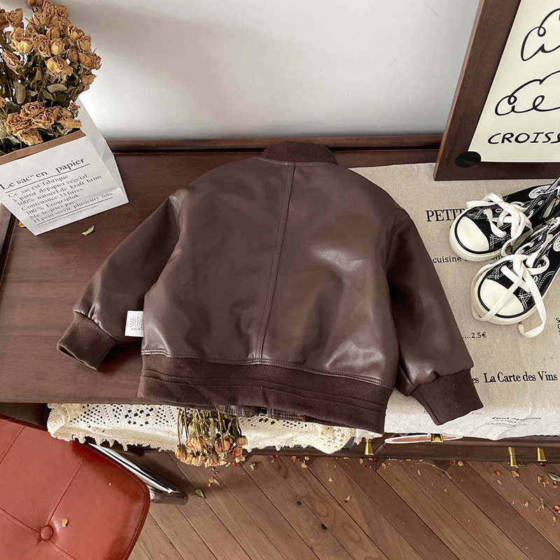 [재고] QW248285 어린이 코트 2024 가을과 겨울 새 한국 소년 야구 칼라 따뜻한 가죽